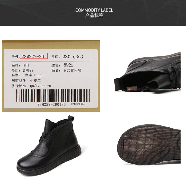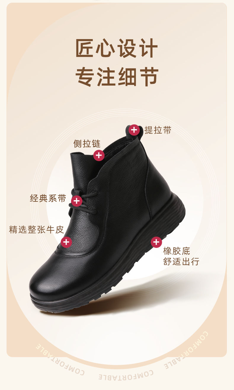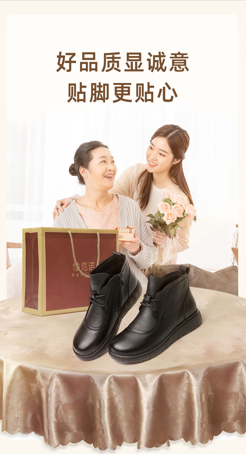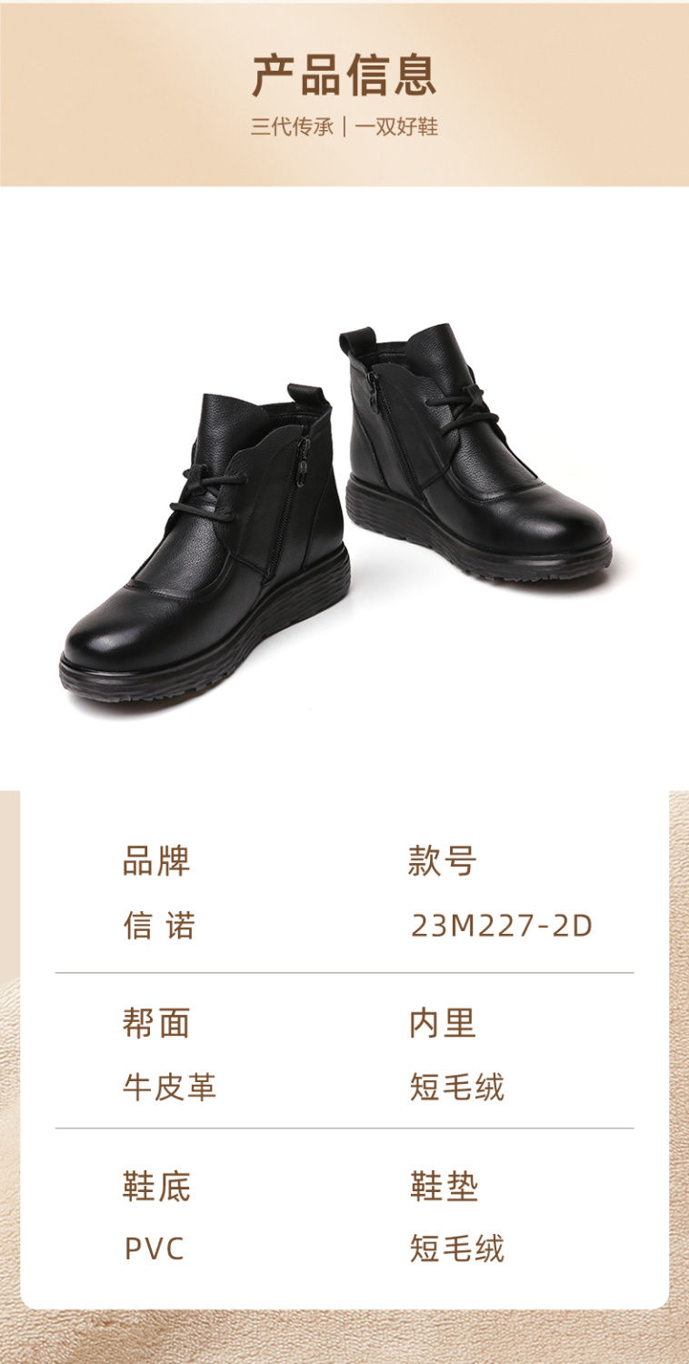 信诺真皮妈妈棉鞋女2023新款秋冬季加绒保暖棉靴中老年老人奶奶鞋23M227-2D