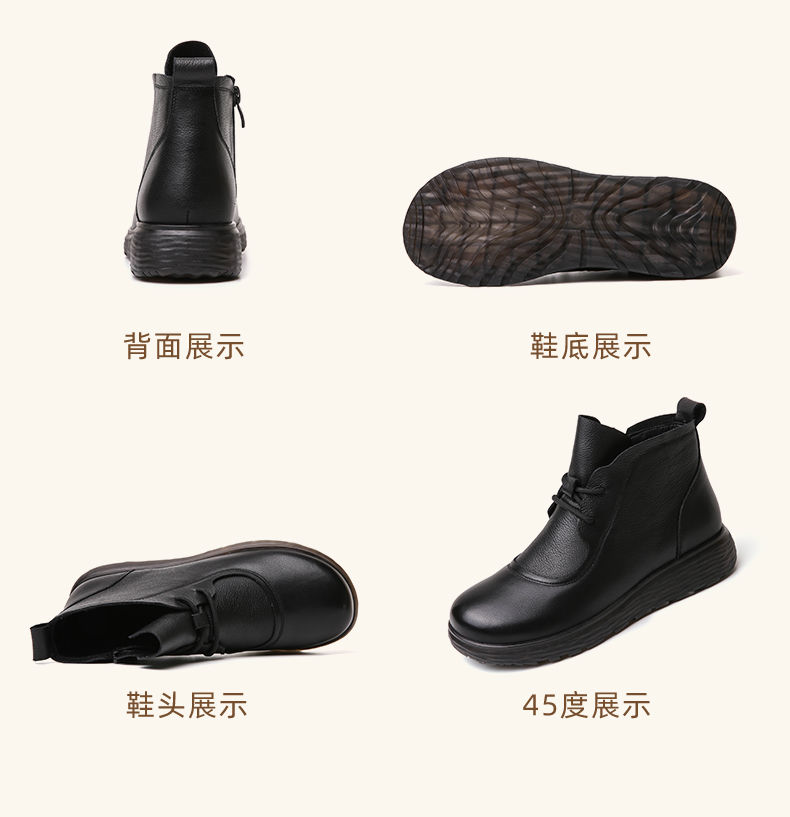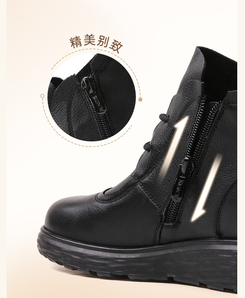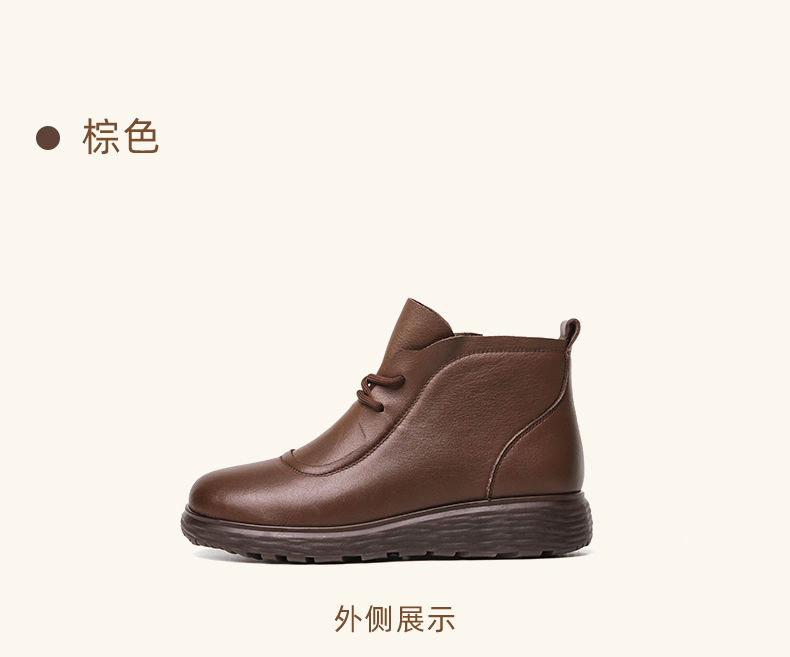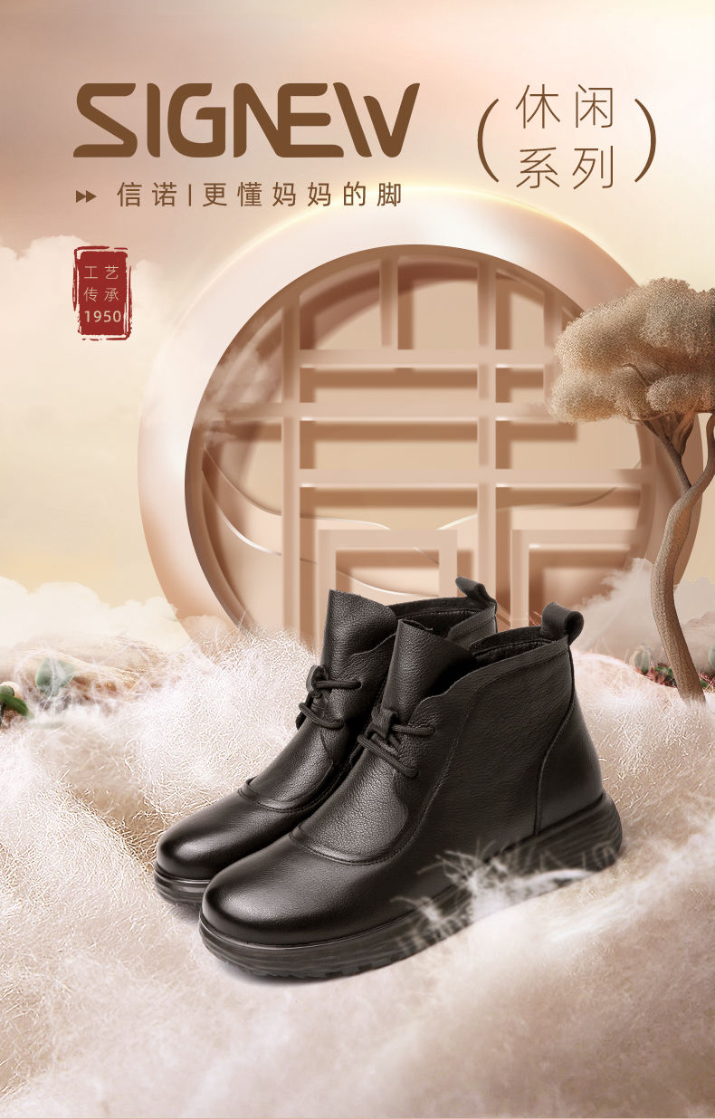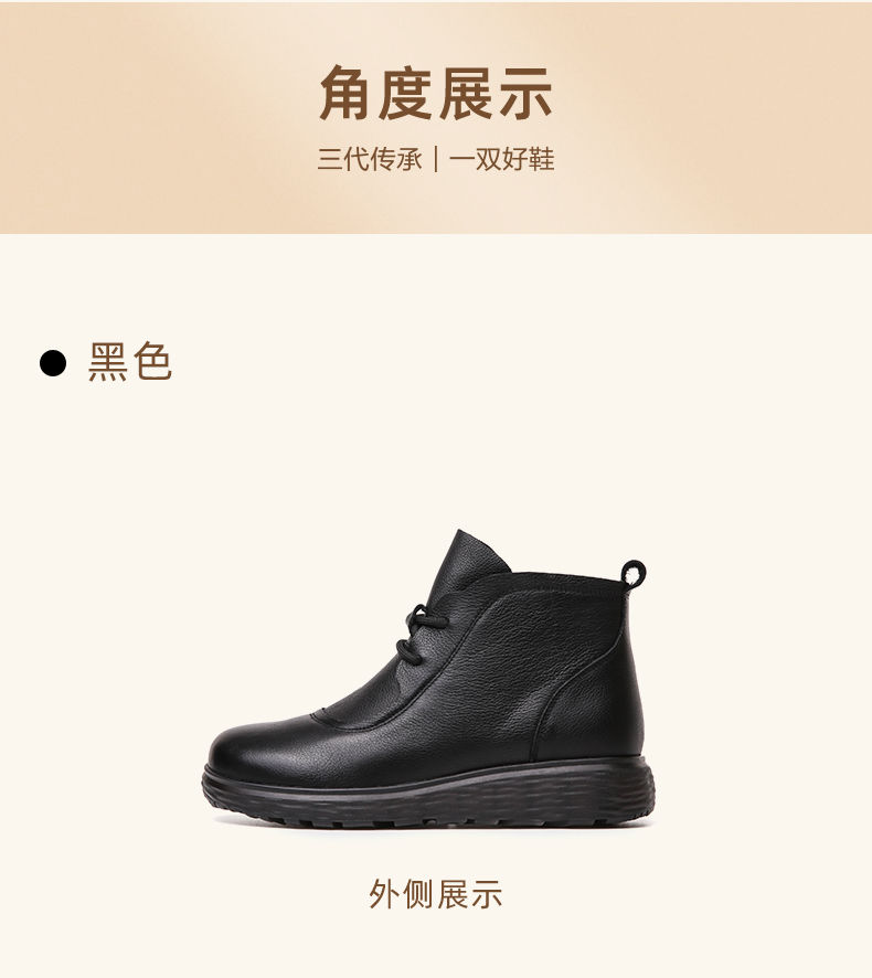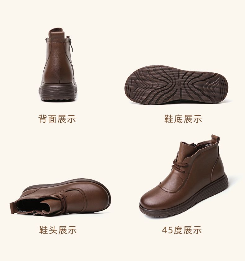 信诺真皮妈妈棉鞋女2023新款秋冬季加绒保暖棉靴中老年老人奶奶鞋23M227-2D