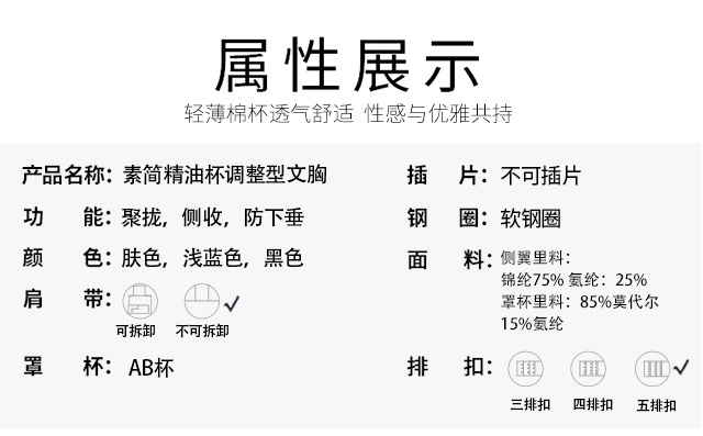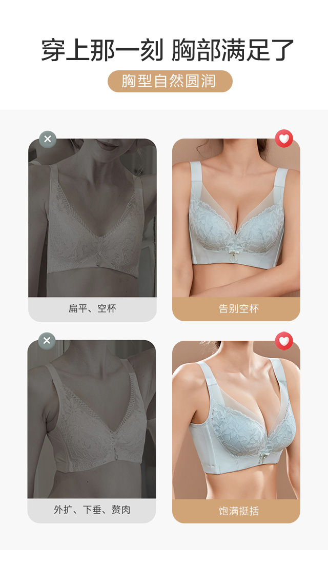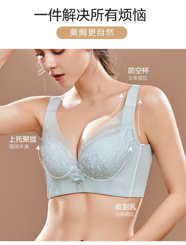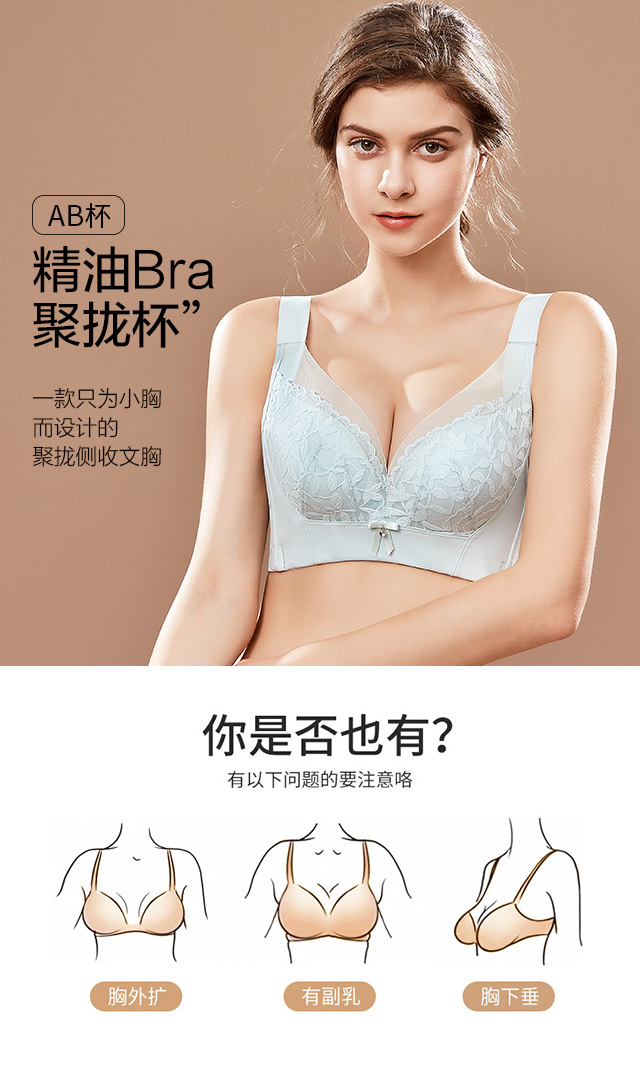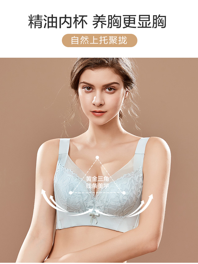 丰胸聚拢侧收副乳软钢圈文胸,素简精油杯调整型文胸