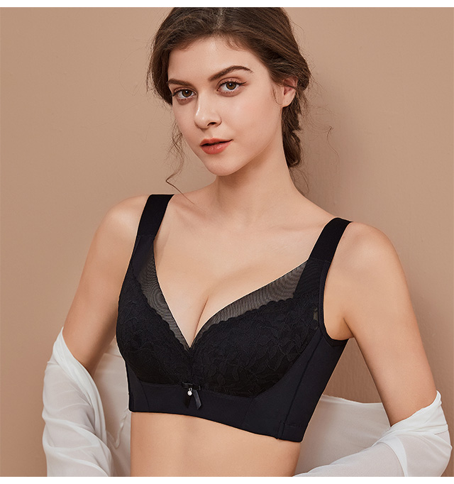 大胸显小全罩杯调整型文胸收副乳,防下垂胸罩。淡雅睫毛无钢圈文胸