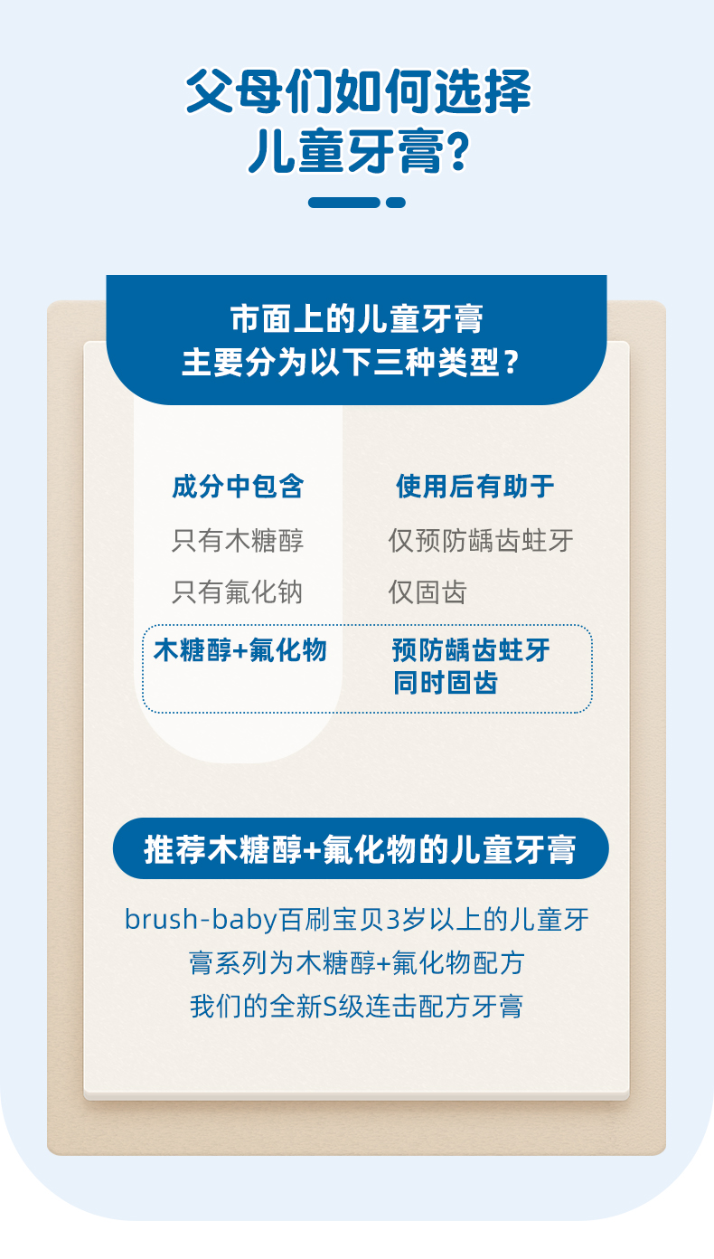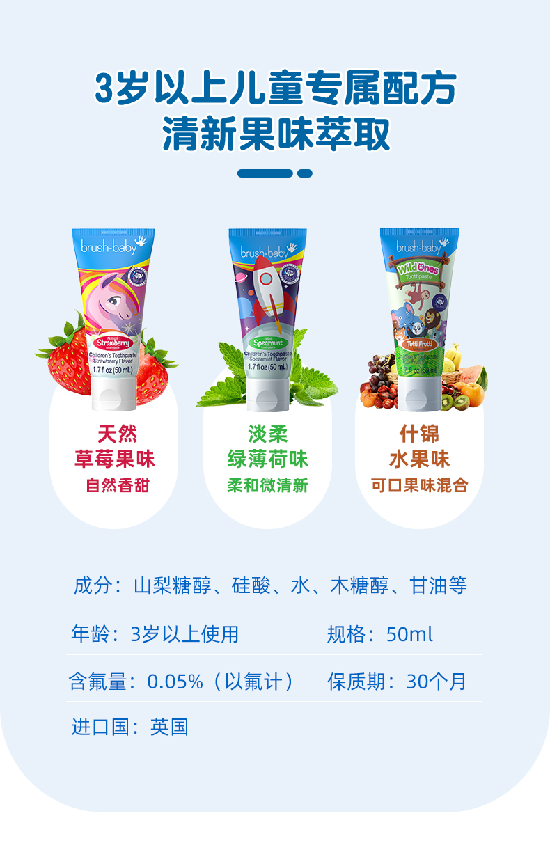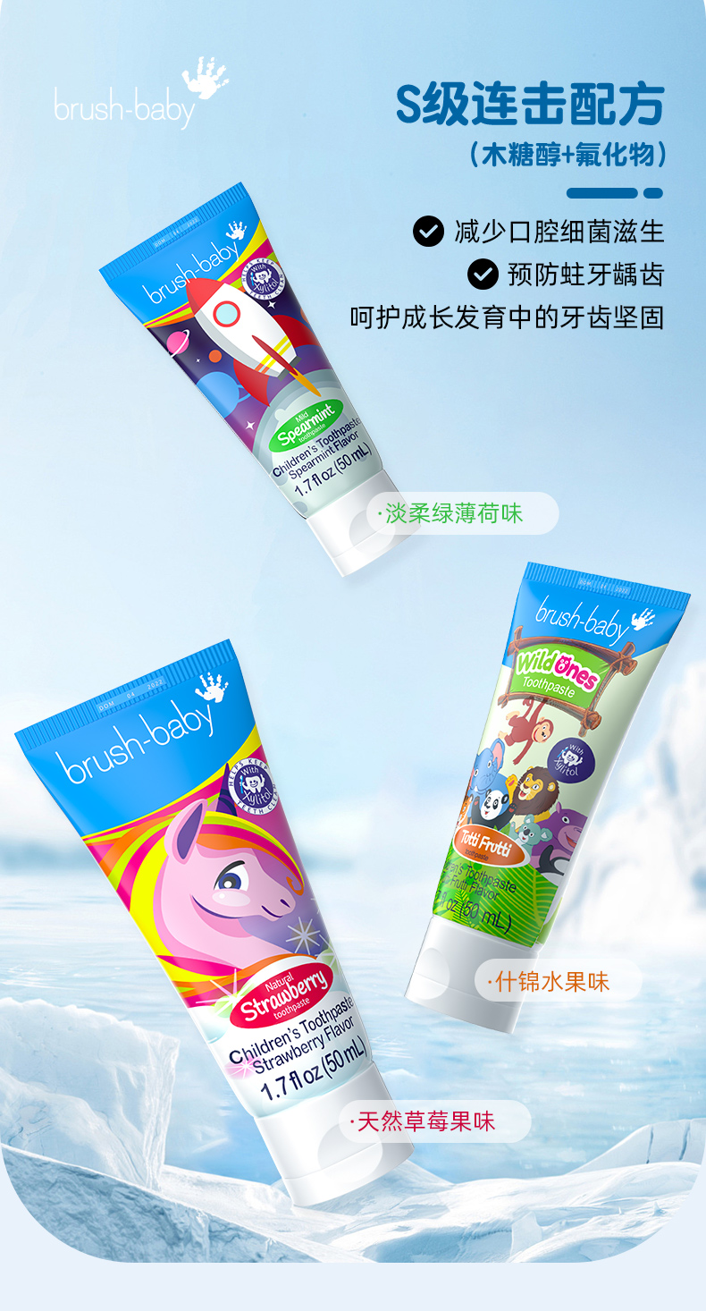 brush-baby百刷宝贝宝宝儿童牙膏3-6岁3岁以上幼儿含氟低氟防蛀牙