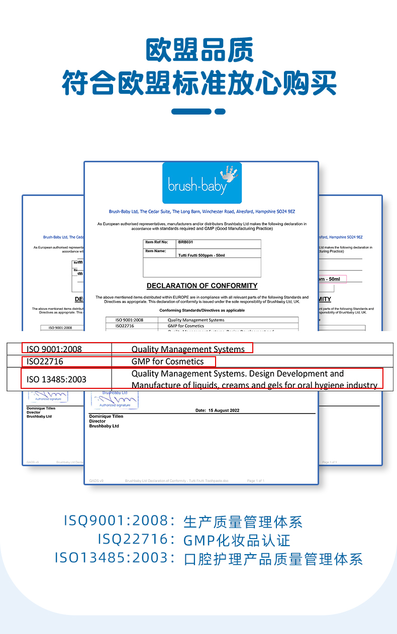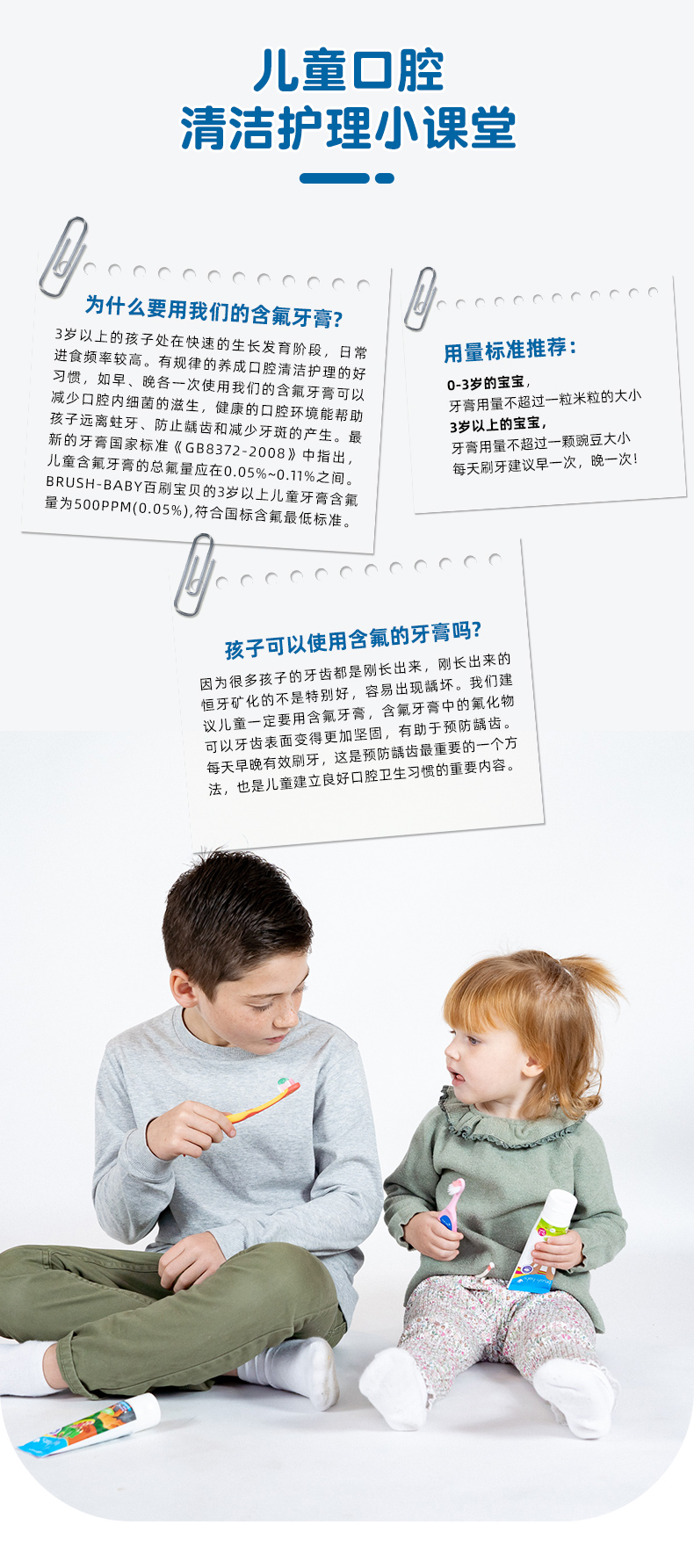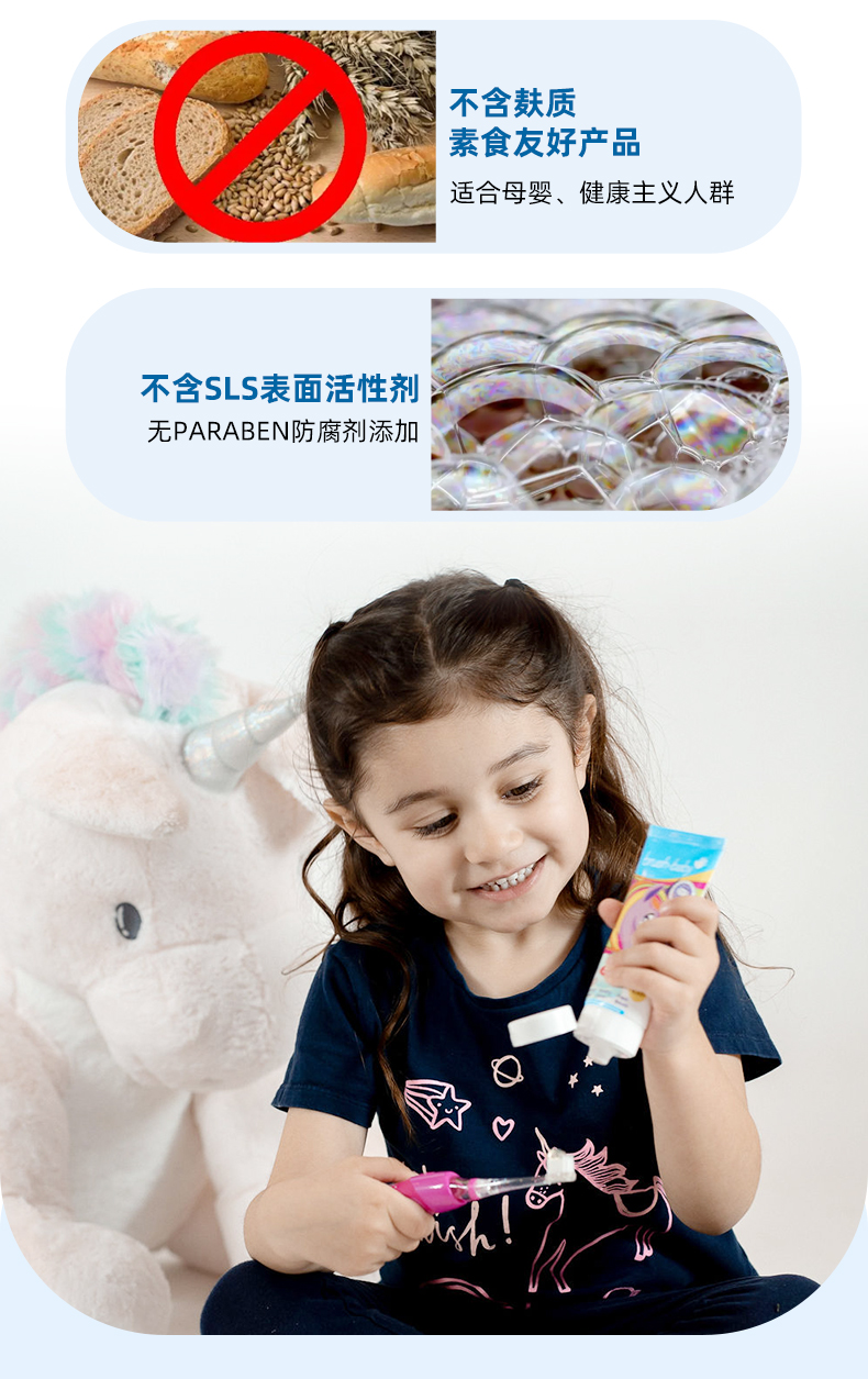 brush-baby百刷宝贝宝宝儿童牙膏3-6岁3岁以上幼儿含氟低氟防蛀牙