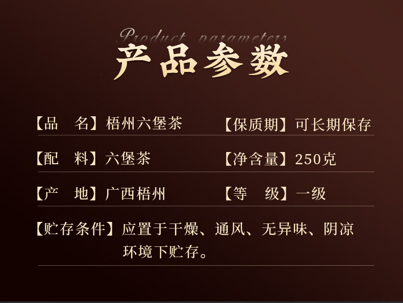 广宝 传家宝 十年陈 梧州年份六堡茶 茶叶 礼盒 250g
