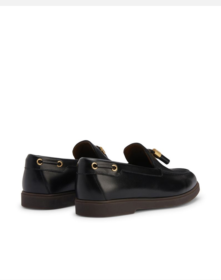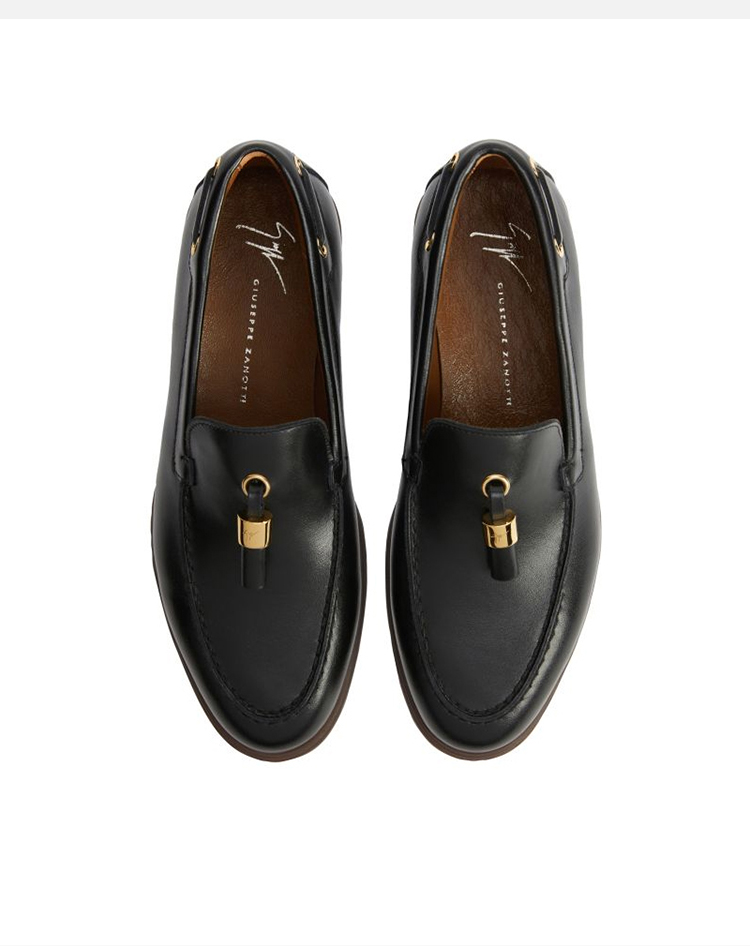 Giuseppe Zanotti 女士螺纹皮革乐福鞋 黑色 E460020007