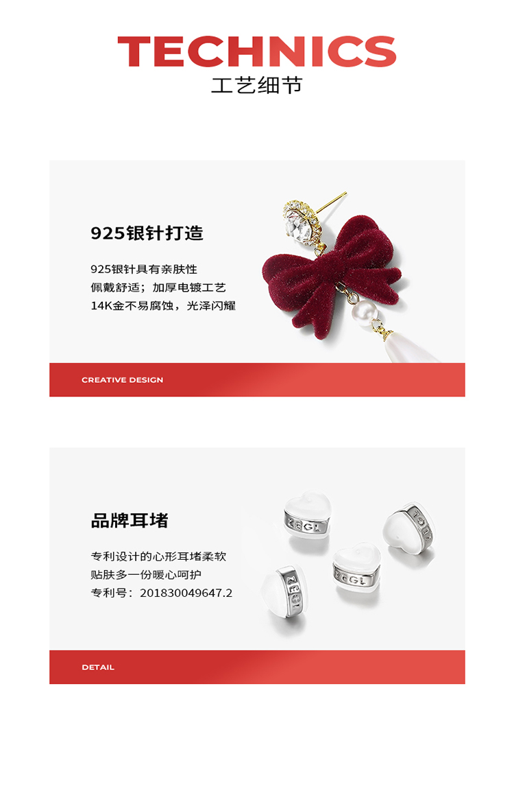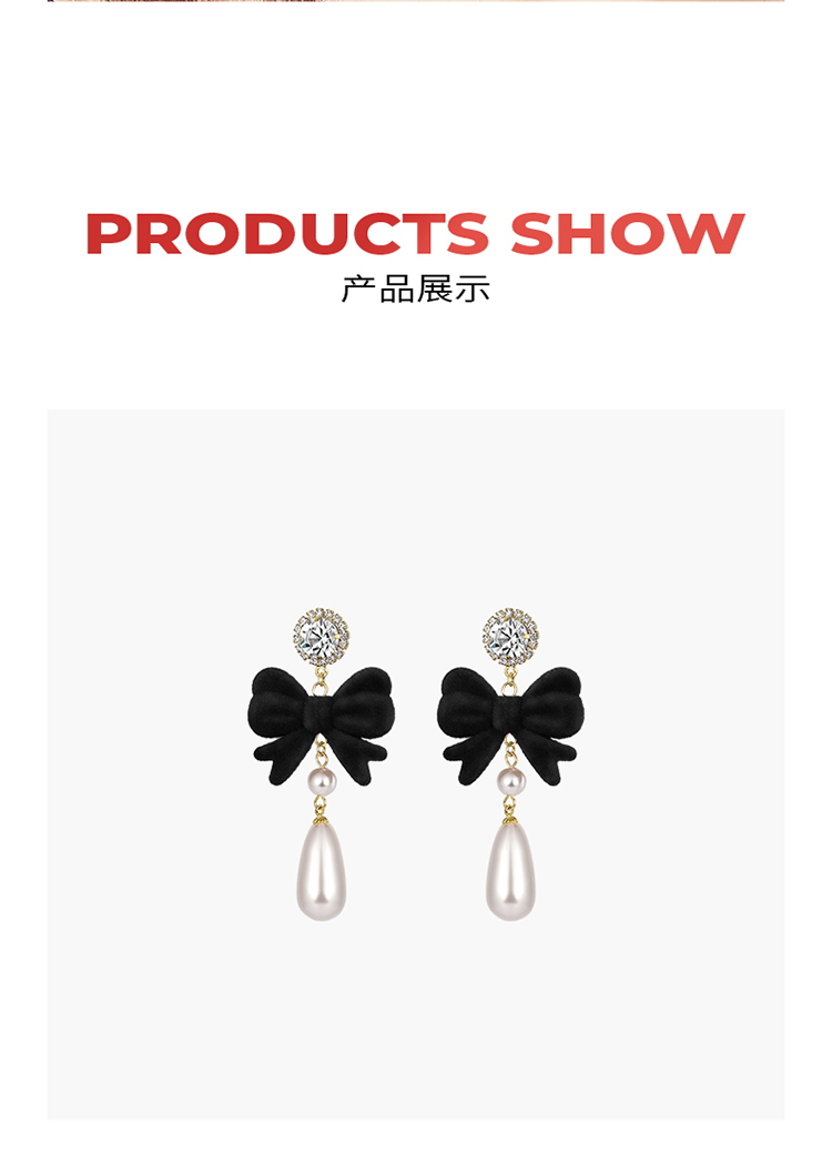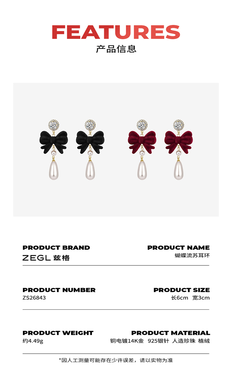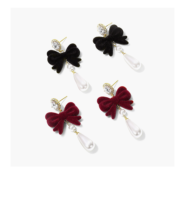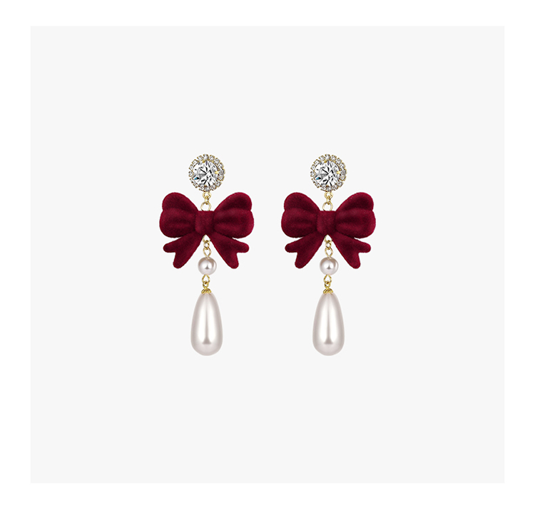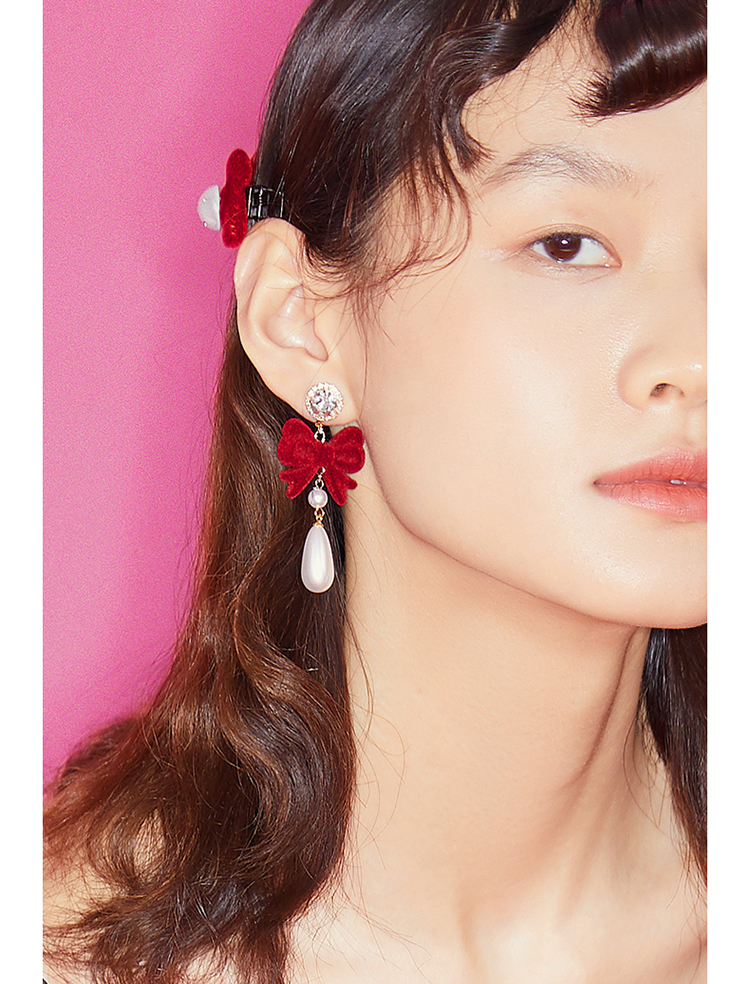 ZEGL圣诞蝴蝶结耳环女复古港风赫本人造珍珠耳钉925银针秋冬耳饰