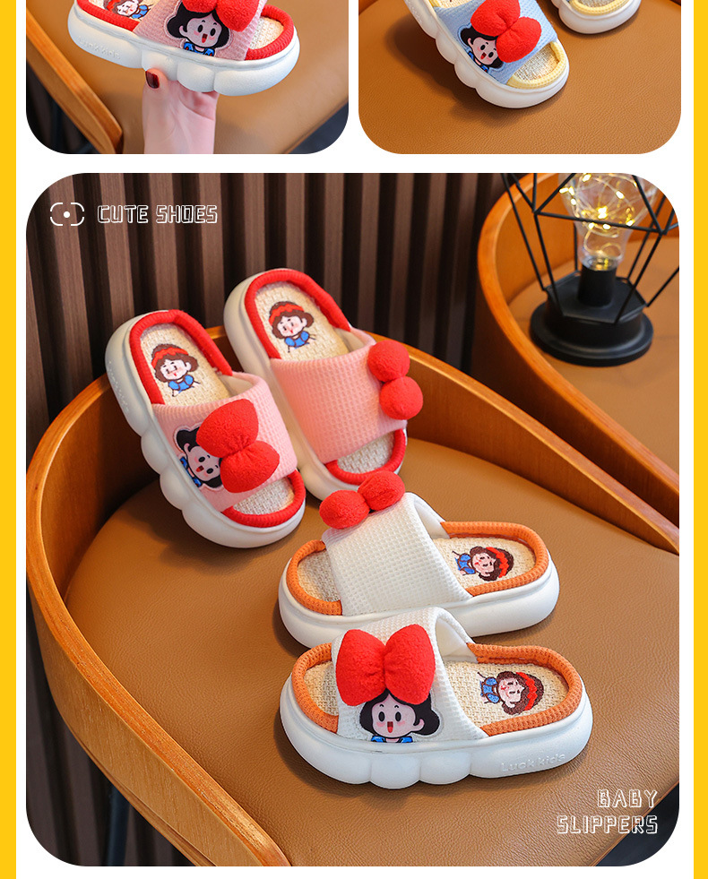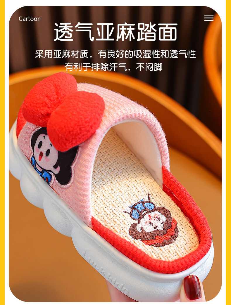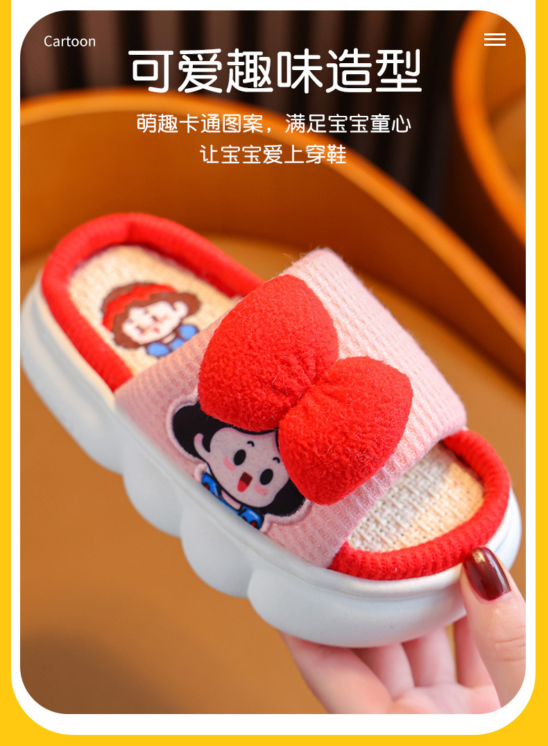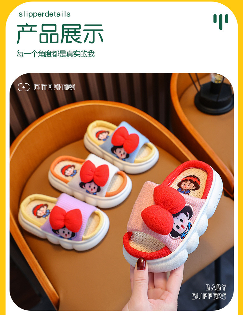「四款配色!亚麻材质」春夏儿童亚麻拖鞋 女孩公主室内家用防滑亲子四季宝宝地板凉拖鞋童鞋