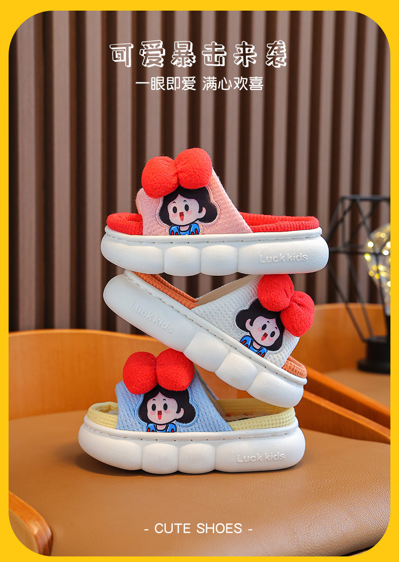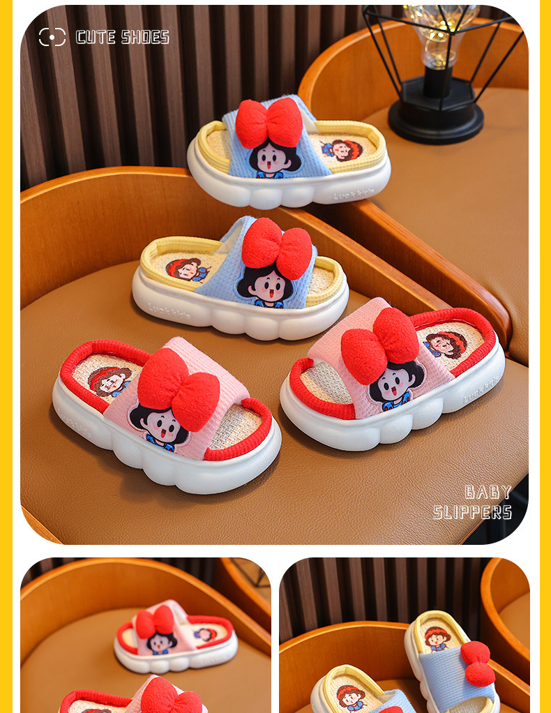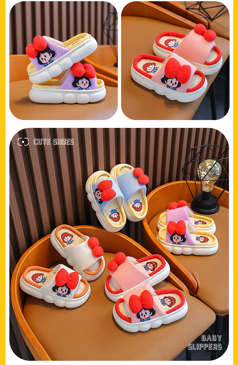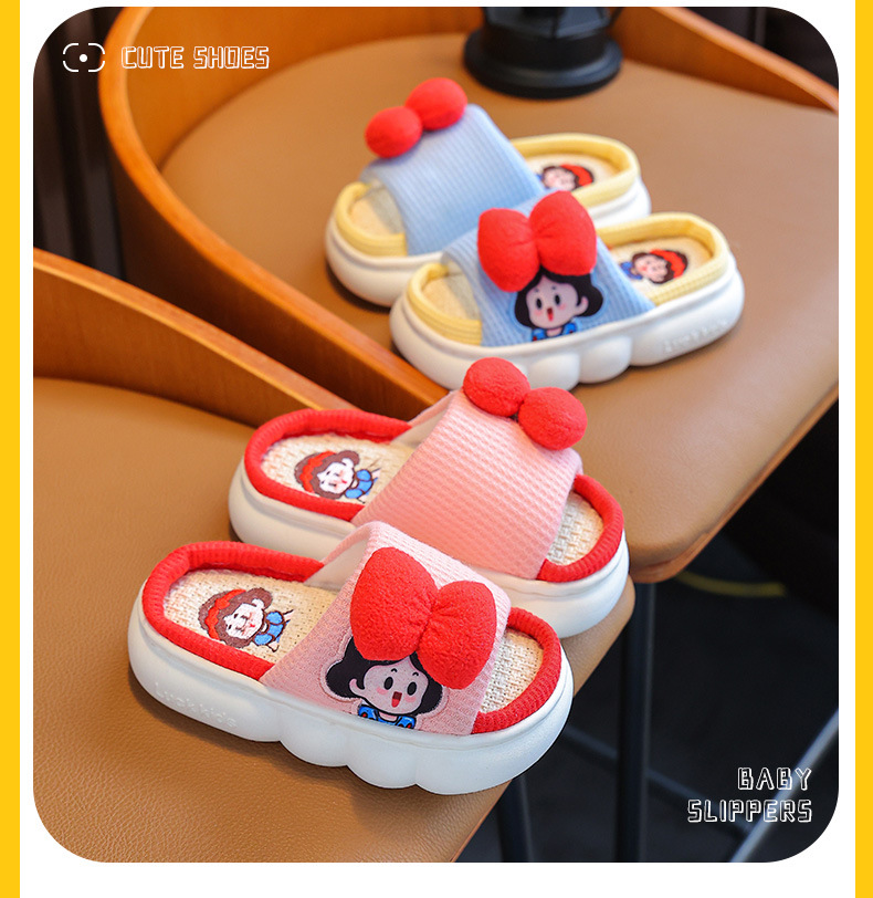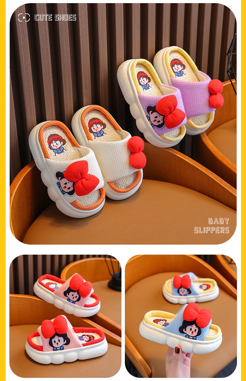 「四款配色!亚麻材质」春夏儿童亚麻拖鞋 女孩公主室内家用防滑亲子四季宝宝地板凉拖鞋童鞋