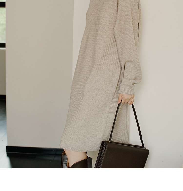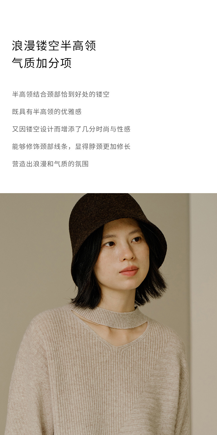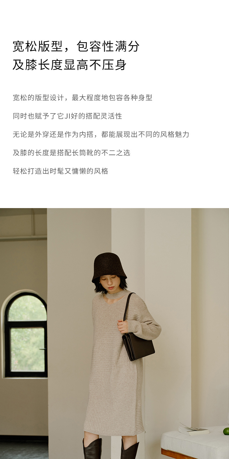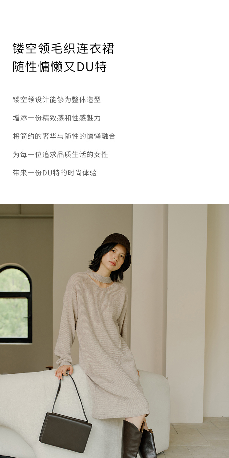 HeyDress羊毛针织连衣裙女秋季法式镂空半高领宽松慵懒感优雅裙子