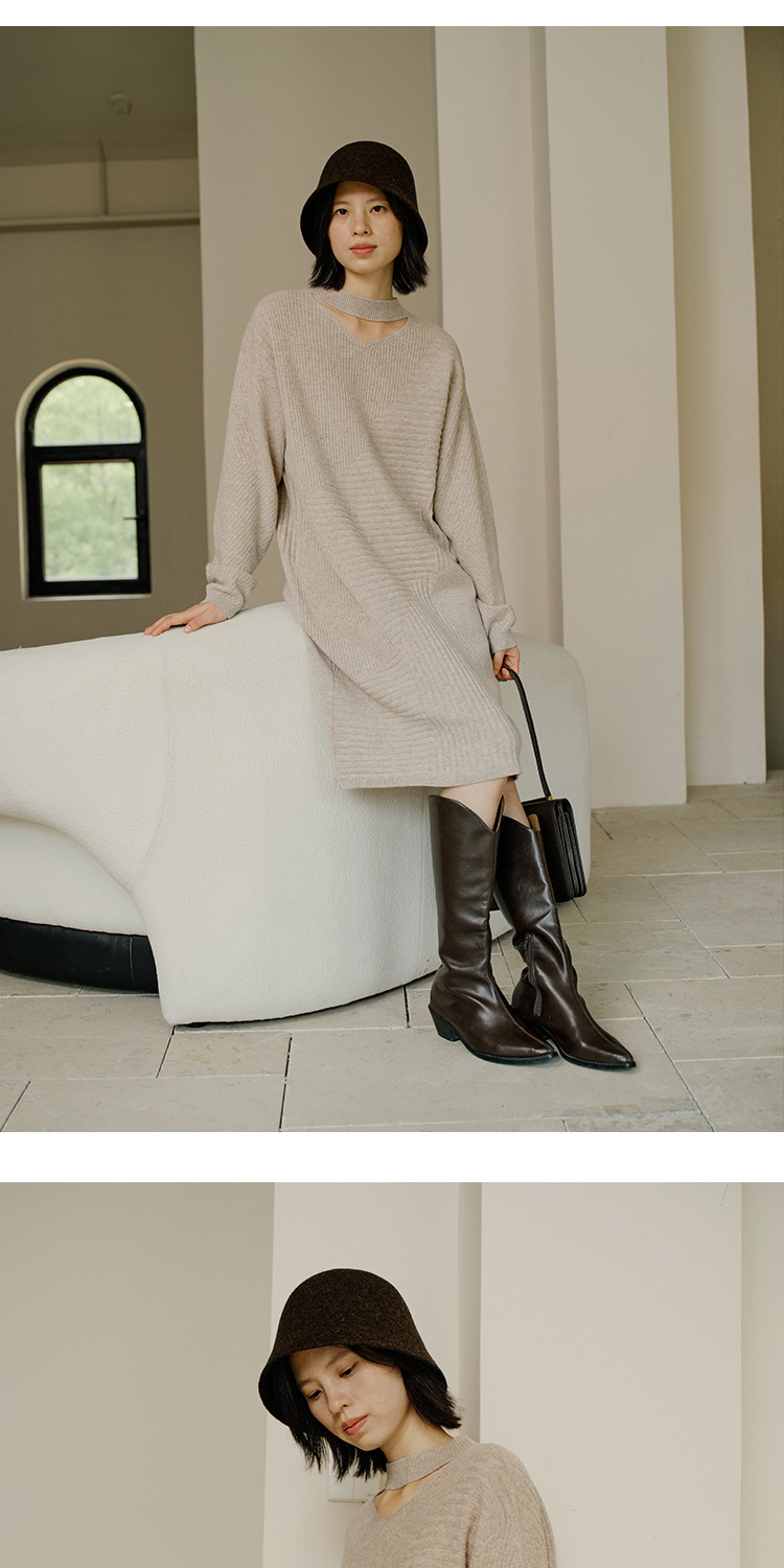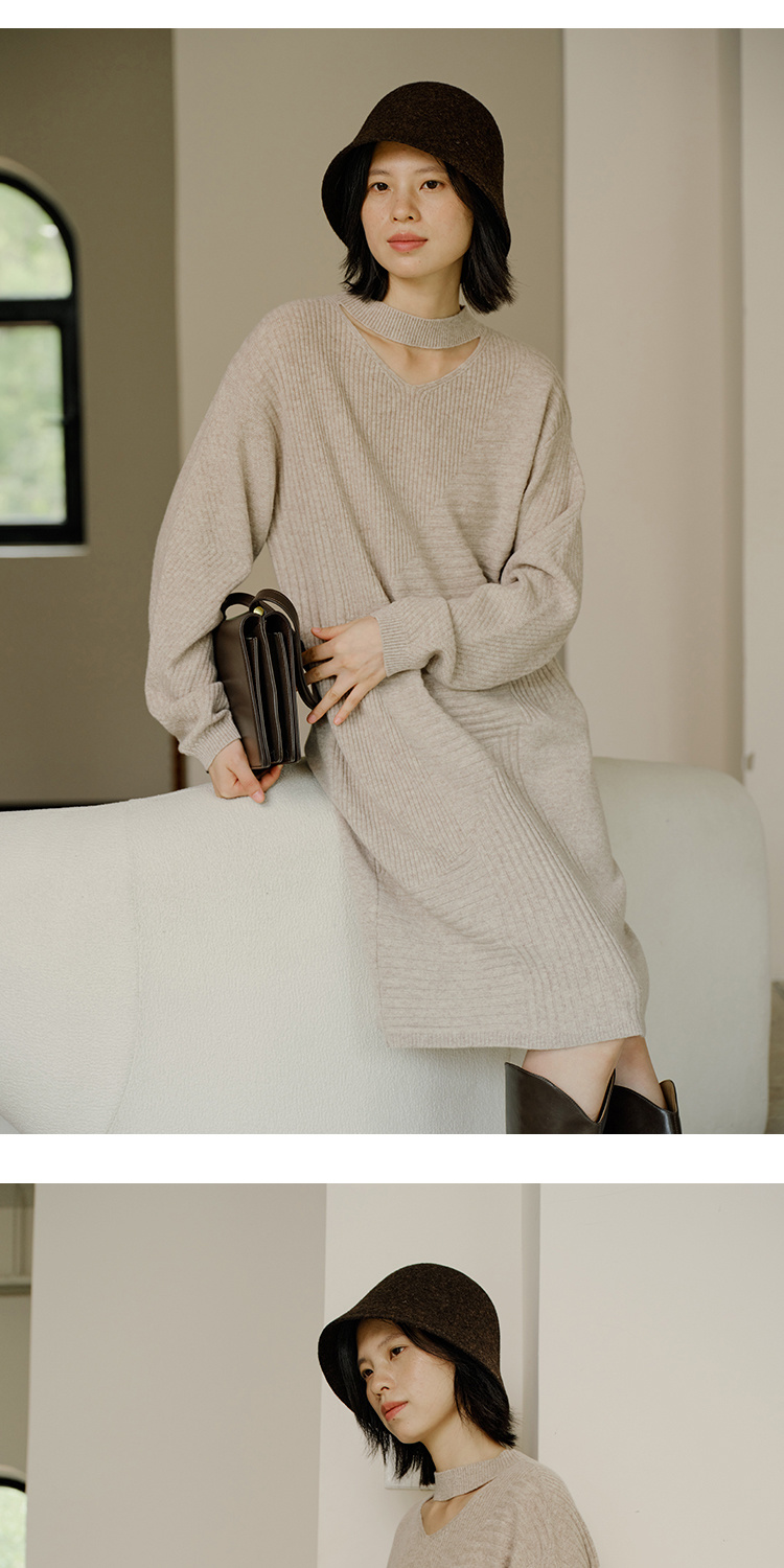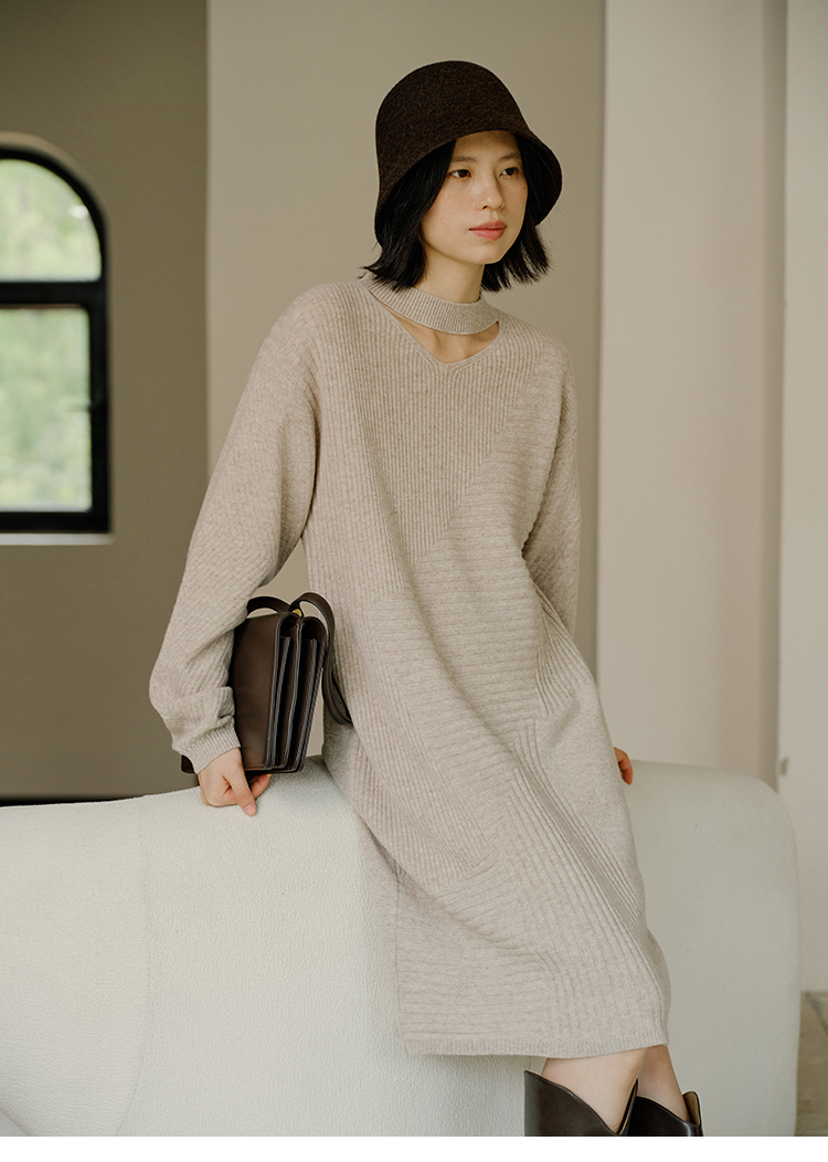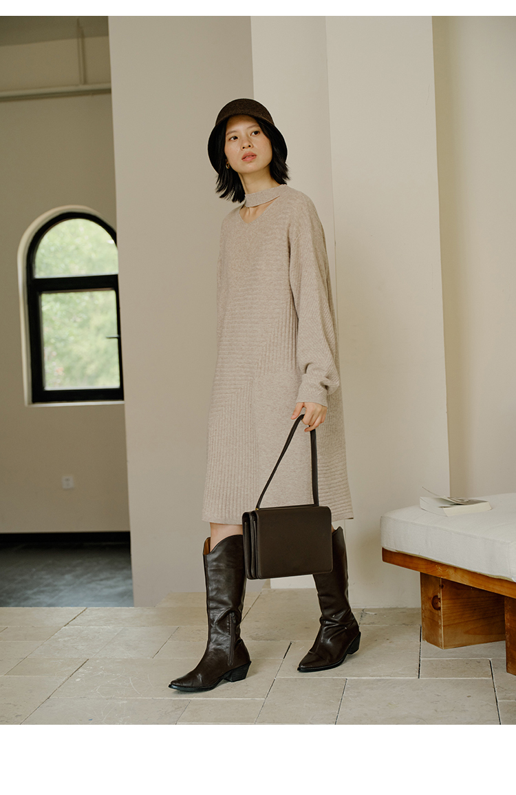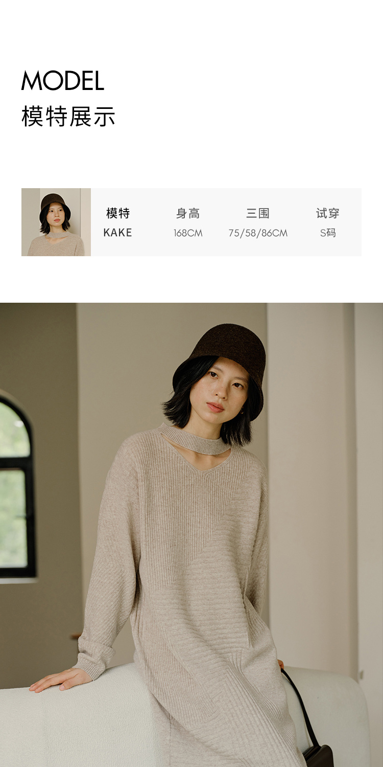 HeyDress羊毛针织连衣裙女秋季法式镂空半高领宽松慵懒感优雅裙子