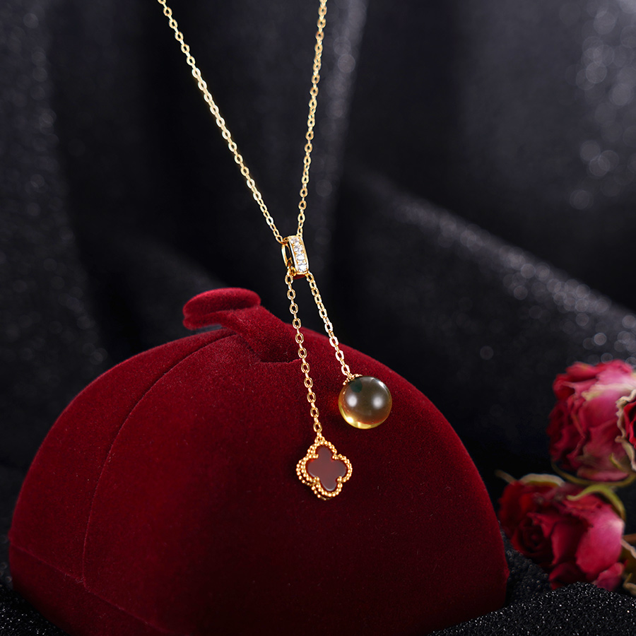 子佩集S925银【晨华】套链项链【DSD936】纯银琥珀镀金蓝珀2404