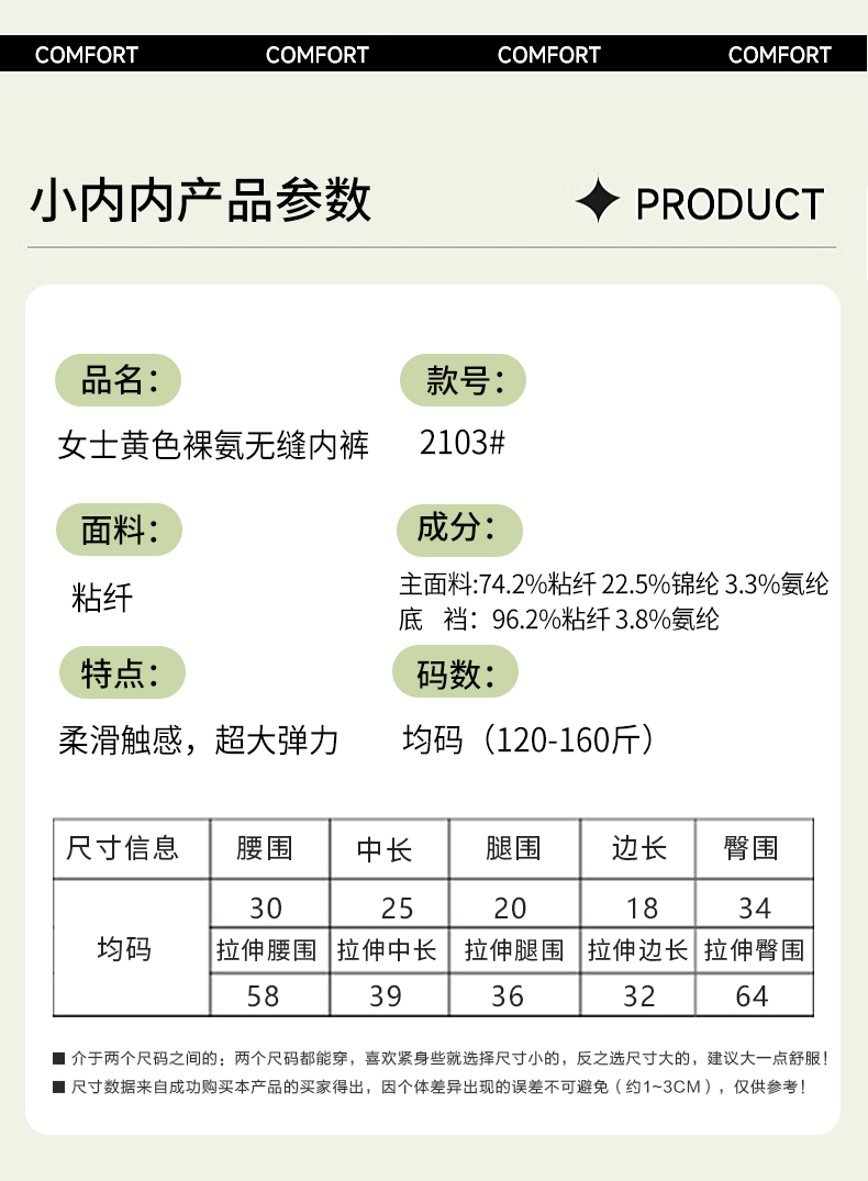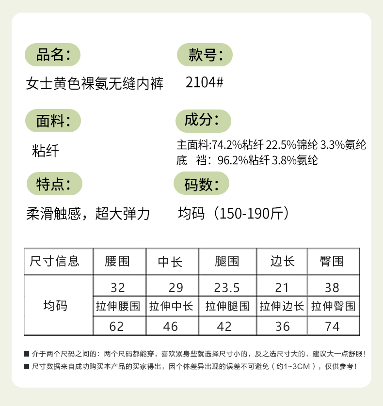 女士加肥加大版黄色裸氨内裤2103/2104