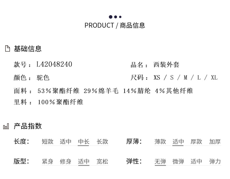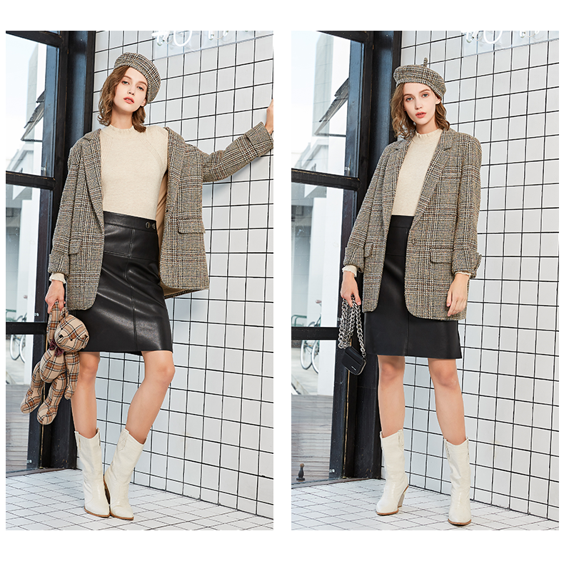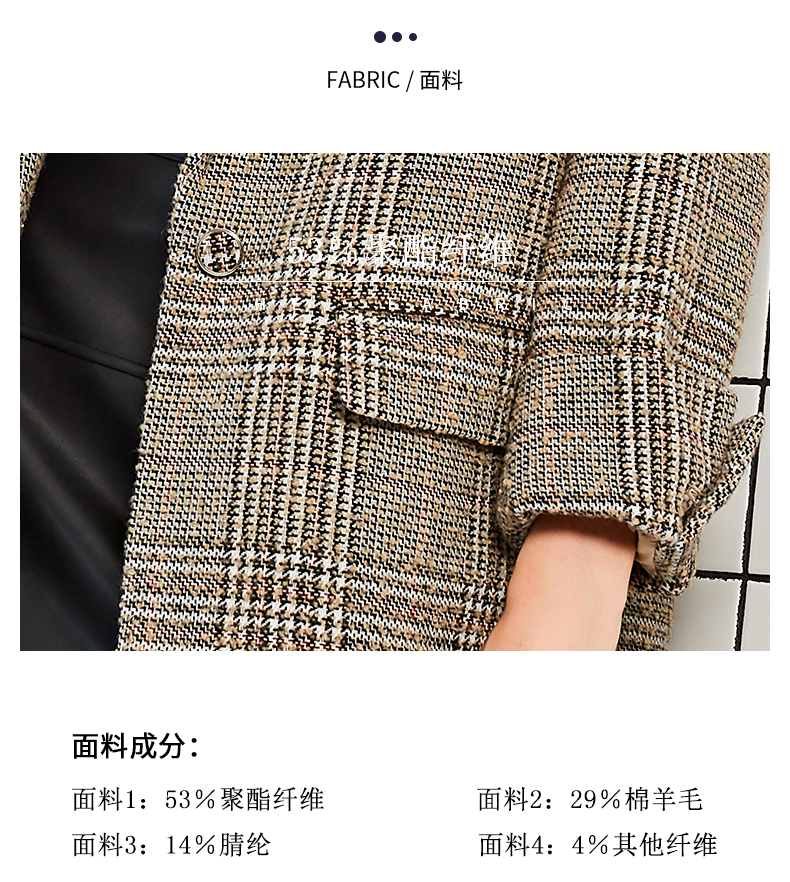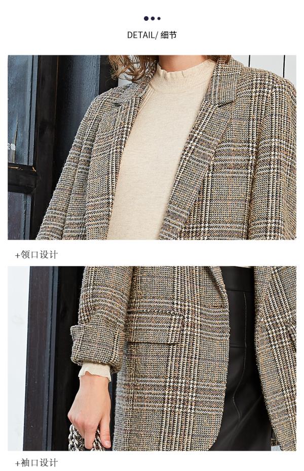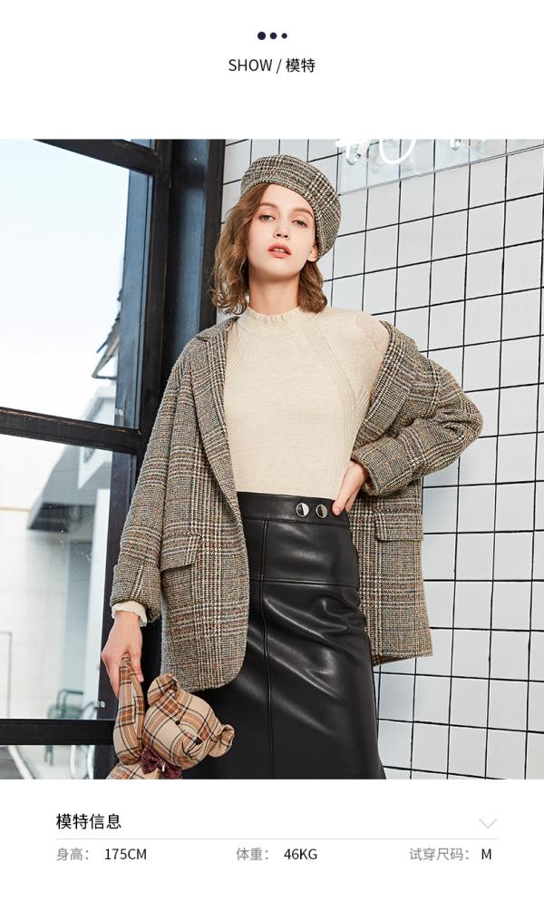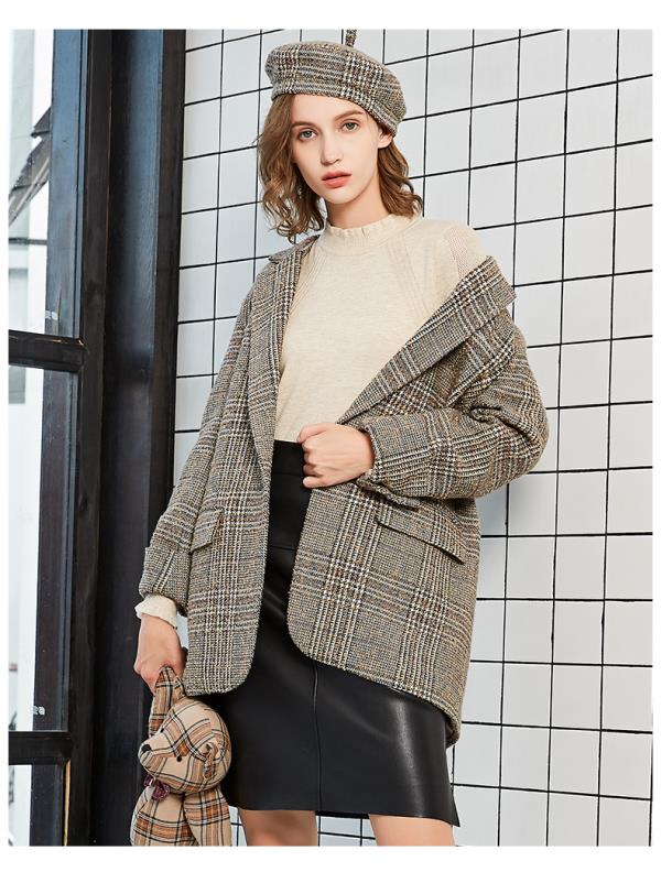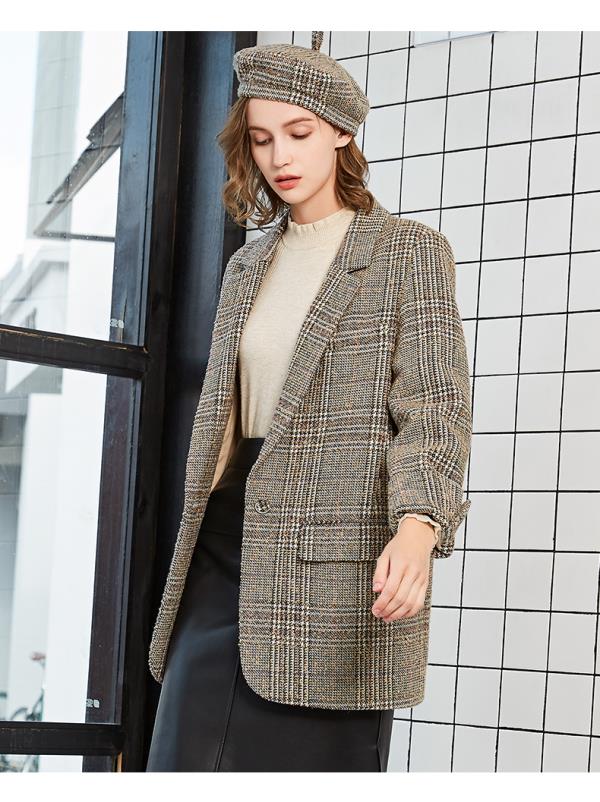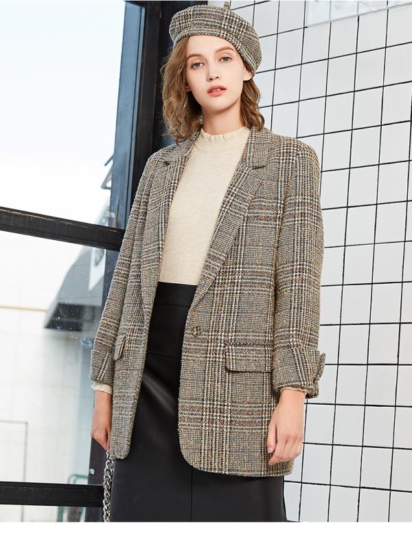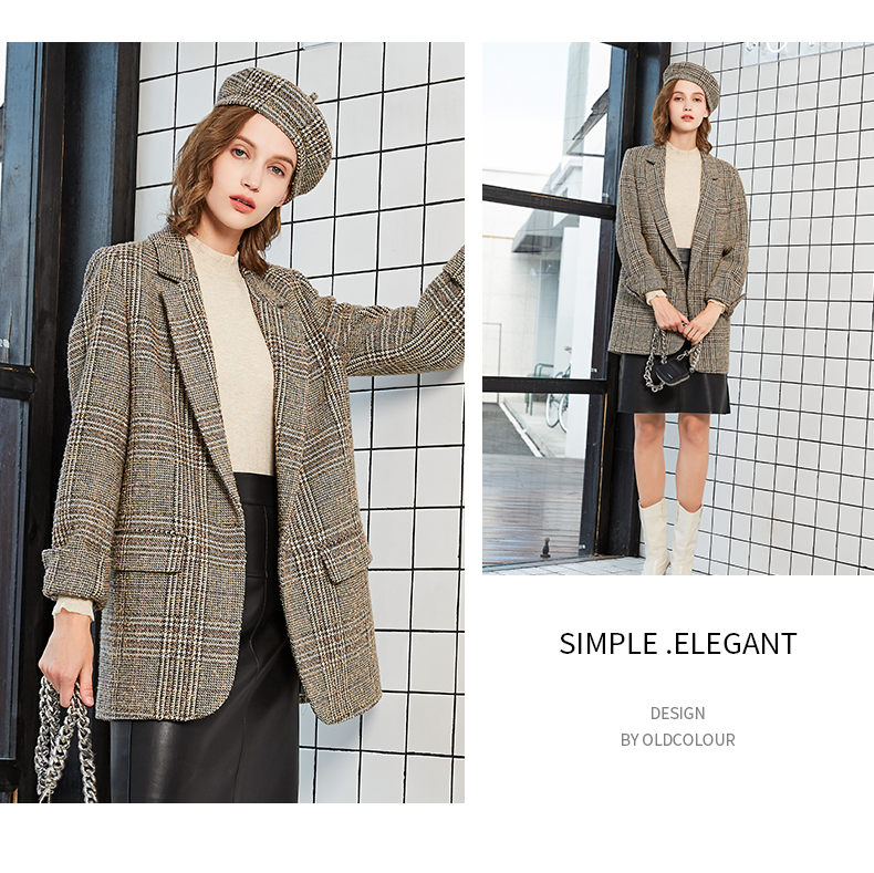 oldcolour冬季新品商场同款格子含羊毛西装外套女L42048240
