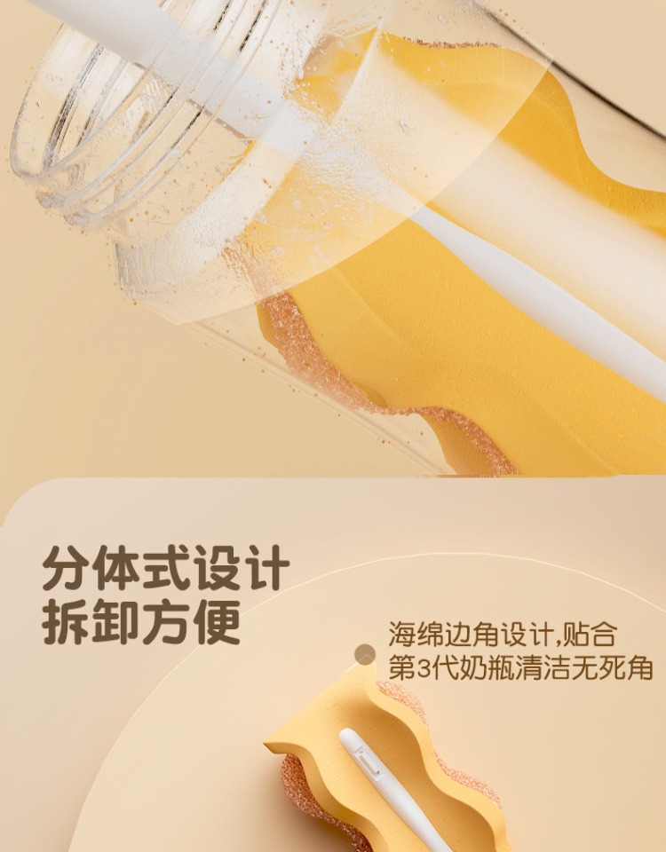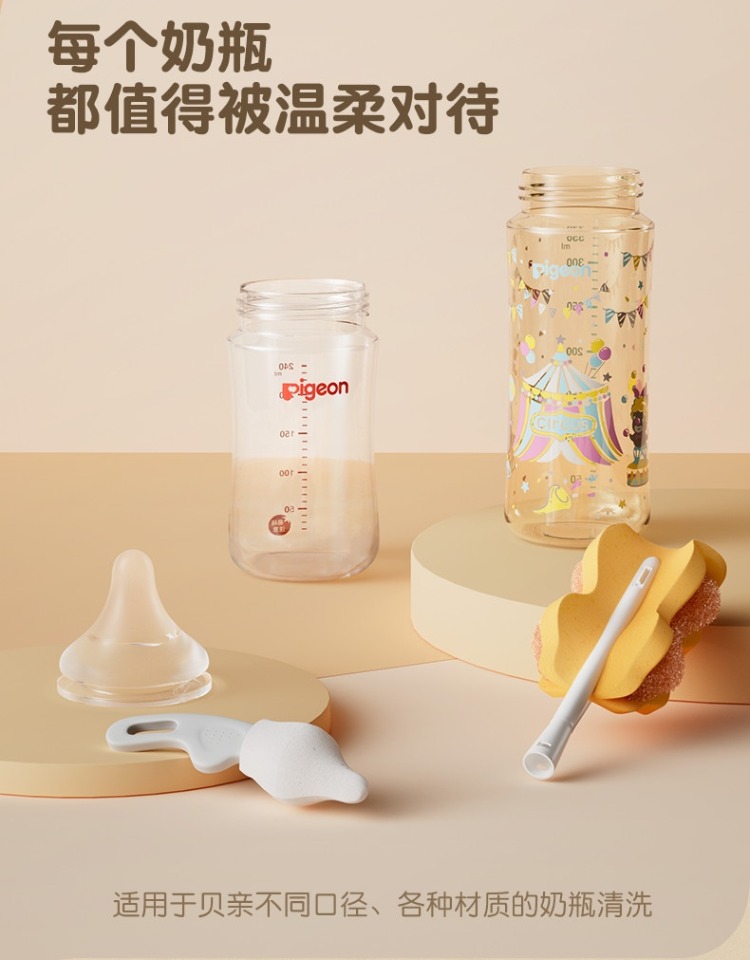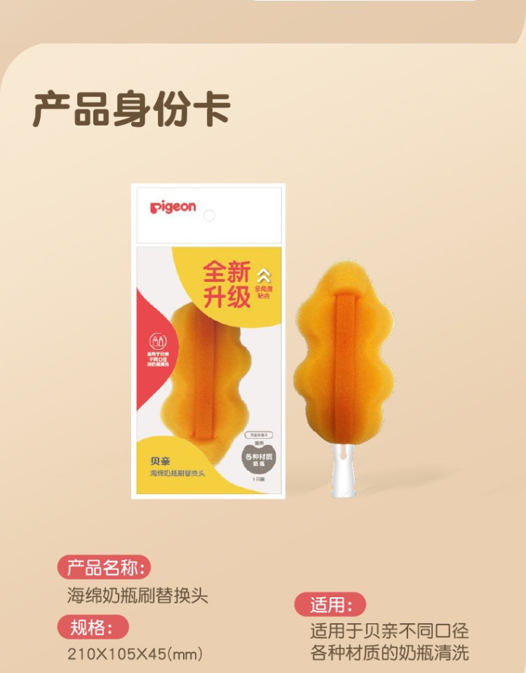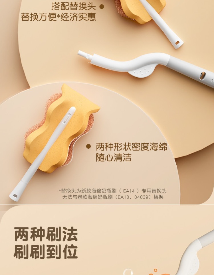 贝亲海绵奶瓶刷宝宝奶瓶刷360旋转(双刷法)奶瓶清洗刷PIG-EA14