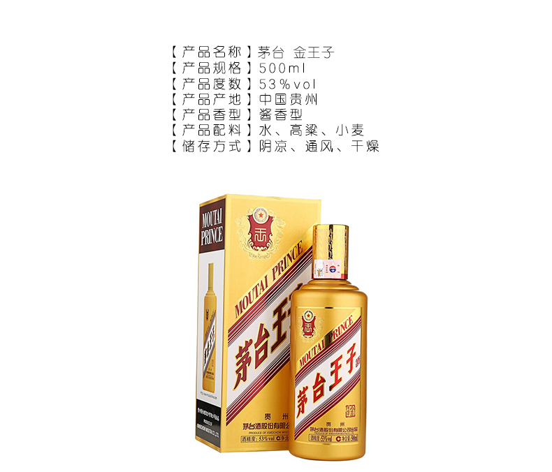 茅台金王子酱香型白酒53度500ml单瓶装-jmw