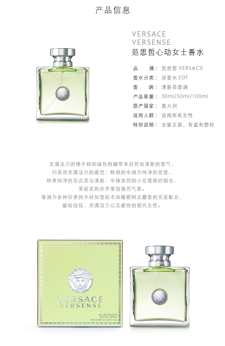 【官方正品】Versace/范思哲心动女士香水持久淡香清新花香专柜正品30ml/50ml