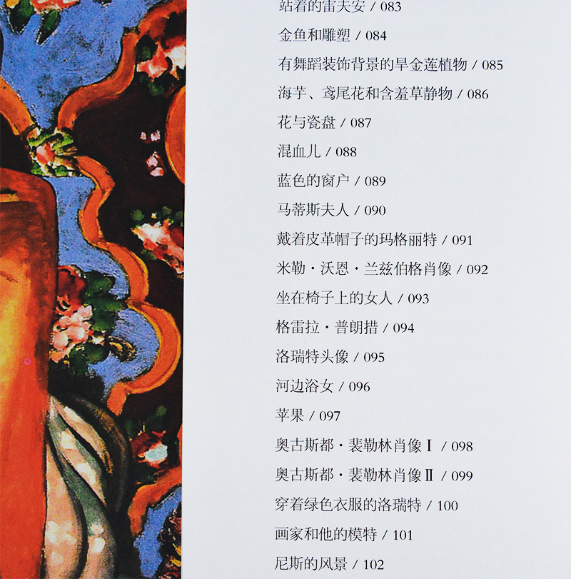 《马蒂斯》收入了马蒂斯的部分画作。亨利·马蒂斯是法国具艺术表现力和创造力的画家之一,是野兽主义(也称野兽派)的创始人和主要代表人物,也是雕塑家、壁画家。他主张颠覆西方传统的艺术风格,强调解放色彩,充分发挥色彩的主观性和自律性。他的作品色彩明亮、线条简单,但是蕴含的情感却非常丰富,他的创作风格在绘画领域可谓独树一帜。 在马蒂斯看来,构图是富有装饰意义的绘画艺术的一个要素,他没有花大量功夫来描绘人物的面部表情、装饰等细节,而是希望通过看似粗糙的整体布局来将自己的想法表现出来,用他富有节奏感的线条来引导人们去感受那个表象之下丰富多彩的世界。同时,他还借鉴了一些东方的绘画技巧,这一切都使他的作品具有一种简洁却非常强烈的装饰性。