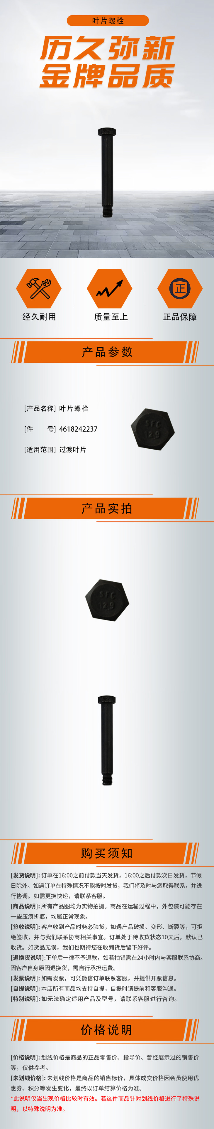 【叶片螺栓4618242237】 适用于过渡叶片