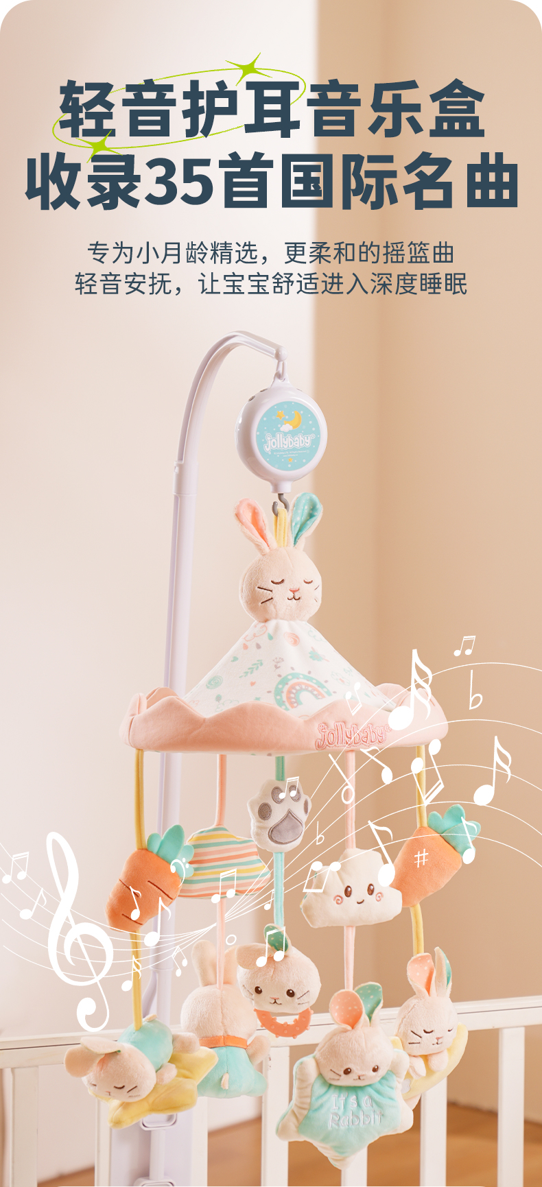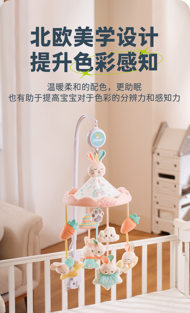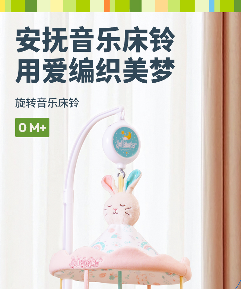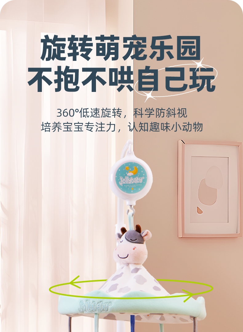 jollybaby新生儿可旋转音乐床铃0-3月宝宝床头悬挂式吊挂摇铃玩具