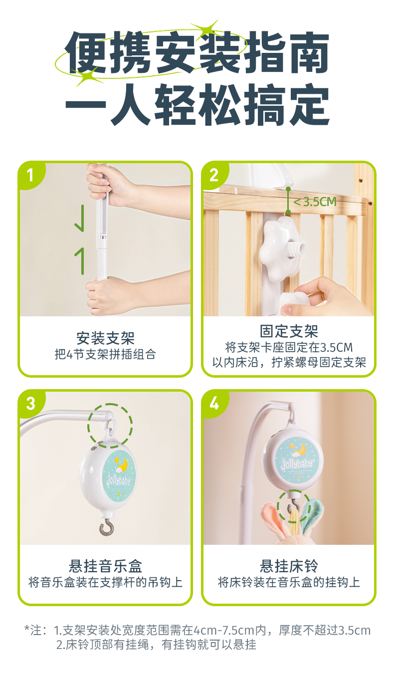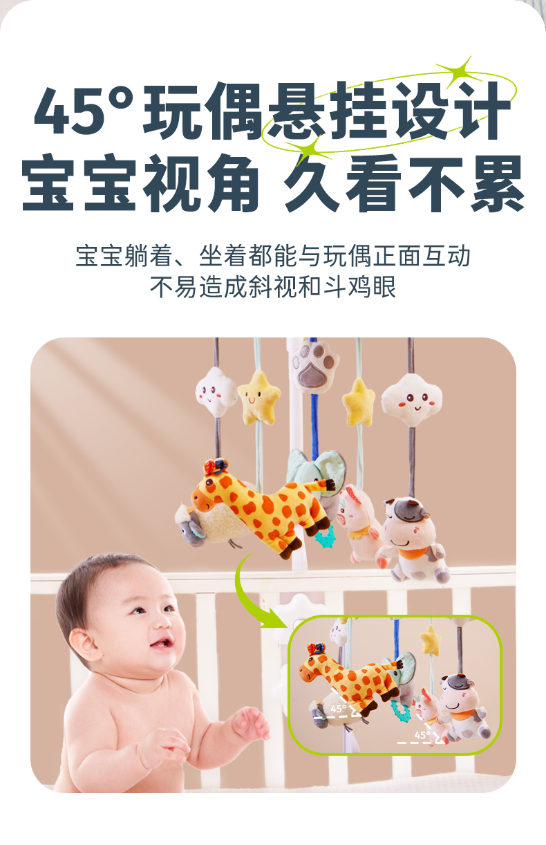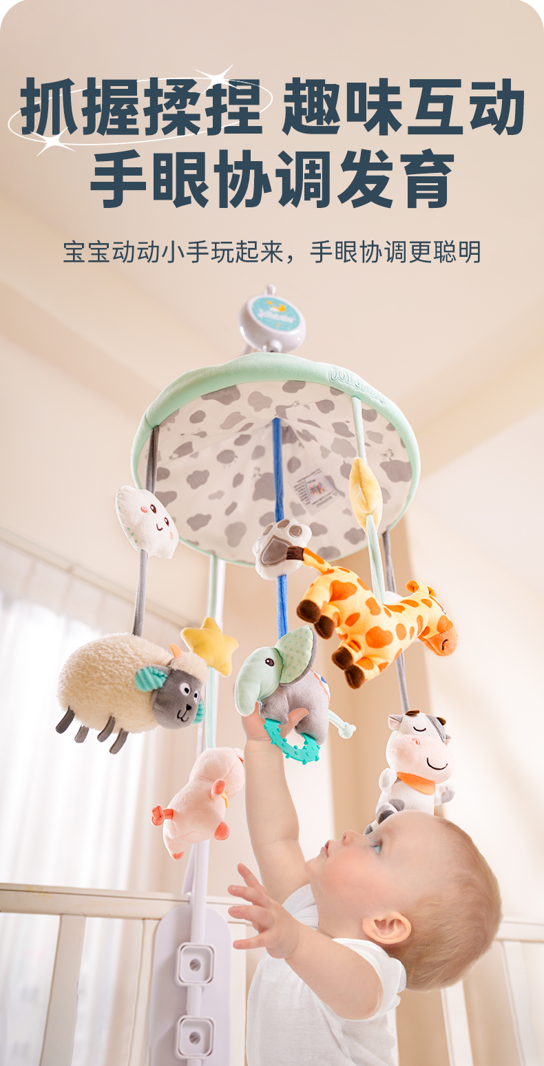 jollybaby新生儿可旋转音乐床铃0-3月宝宝床头悬挂式吊挂摇铃玩具