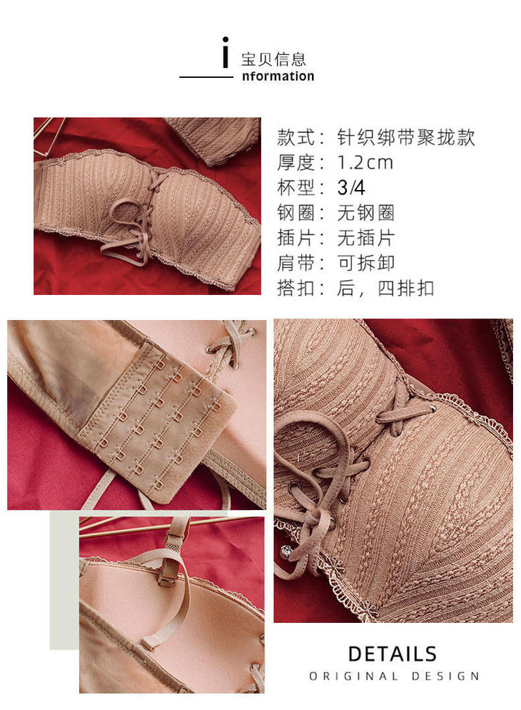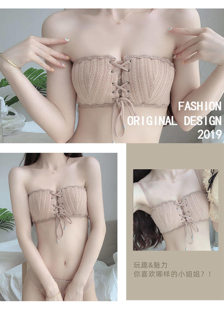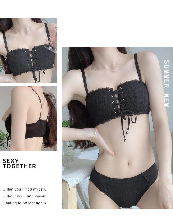 无肩带内衣女套装聚拢防滑学生裹胸绑带小胸薄款无钢圈抹胸式文胸