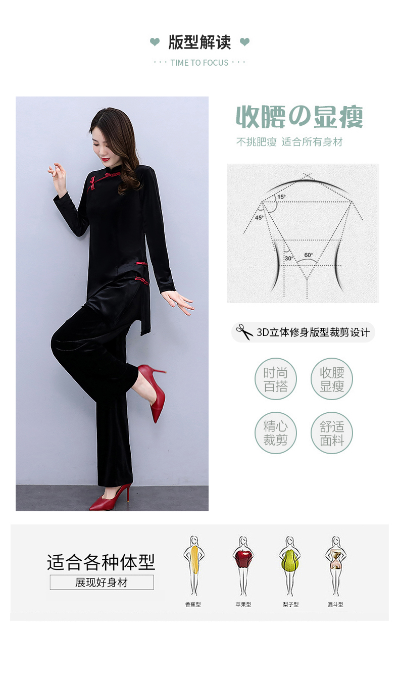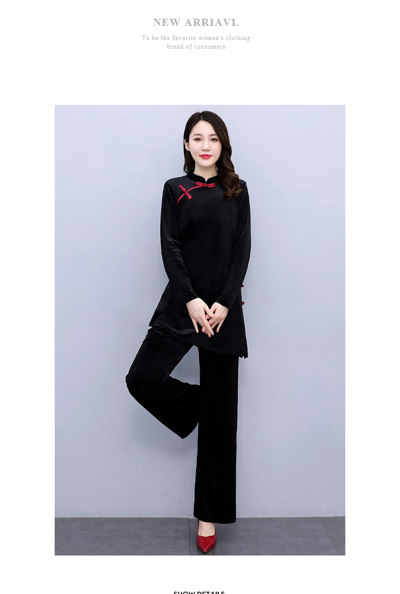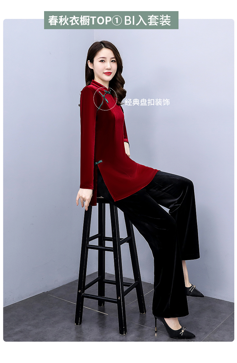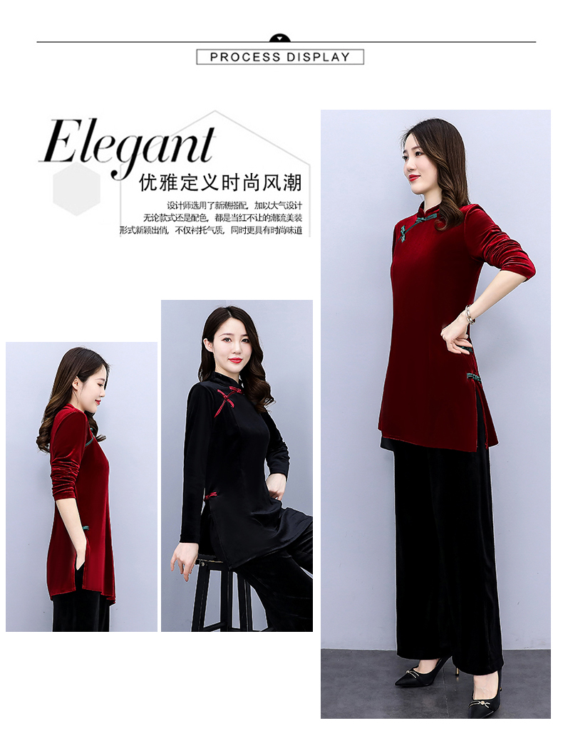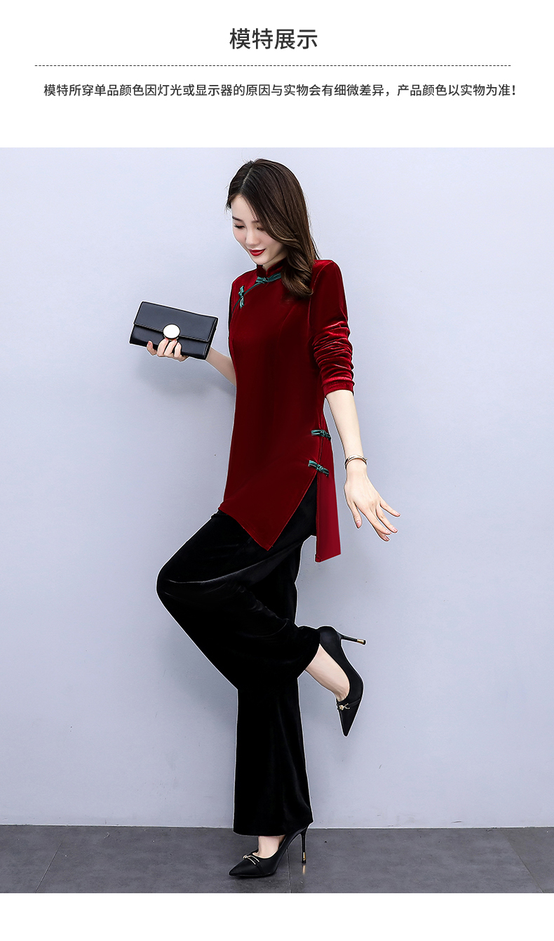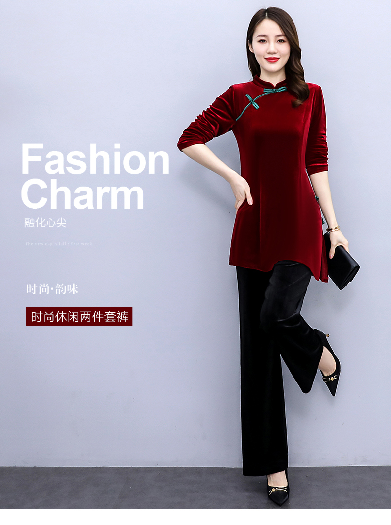 金丝绒时尚优雅潮流舒适套装圆领个性气质款 HR-HRYZ7735
