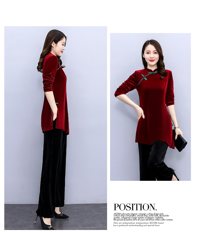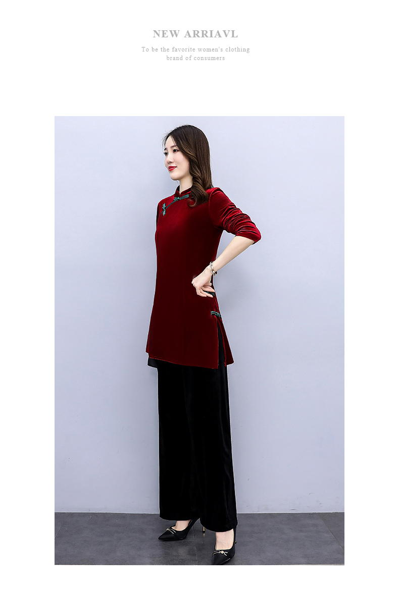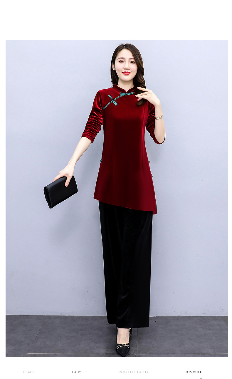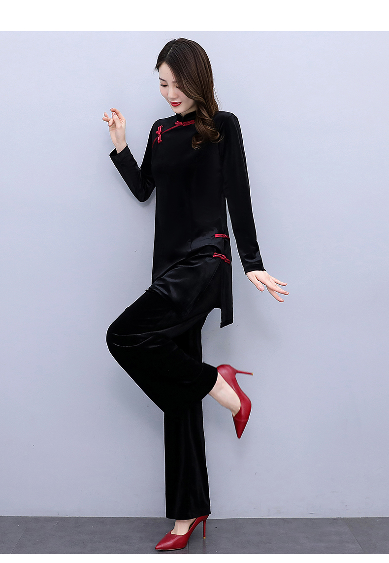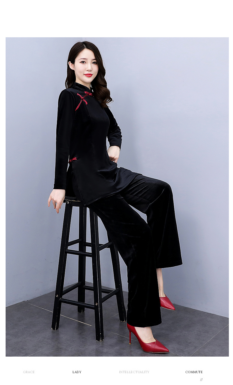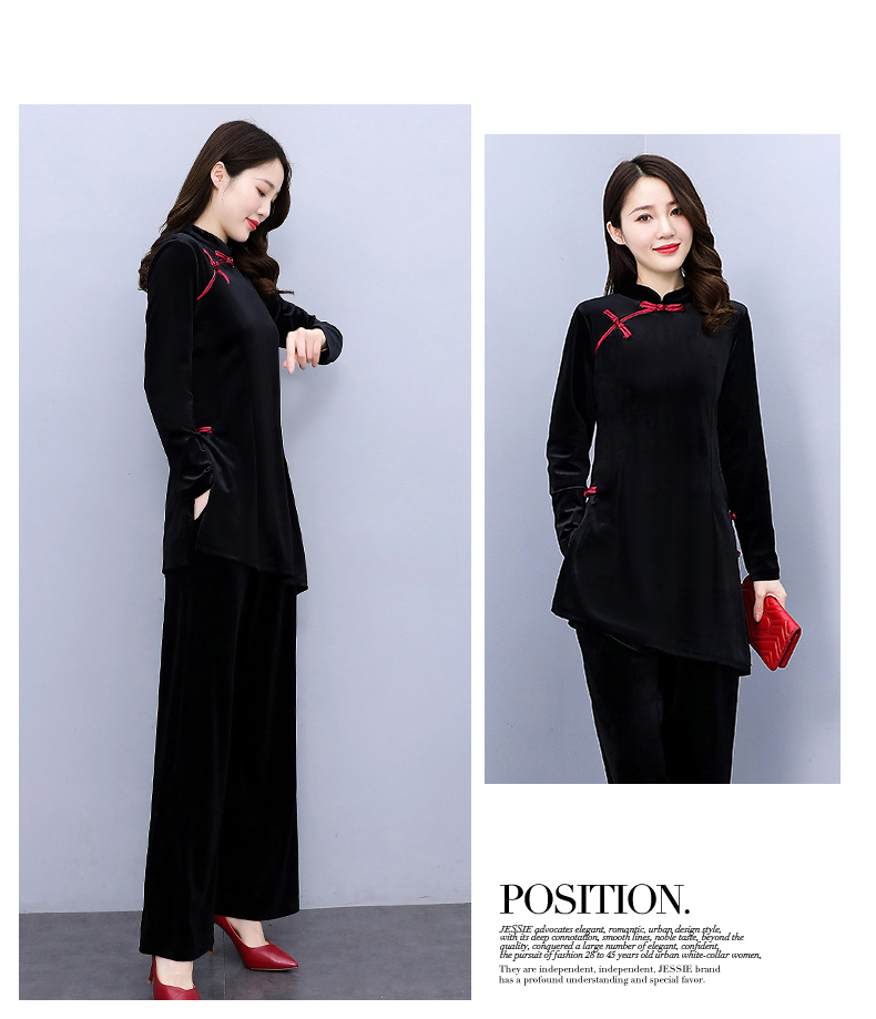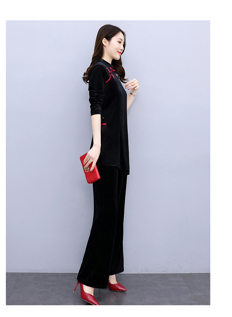 金丝绒时尚优雅潮流舒适套装圆领个性气质款 HR-HRYZ7735