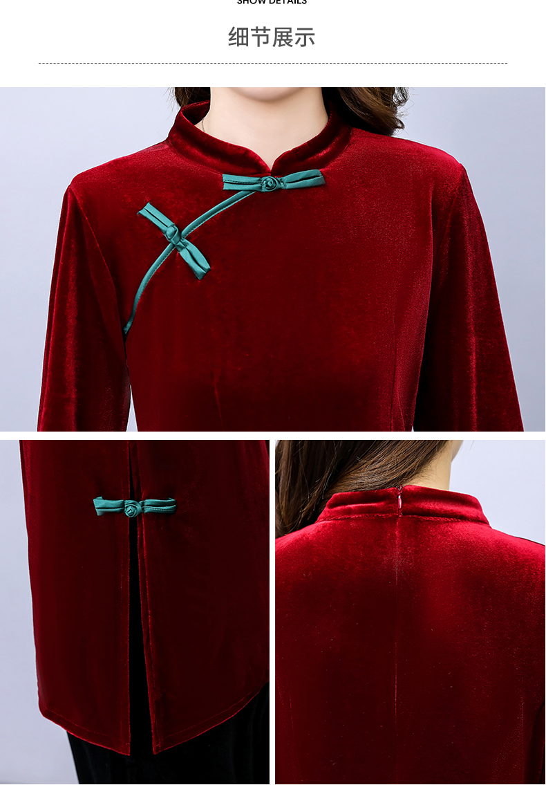 中式改良旗袍上衣女春秋中国风复古立领气质盘扣印花刺绣长袖衬衫 YX2051