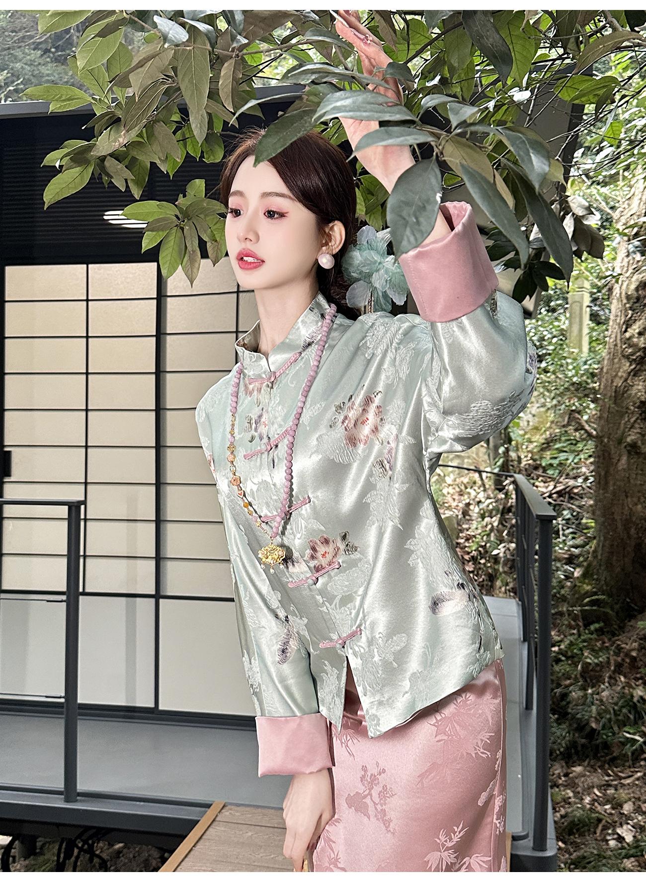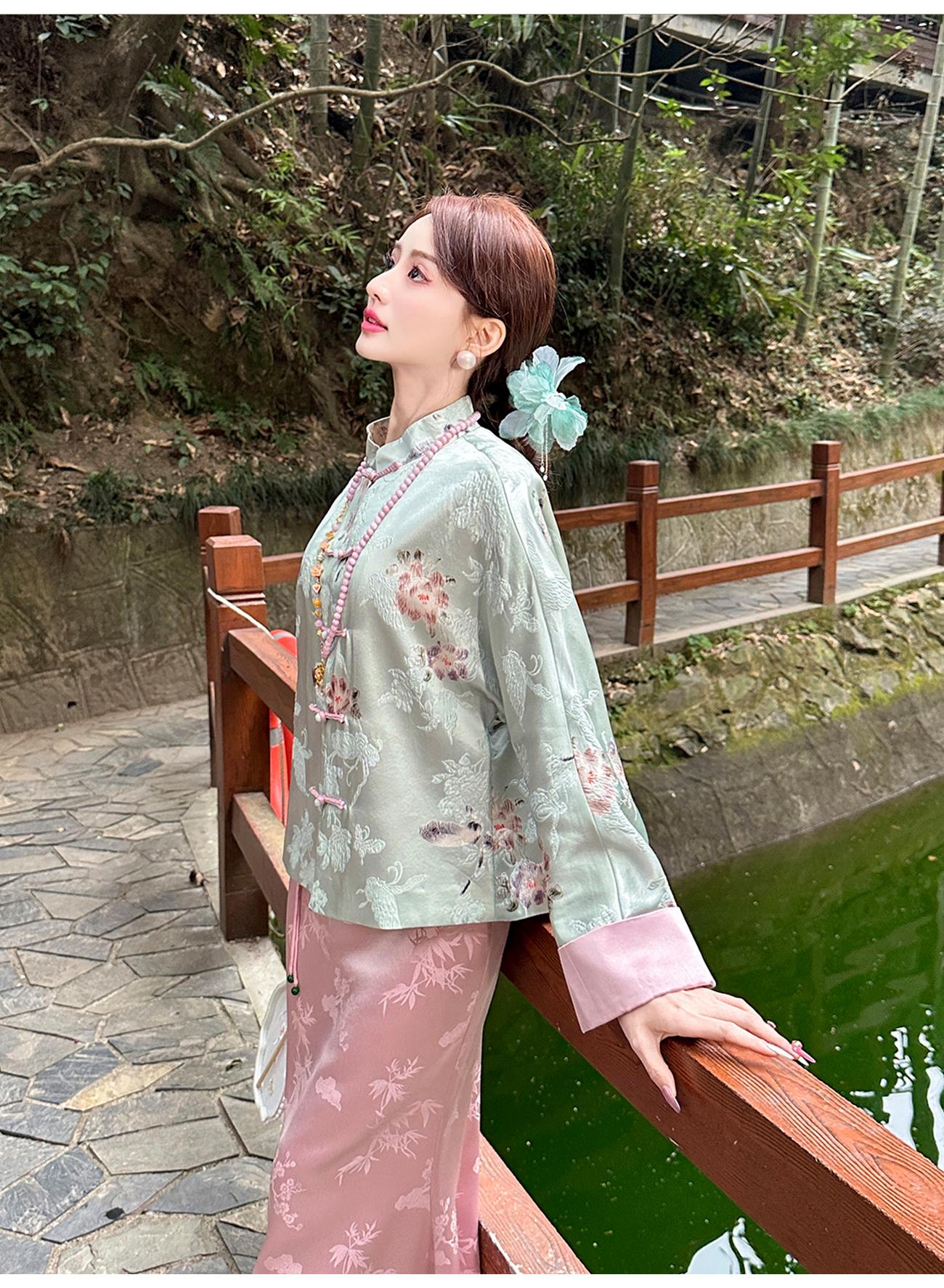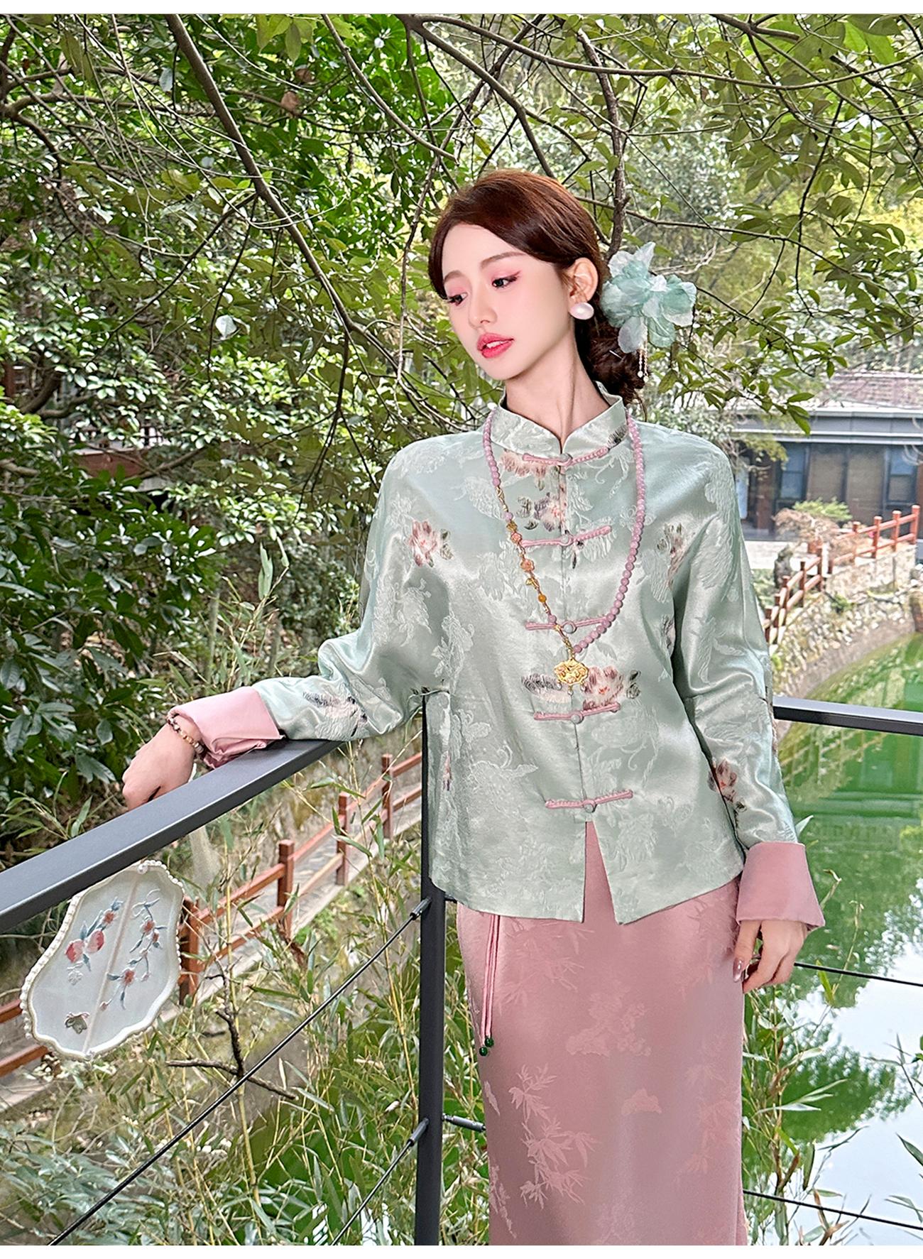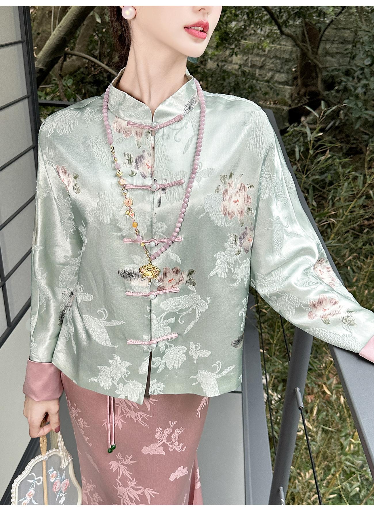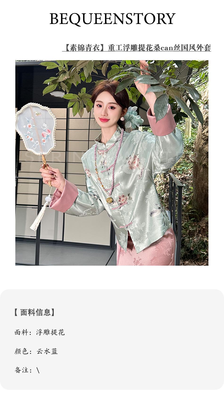 【大货孤品,不退不换】【素锦青衣】新中式重工浮雕提花高级感桑蚕丝国风外套