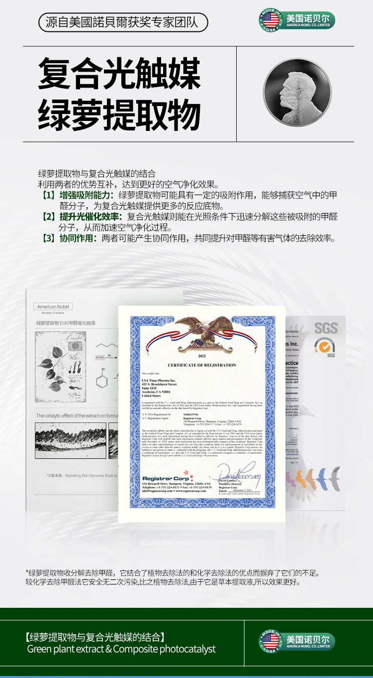 美国诺贝尔光触媒甲醛清除剂 新房去除异味强力型