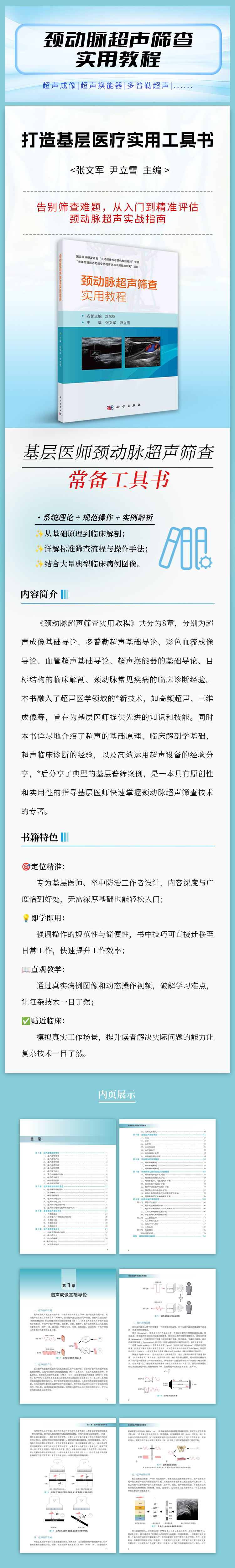 本书共分为8章,分别为超声成像基础导论、多普勒超声基础导论、彩色血流成像导论、血管超声基础导论、超声换能器的基础导论、目标结构的临床解剖、颈动脉常见疾病的临床诊断经验。本书融入了超声医学领域的…新技术,如高频超声、三维成像等,旨在为基层医师提供先进的知识和技能。同时,本书详尽地介绍了超声的基础原理、临床解剖学基础、超声临床诊断的经验,以及高效运用超声设备的经验分享,最后分享了典型的基层普筛案例,是一本具有原创性、实用性的指导基层医师快速掌握颈动脉超声筛查技术的专著。