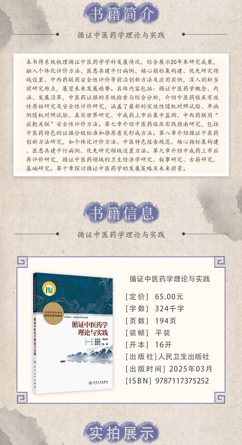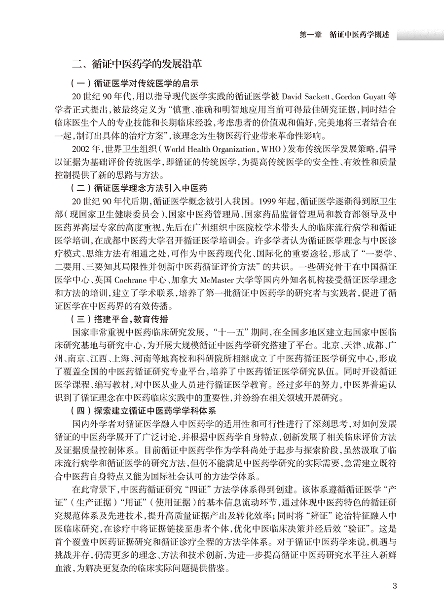 本书将系统梳理循证中医药学学科发展情况,综合展示20年来研究成果,融入个体化评价方法、医患共建平行病例、核心指标集构建、优先研究领域设置、中西药联用安全性评价等前沿创新方法及应用实例,深入剖析当前研究难点,展望未来发展趋势。具体内容包括:循证中医药学概念、内涵、发展沿革,中医药证据的系统检索与综合分析,介绍中医药临床有效性原始研究及安全性评价研究,涵盖了最新的实效性随机对照试验、单病例随机对照试验、真实世界研究、中成药上市后集中监测、中西药联用“症靶关联”安全性评价方法。第七章介绍中医药临床实践指南研究,包括中医药特色的证据分级标准和推荐意见形成方法。第八章介绍循证中医药创新方法研究,如个体化评价方法、中医特色报告规范、核心指标集构建、医患共建平行病例、优先研究领域设置方法。第九章介绍中成药上市后再评价研究,循证中医药领域的卫生经济学研究、叙事研究、古籍研究、基础研究。第十章探讨循证中医药学的发展策略及未来前景。