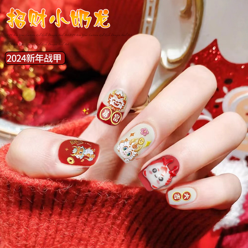【可拆卸!自由随心】D312假指甲贴片可拆卸穿戴甲新年战甲磨砂吉子龙手工封层光疗美甲。ry