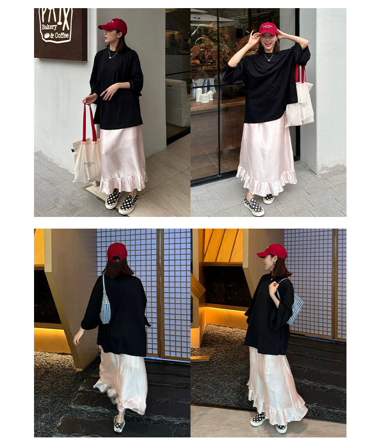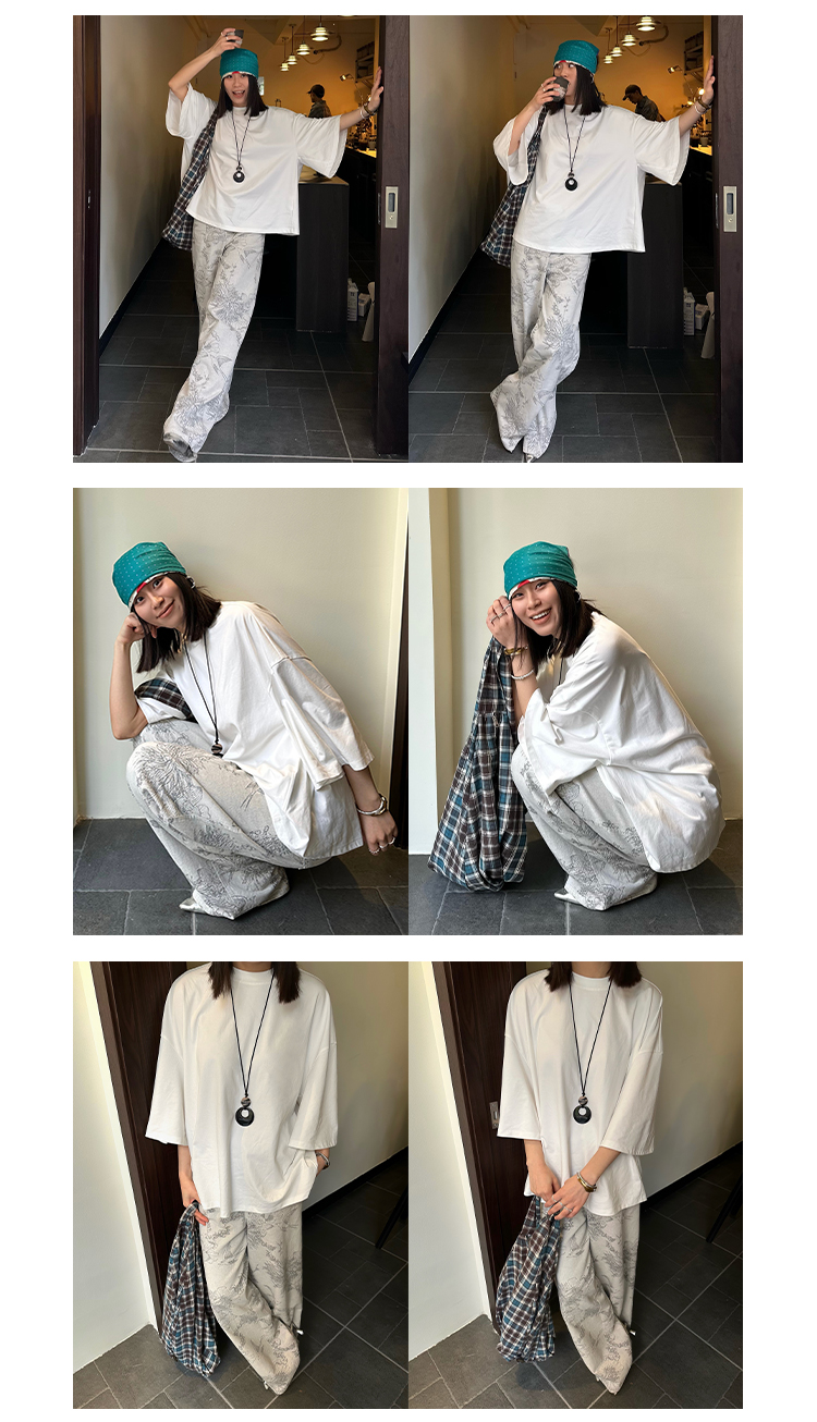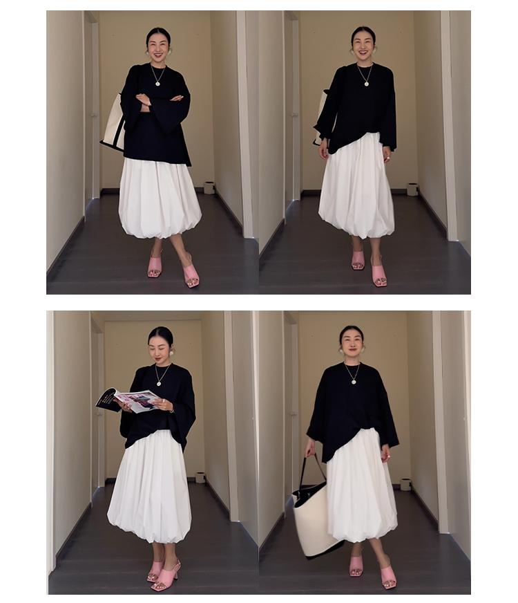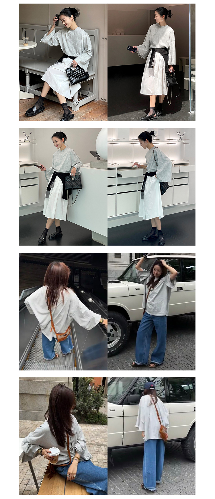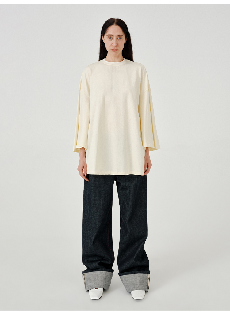 HIDEMI 极简圆领大廓形进口自然棉纱线中长款套头九分袖T恤 黑色/浅花灰/蛋奶米黄/自然白