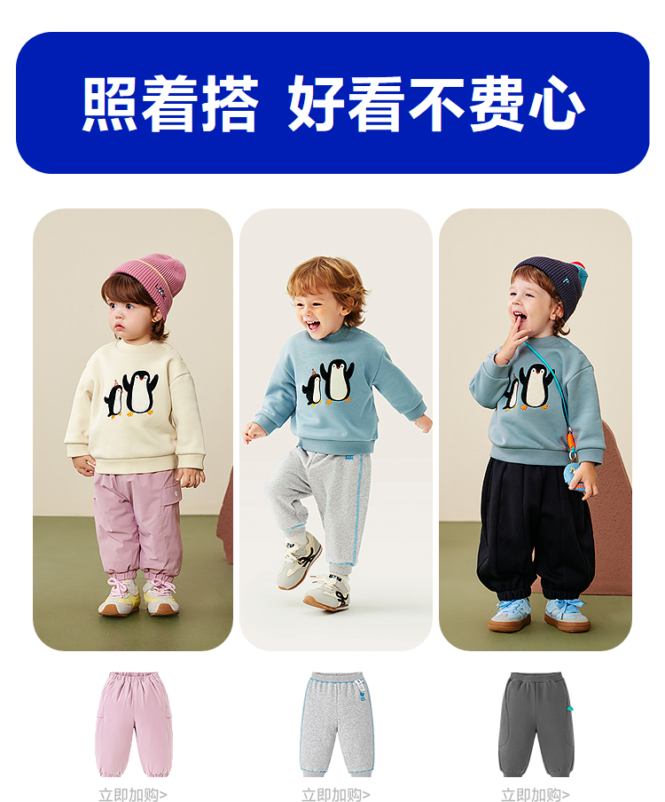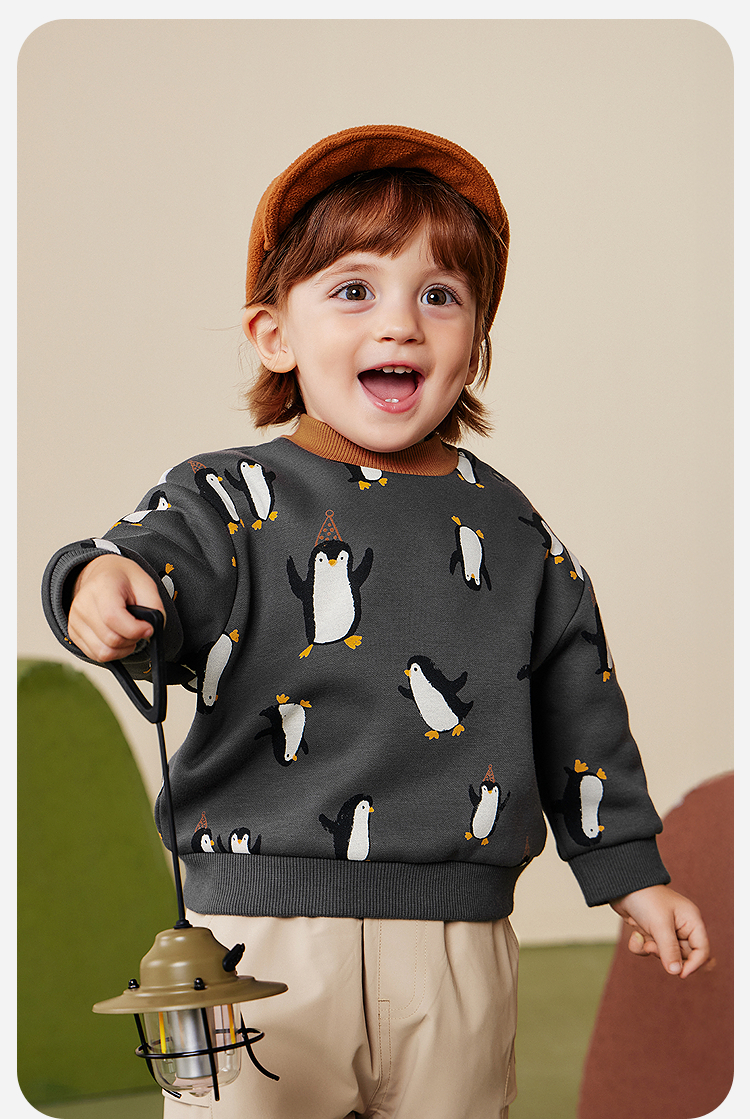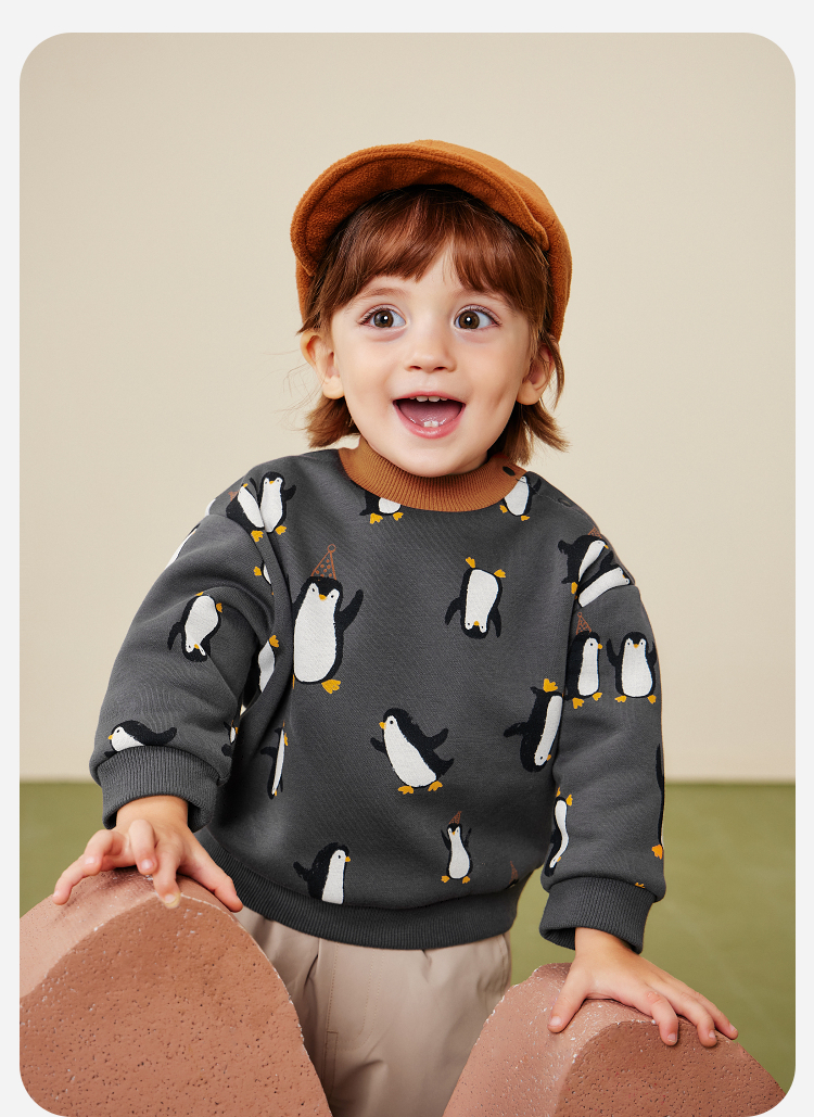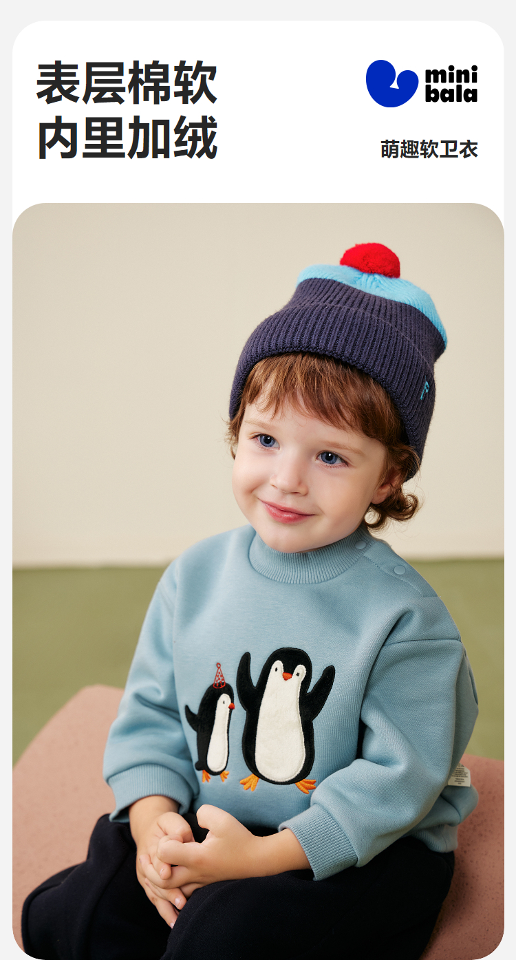 迷你巴拉男女童宝宝卫衣2025冬新品内里加绒柔软亲肤保暖上衣