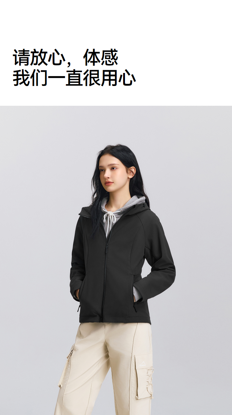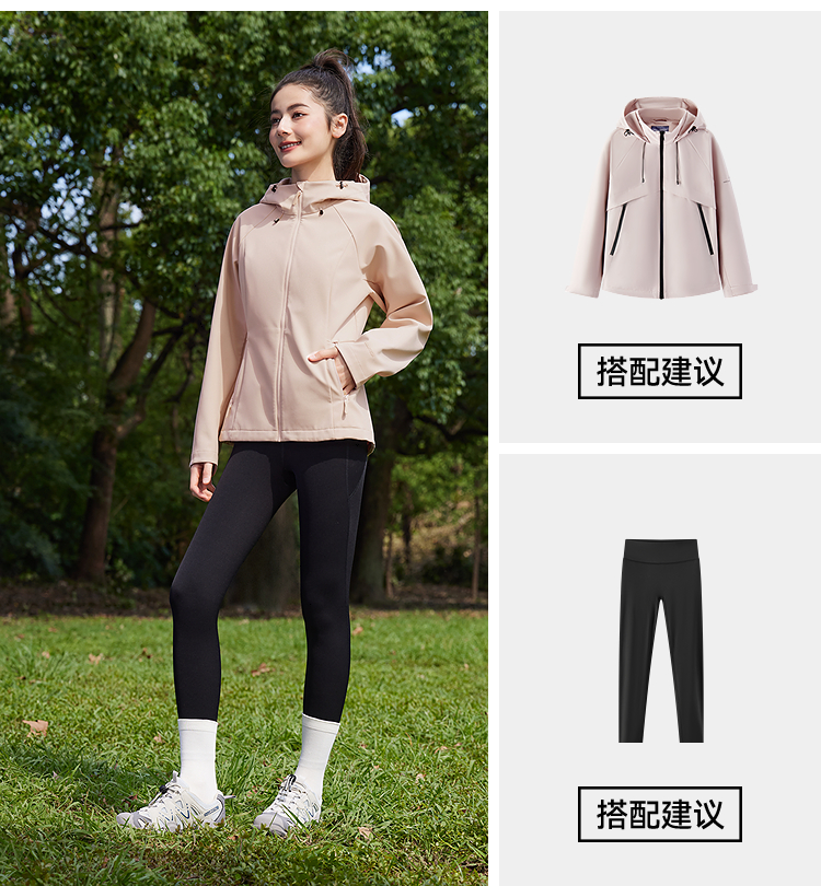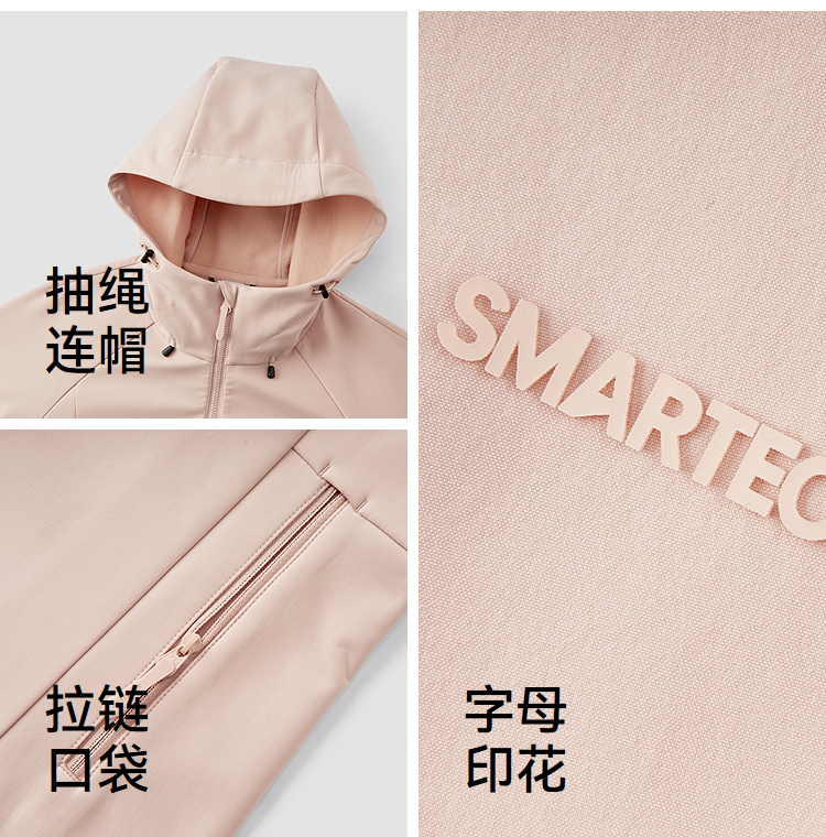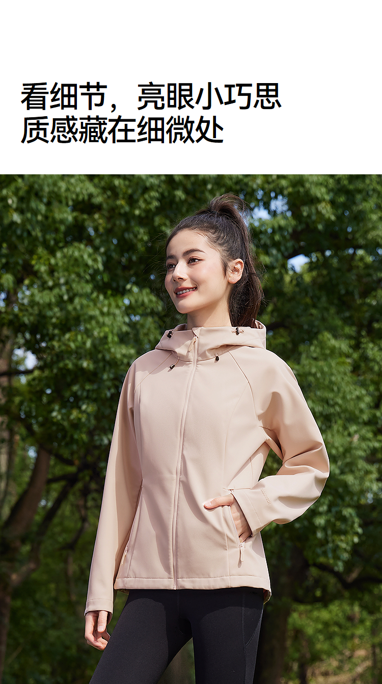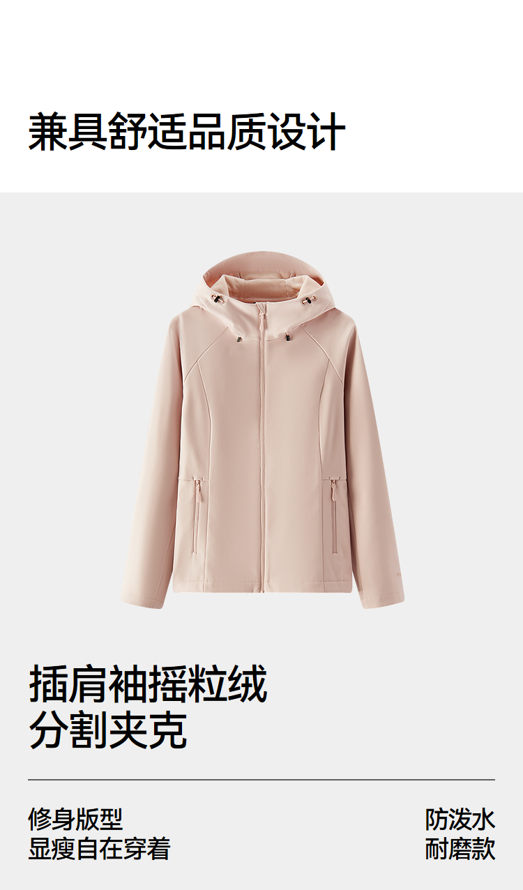 森马外套女春插肩袖防泼水摇粒绒软壳衣连帽分割显瘦简约户外夹克