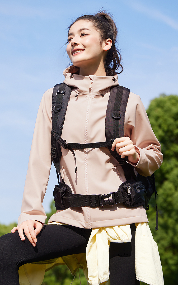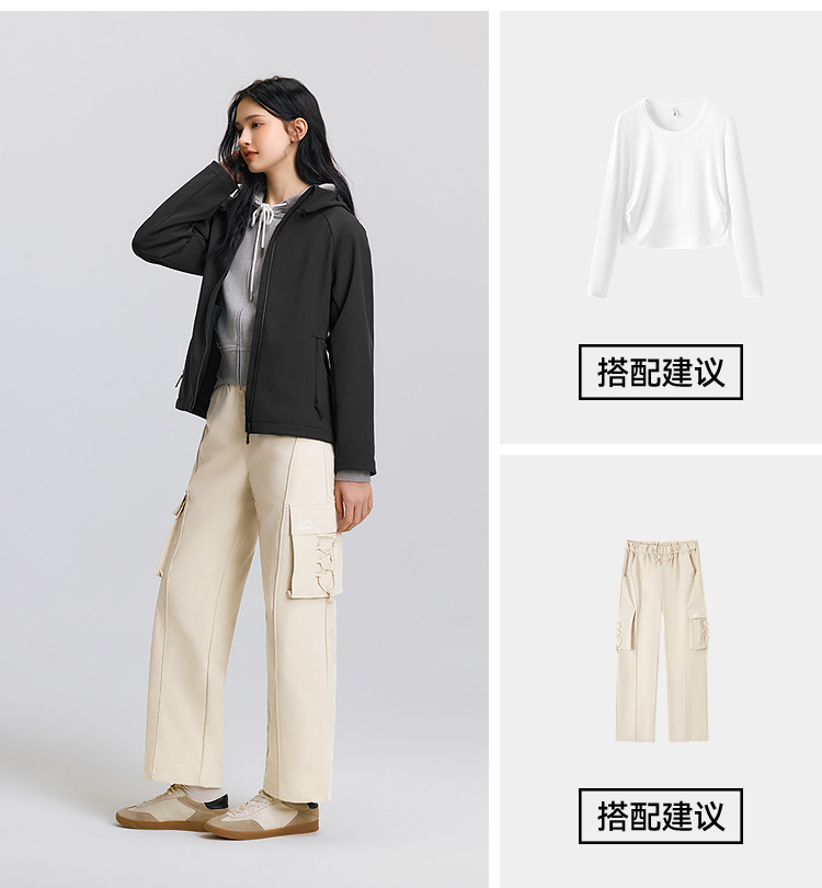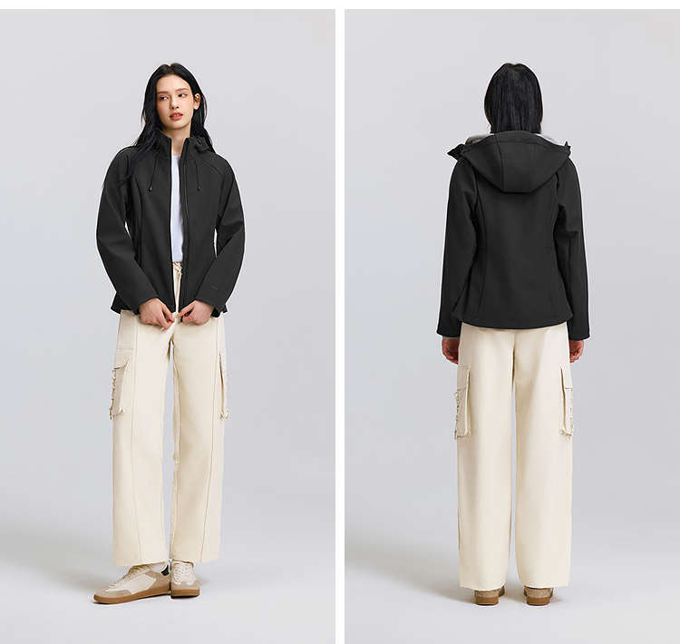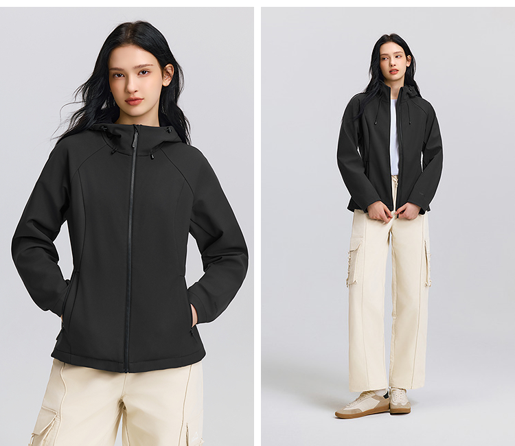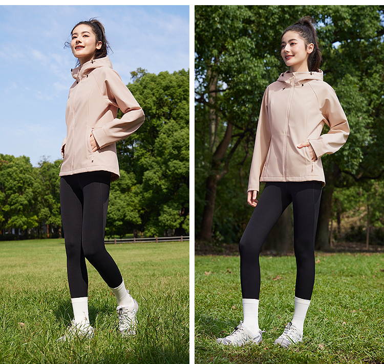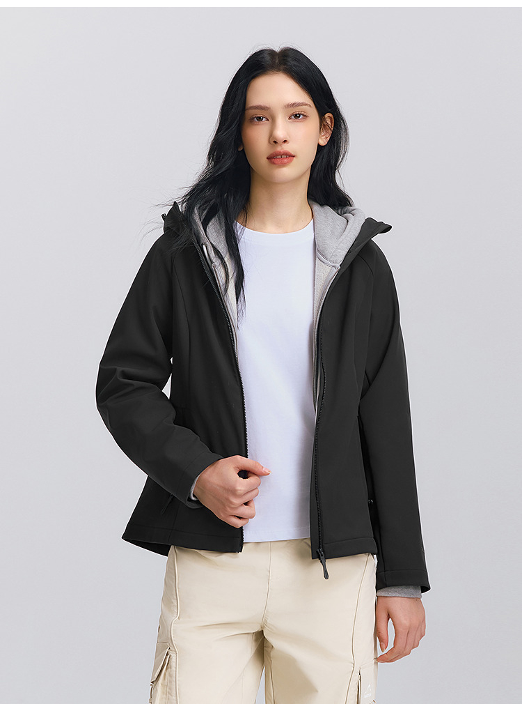 森马外套女春插肩袖防泼水摇粒绒软壳衣连帽分割显瘦简约户外夹克