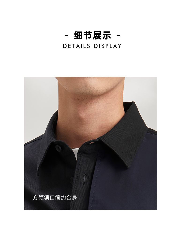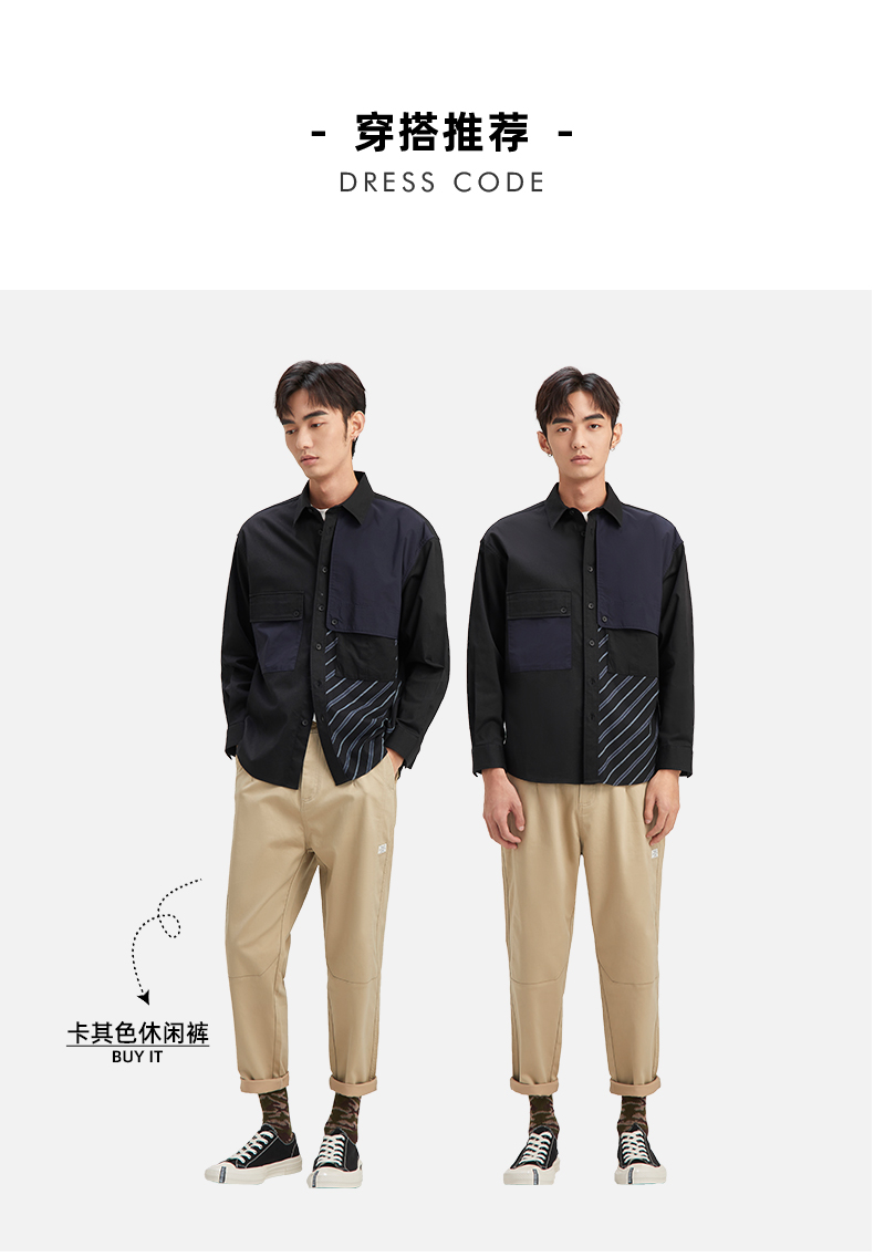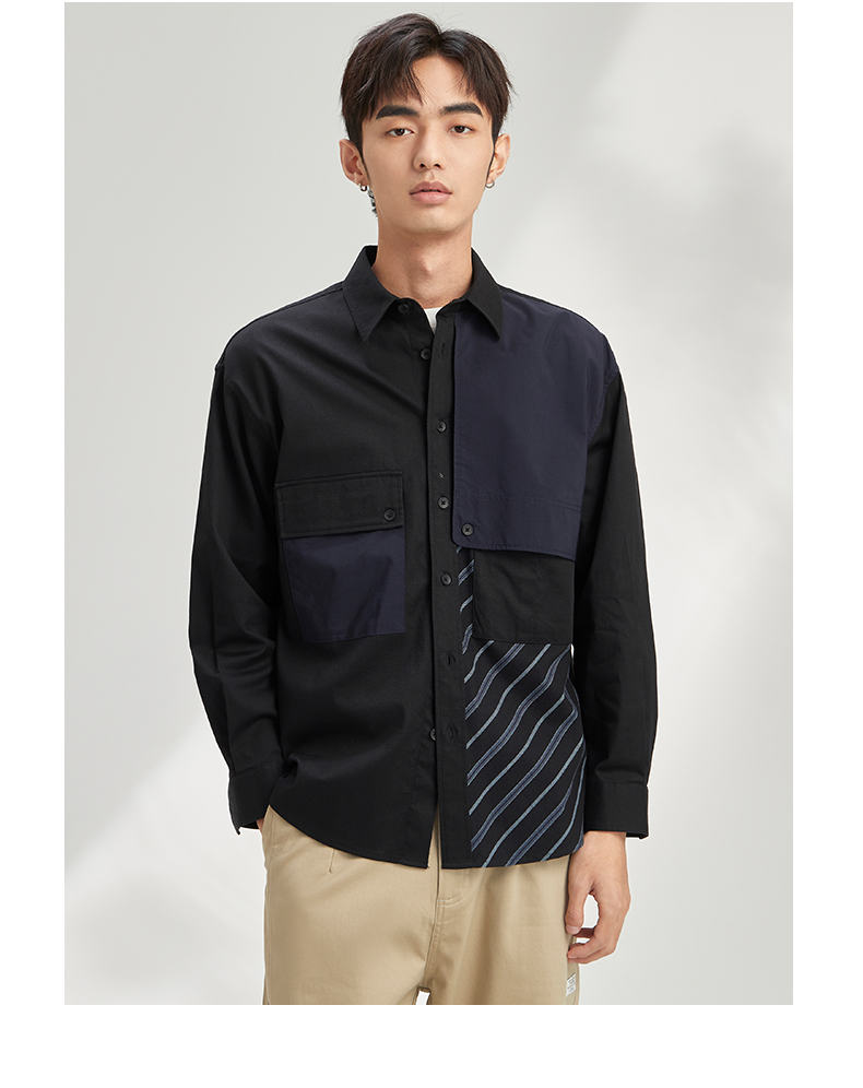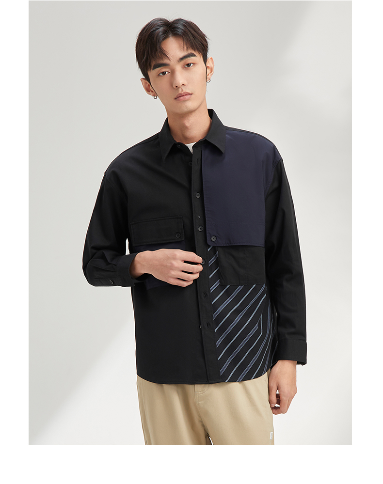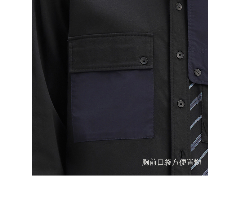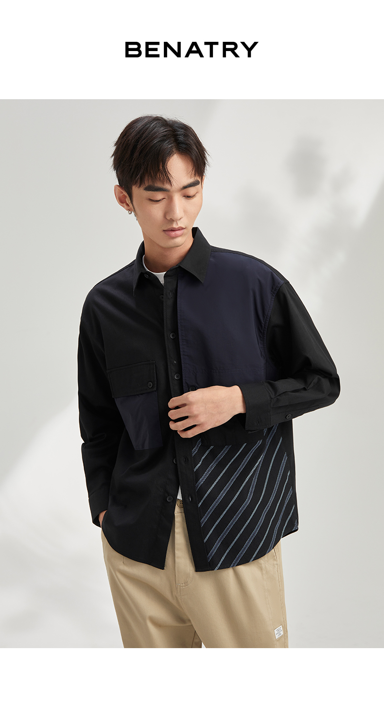 贝纳川简约工装衬衫男2023春季新款美式休闲条纹拼接潮牌外套ECY311001402