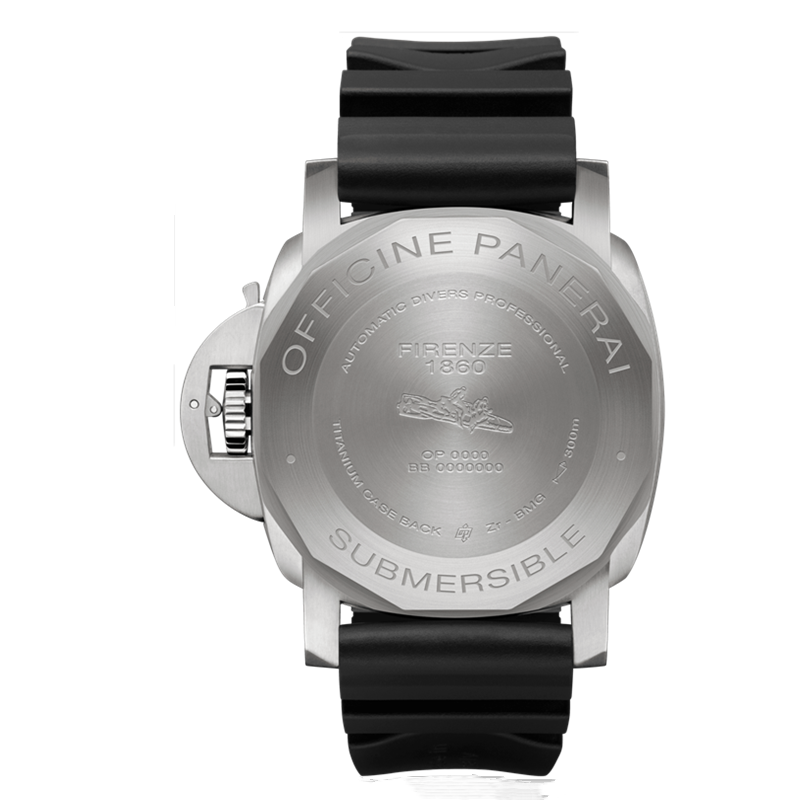镜面材质 | 蓝宝石水晶玻璃 | 表盘 | 黑色BMG-TECH™材质表壳 黑色表盘,配搭夜光小时刻度和圆点 3点钟位置设日期显示,9点钟位置设小秒盘 CARBOTECH逆时针旋转表圈附分度标 旋入式表冠,磨砂钛金属,磨砂钛金属表冠护桥 (沛纳海专利) |