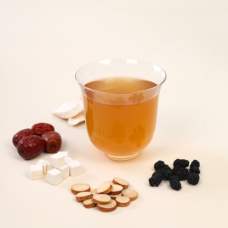 注意: 产品含有五指毛桃、茯苓、山药等多种天然草本原料。这些食材在经过熬煮后,其含有的淀粉、多糖、蛋白质等有效成分会溶解在汤汁中。但在静置和冷却过程中,这些大分子营养物质会自然聚集、析出,形成您看到的沉淀或轻微絮状物。这恰恰是“真材实料”的证明。饮用前,建议轻轻摇匀。