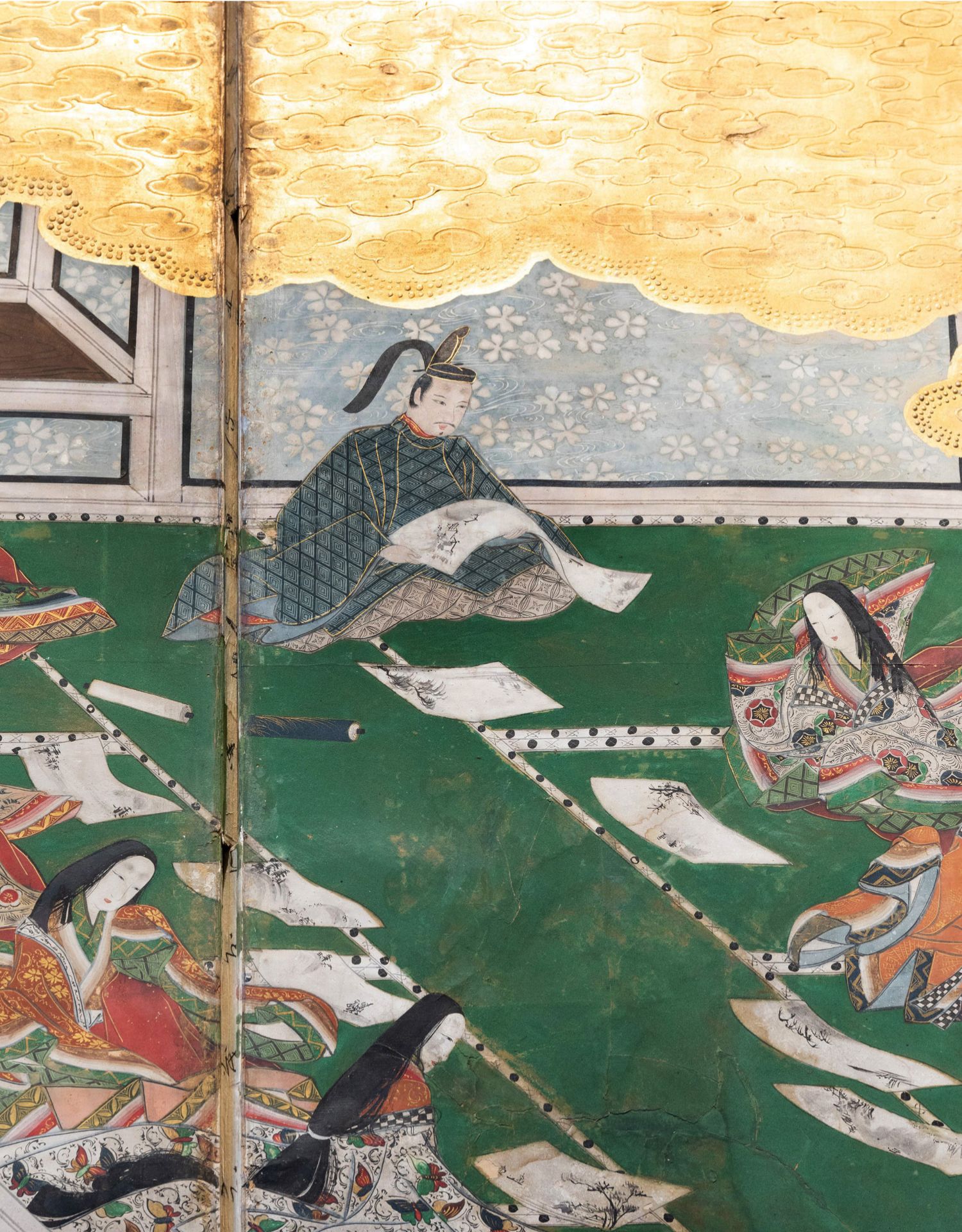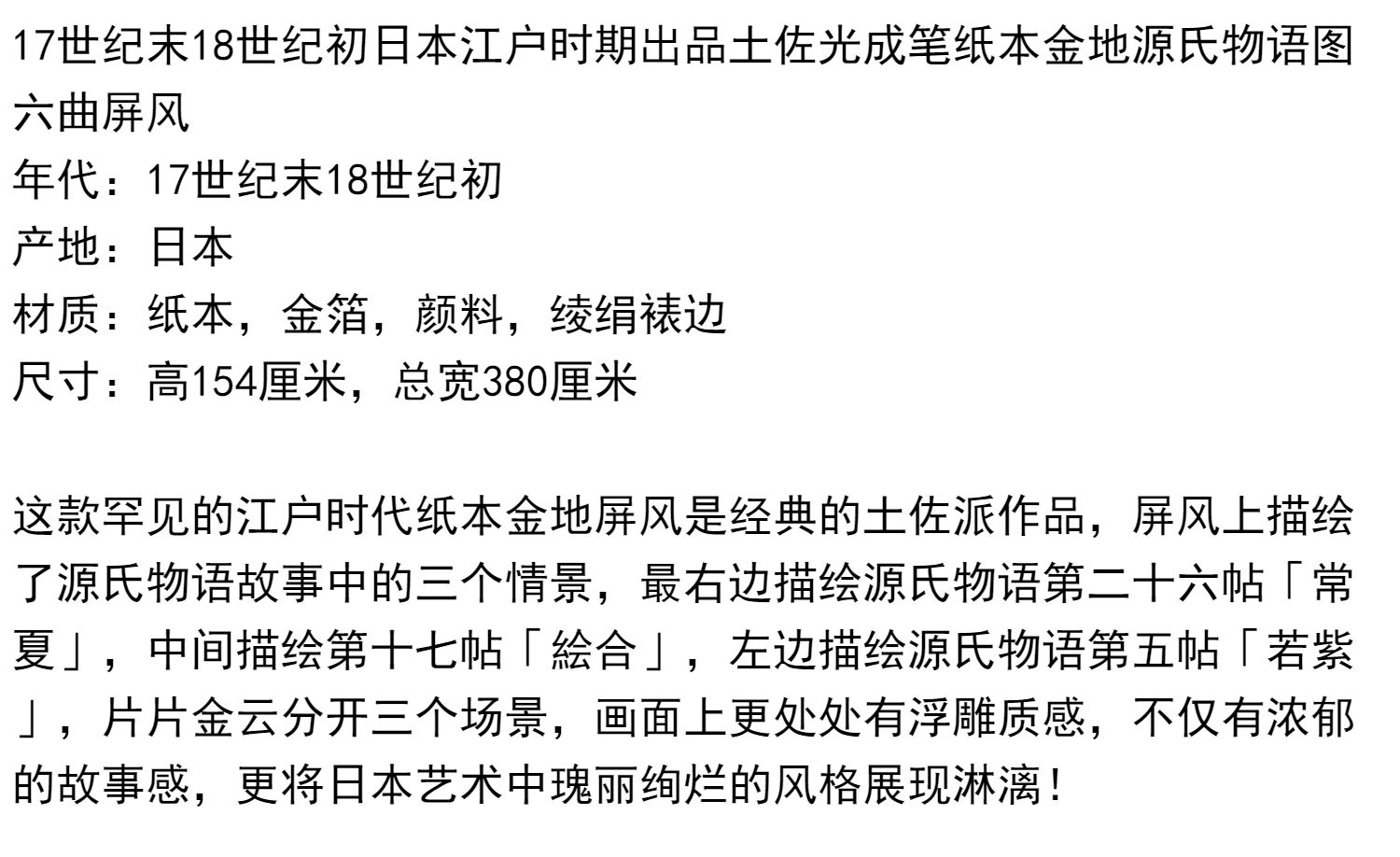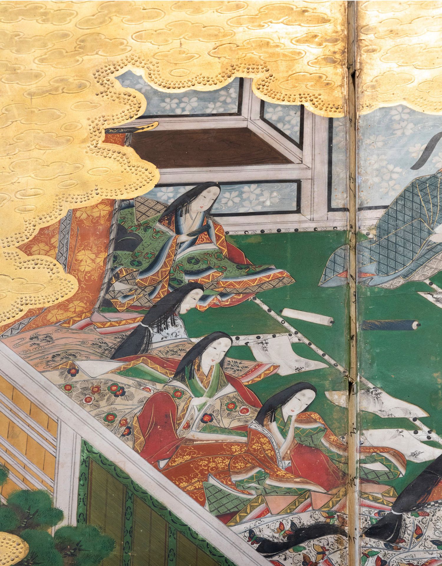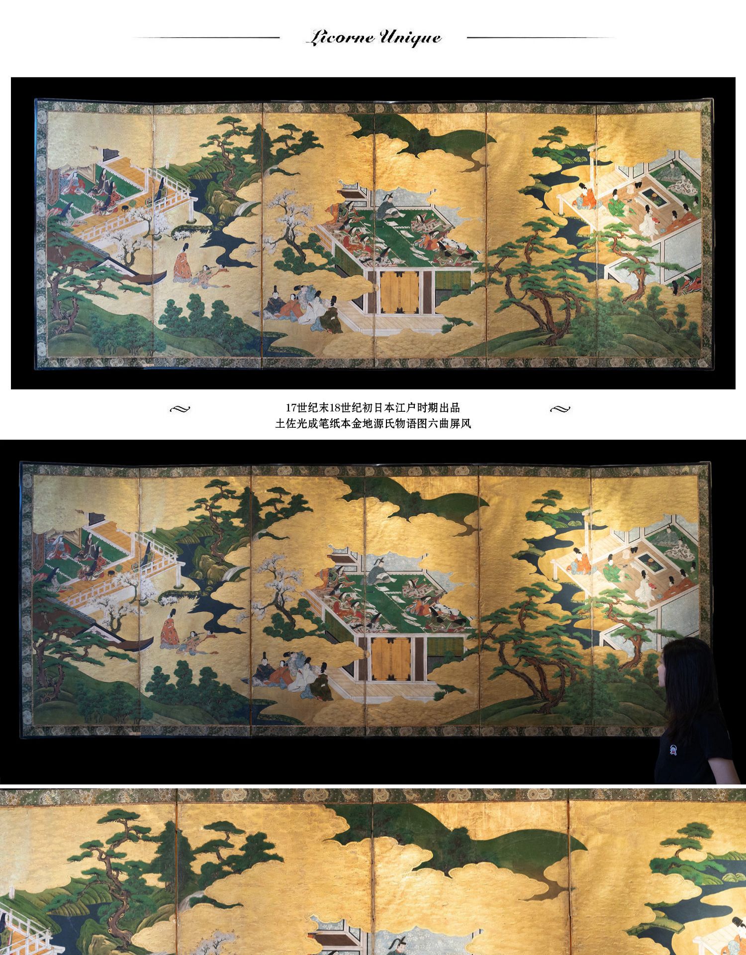 独角鹿西洋古董日本江户时期土佐光成纸笔本金地源氏物语六曲屏风