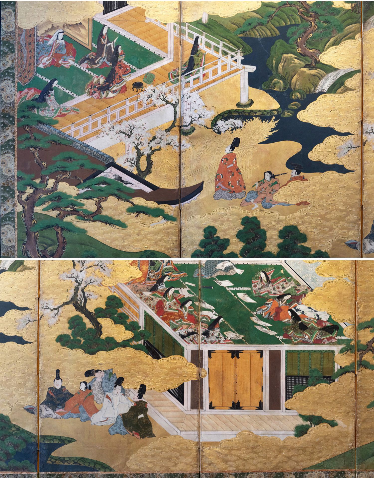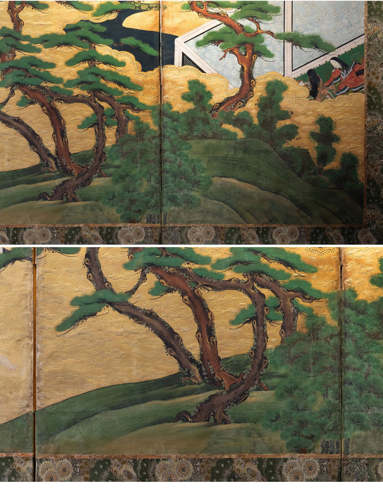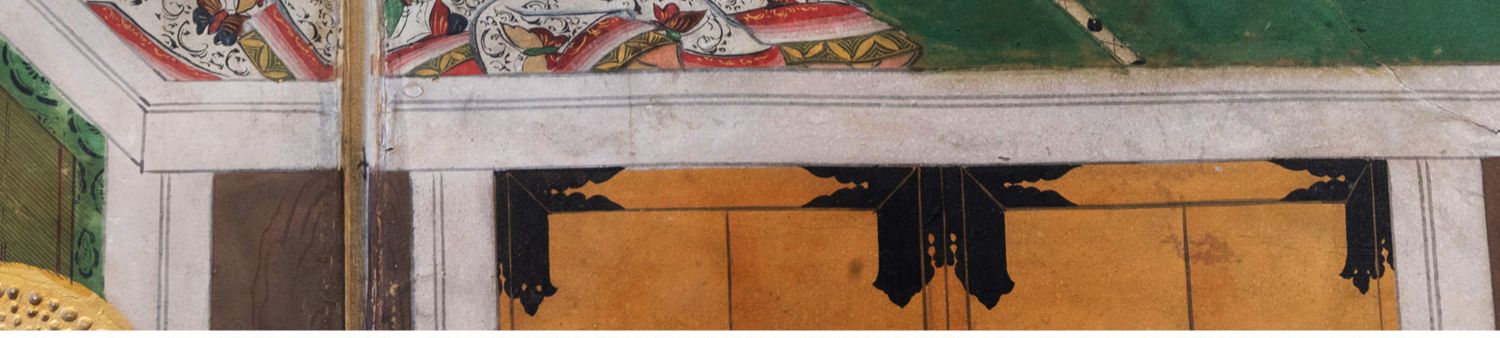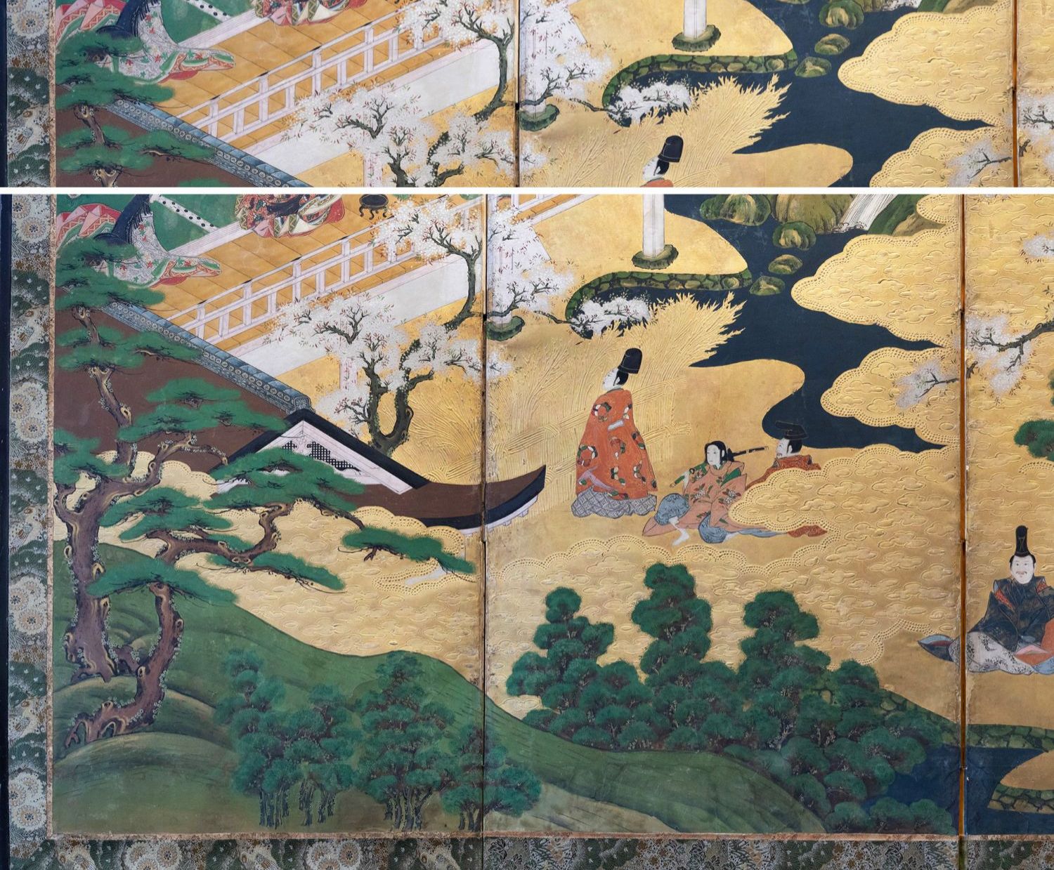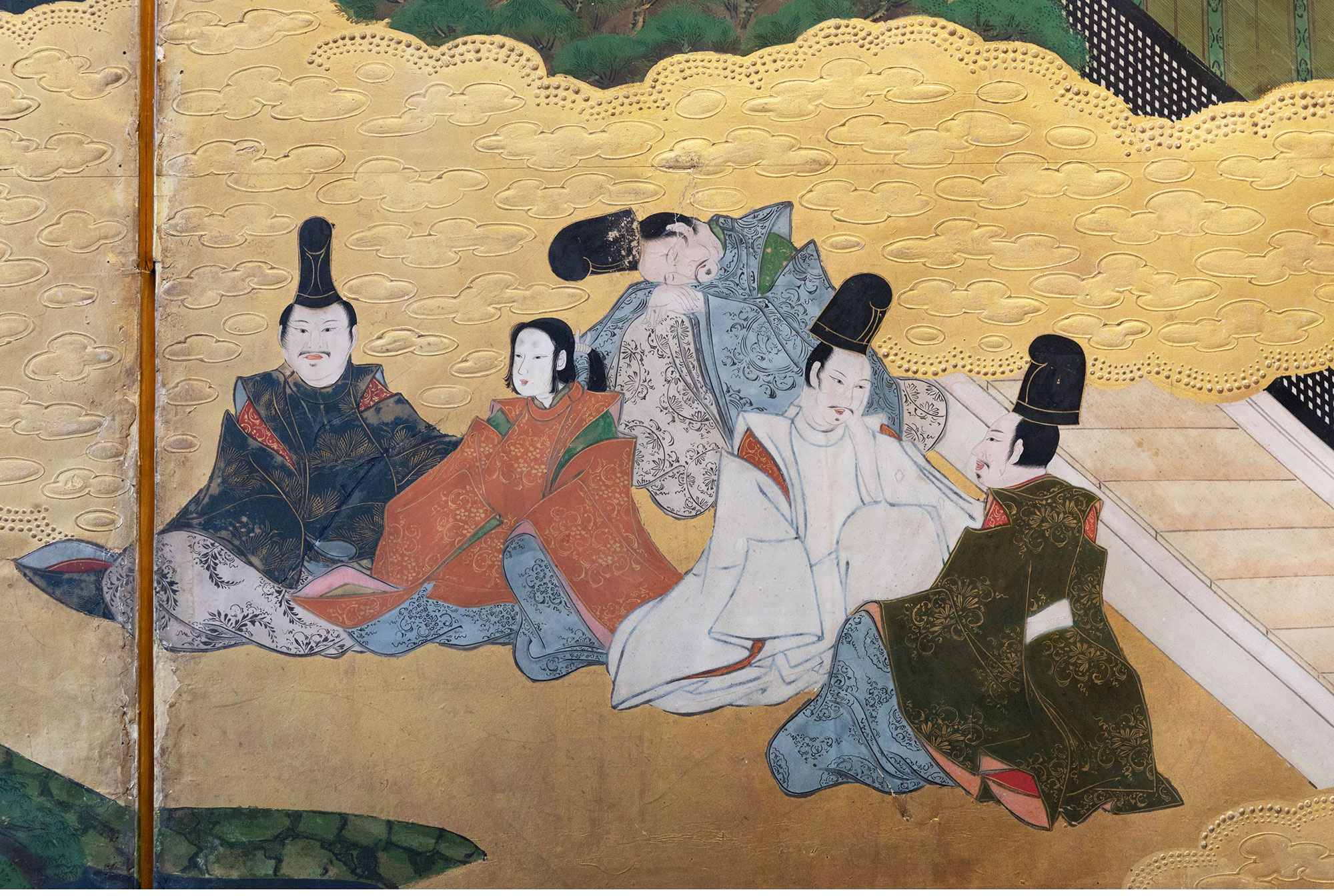 独角鹿西洋古董日本江户时期土佐光成纸笔本金地源氏物语六曲屏风