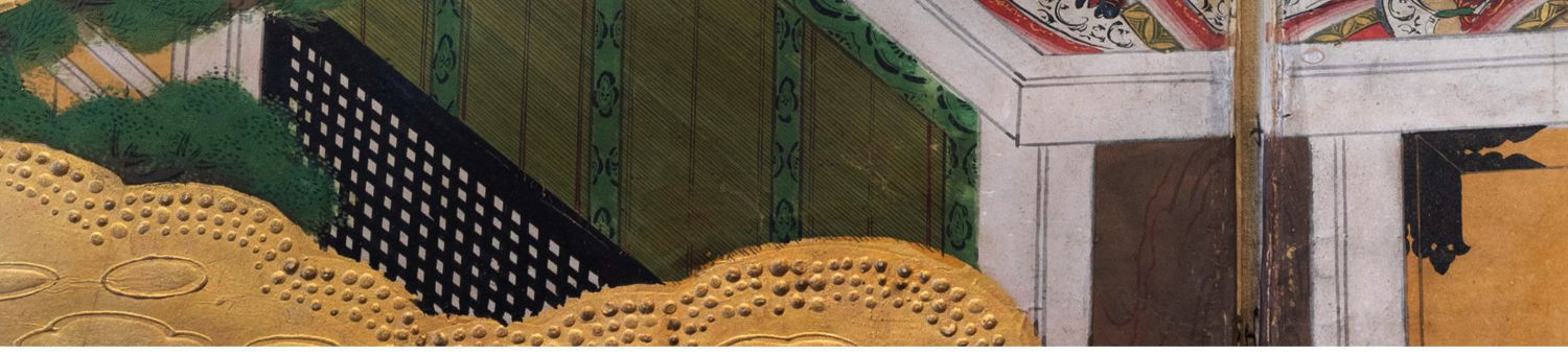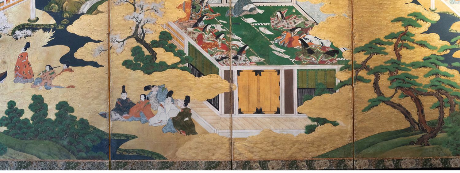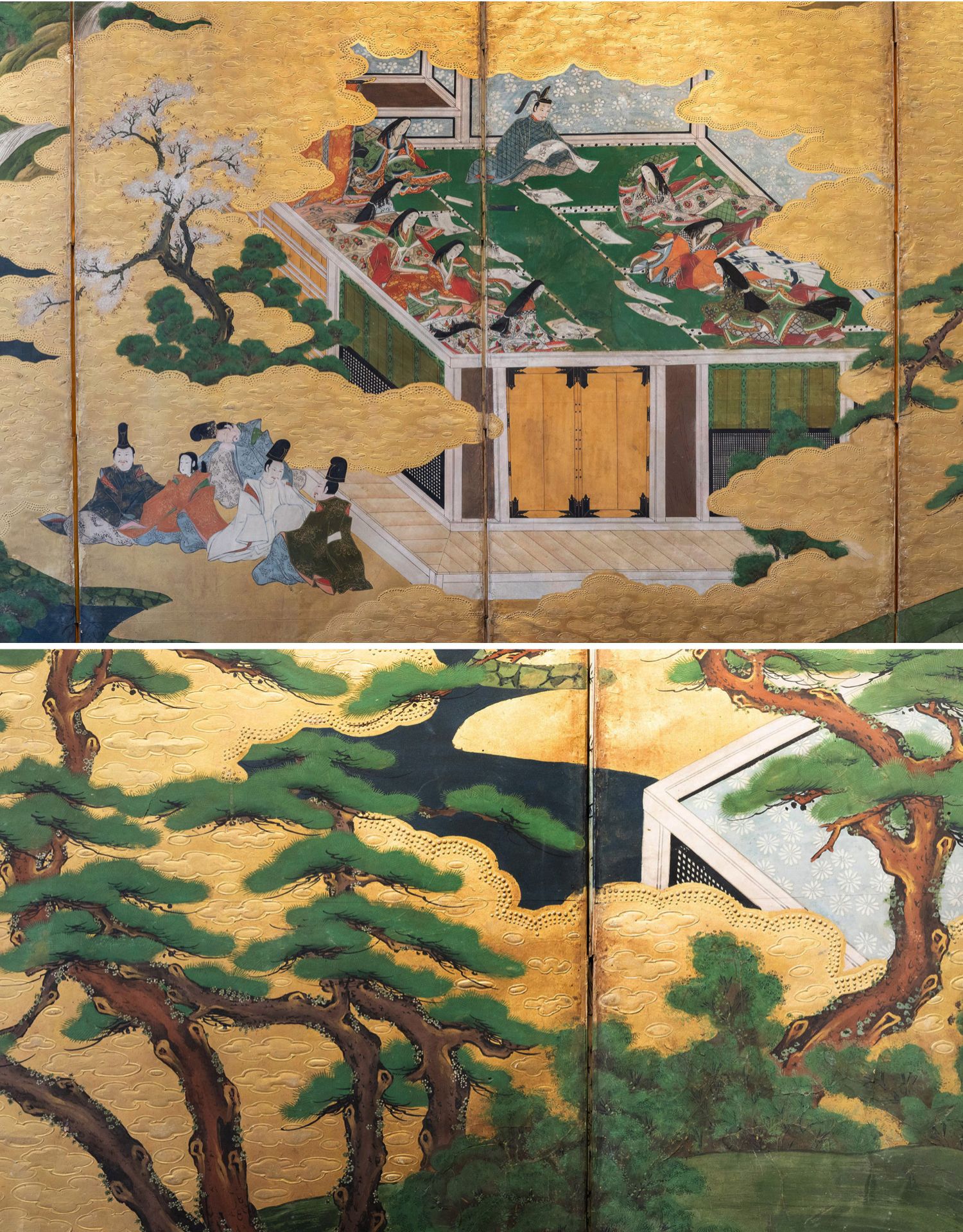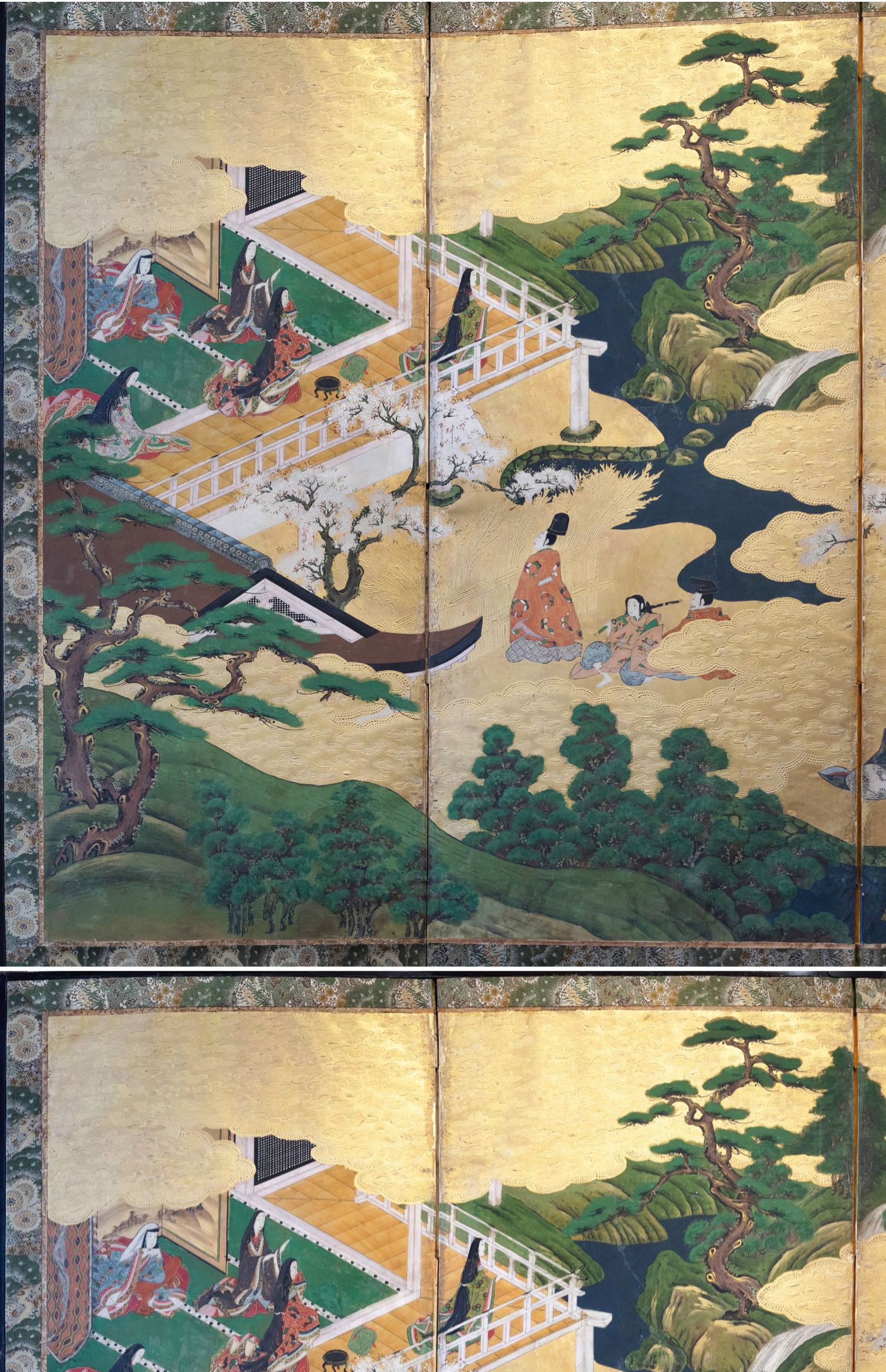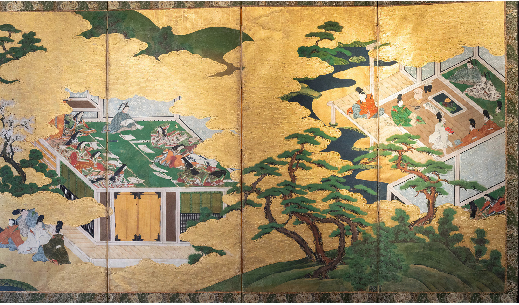 独角鹿西洋古董日本江户时期土佐光成纸笔本金地源氏物语六曲屏风