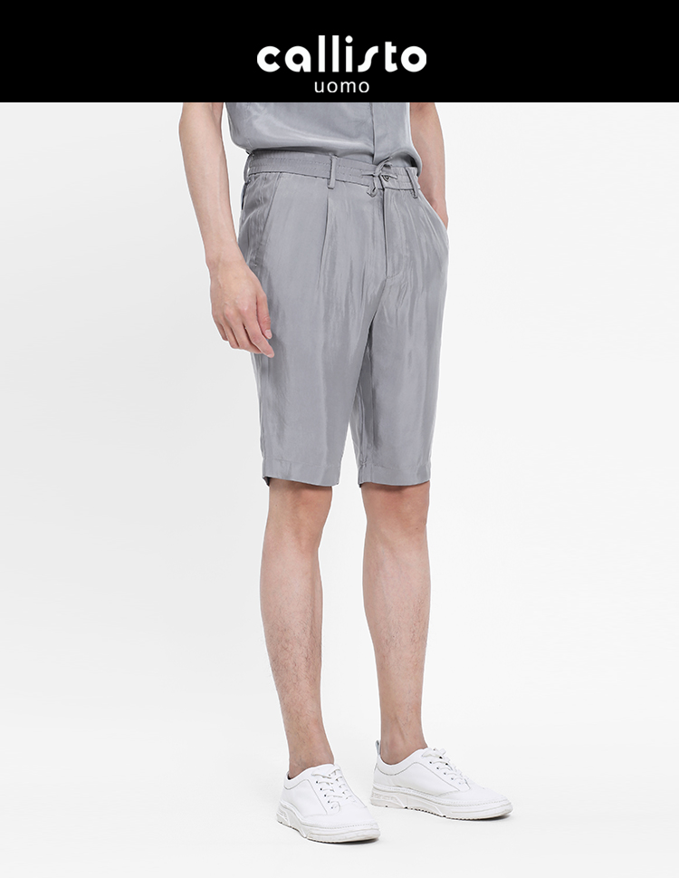 callisto灰色铜氨丝休闲短裤 SRCPW095GY