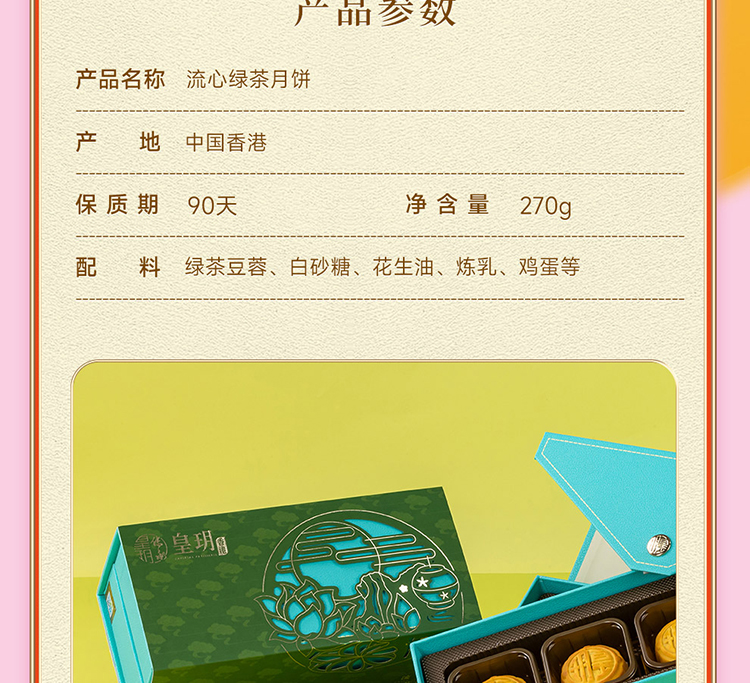香港皇玥月饼 流心绿茶月饼270g 中秋团圆6个礼盒装