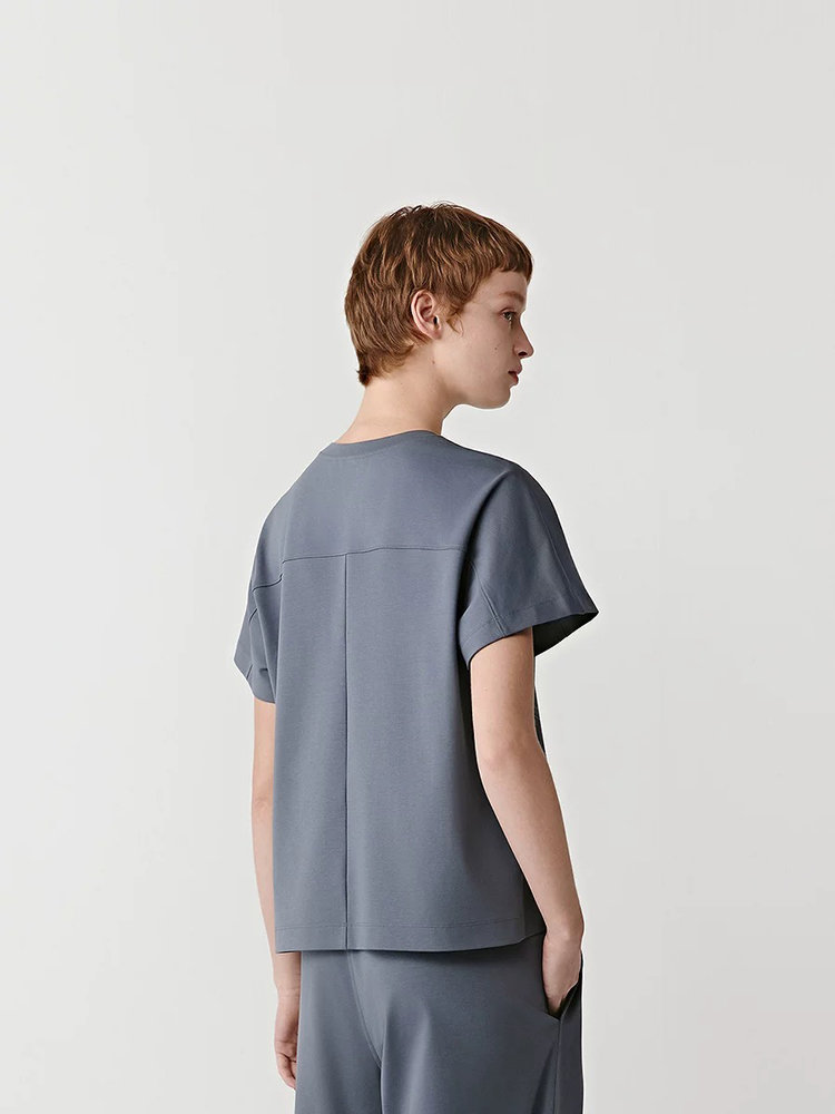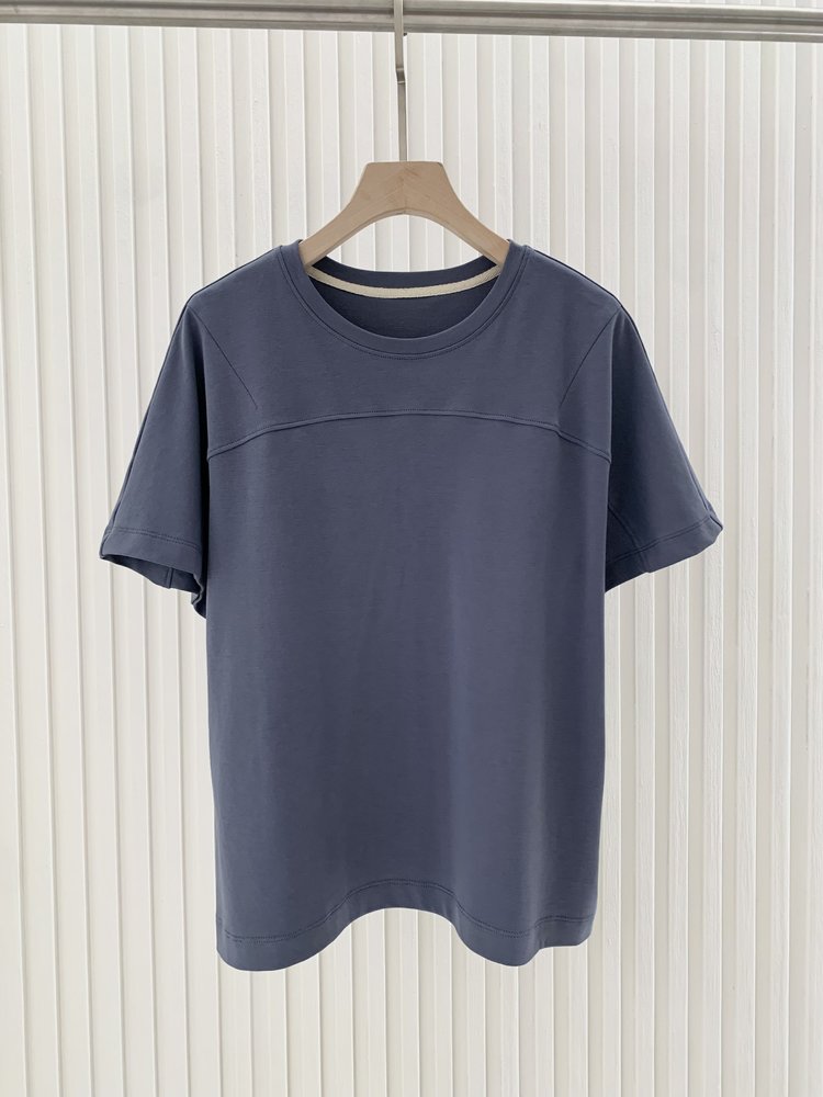 小禾同款「液态冰川」湖蓝棉弹双面布T恤