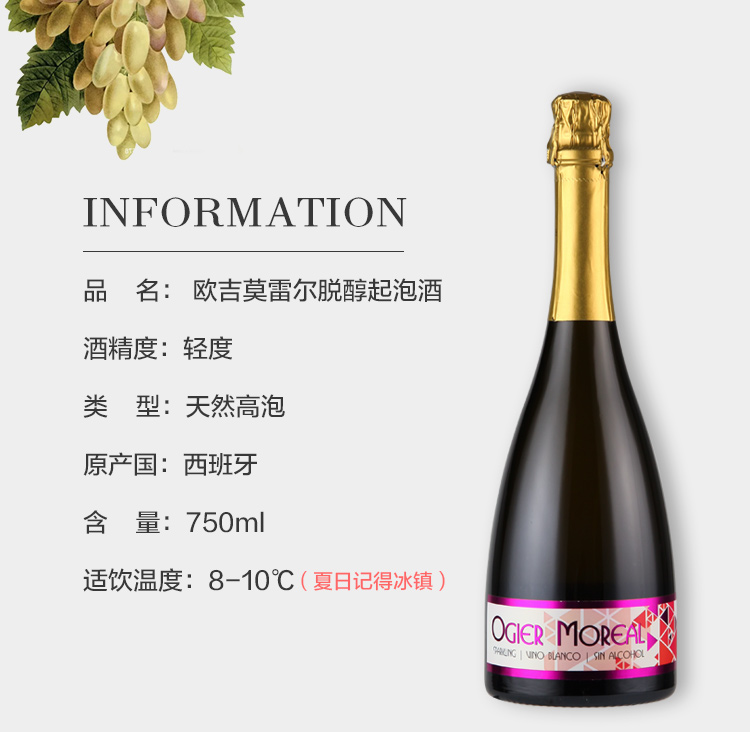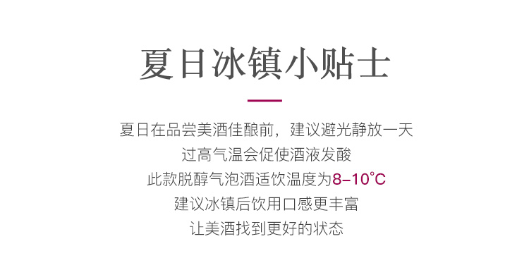 2.百分百葡萄酿造,酒精度较低不超过0.5%(根据国家标准可标注为0%vol),