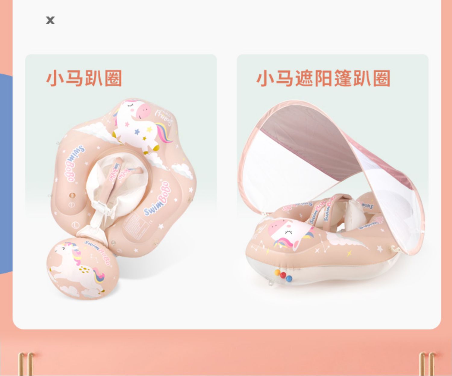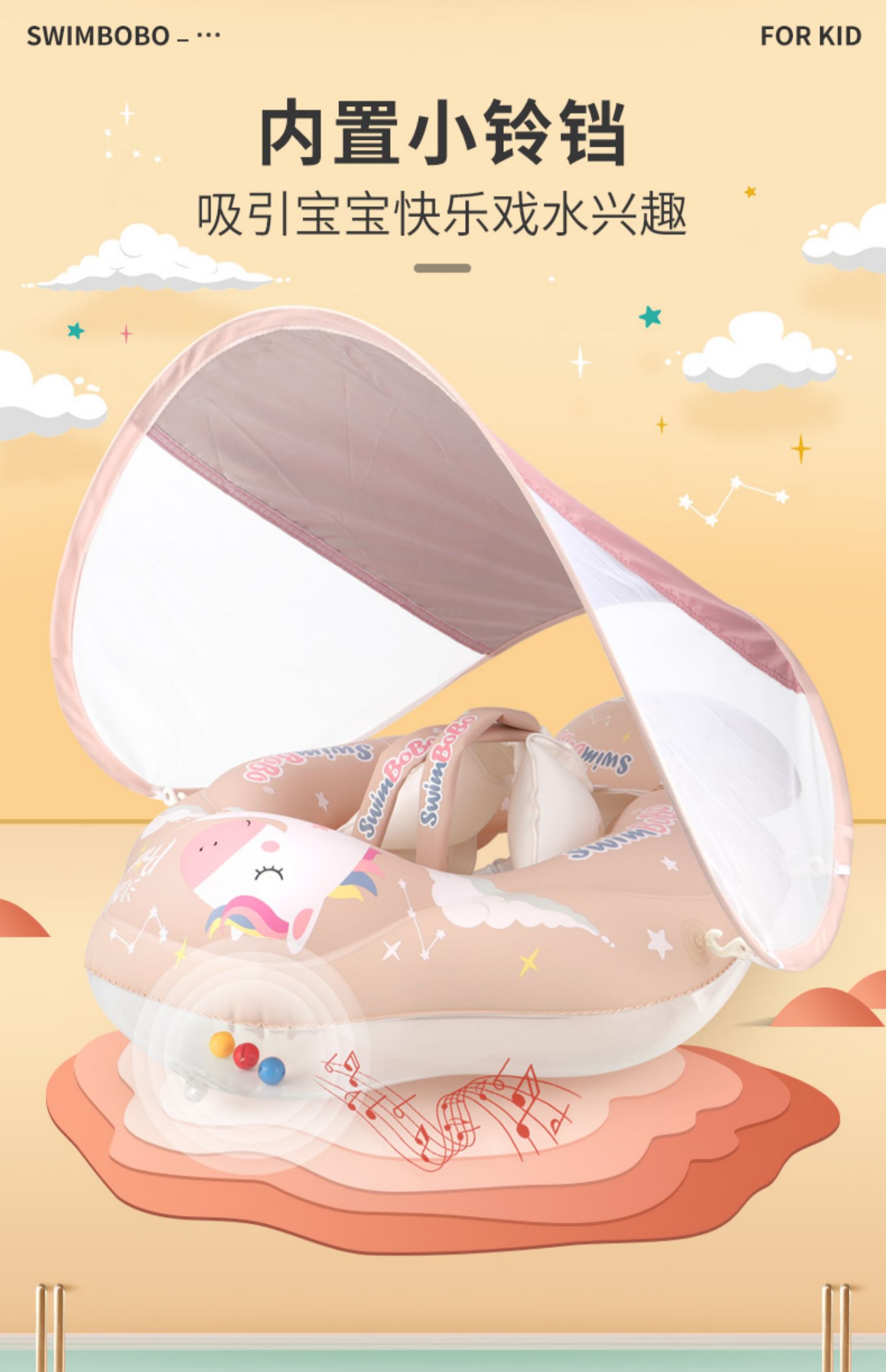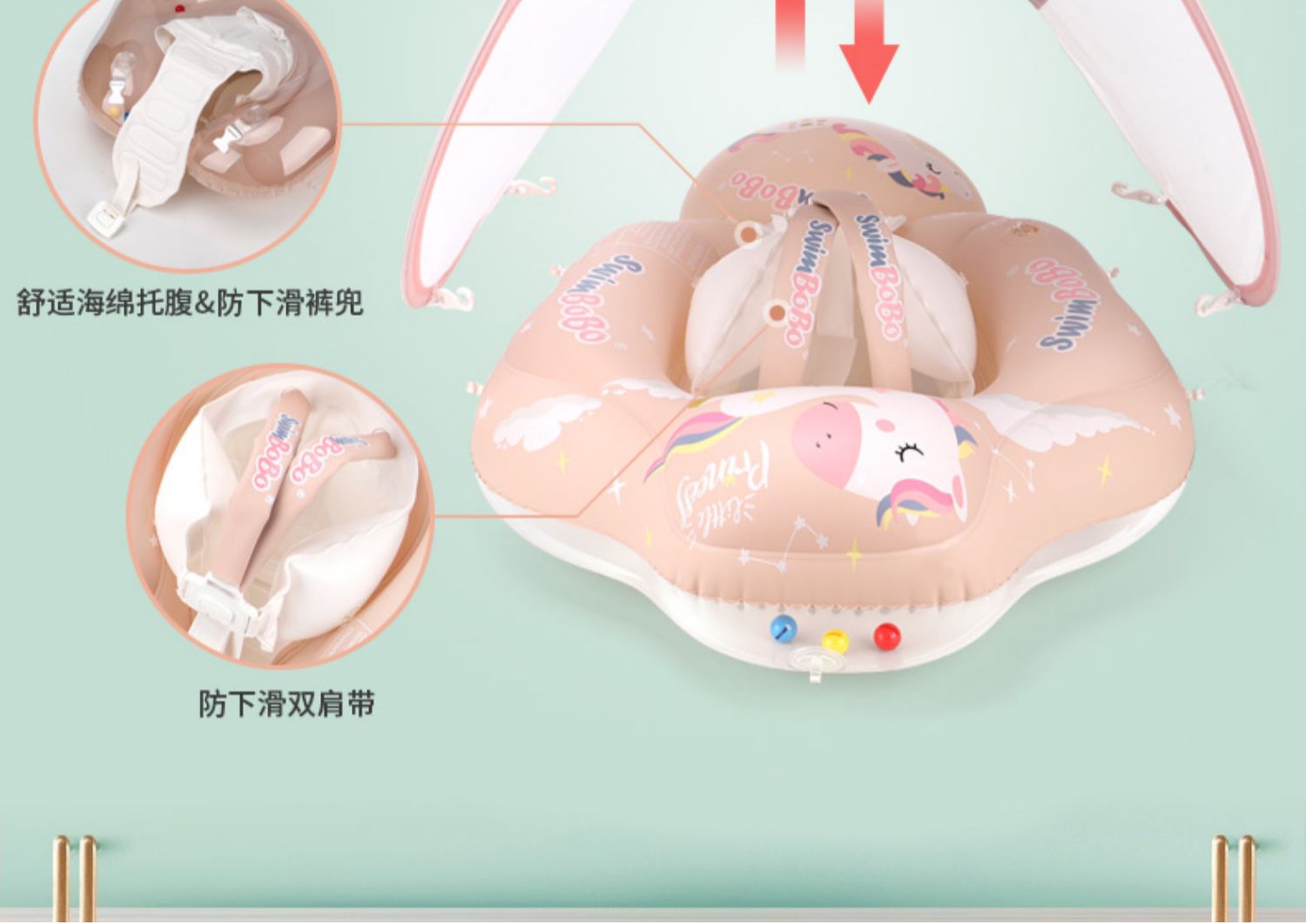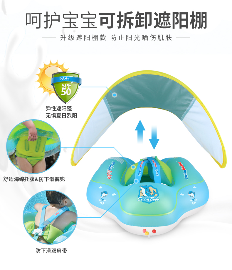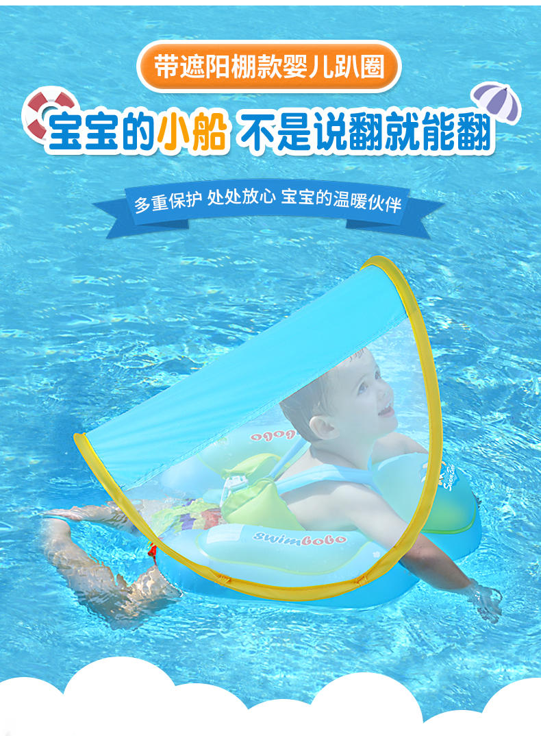 【遮阳篷趴趴圈】Swimbobo婴儿游泳圈 儿童游泳圈防晒遮阳蓬 清新配色 舒适包围