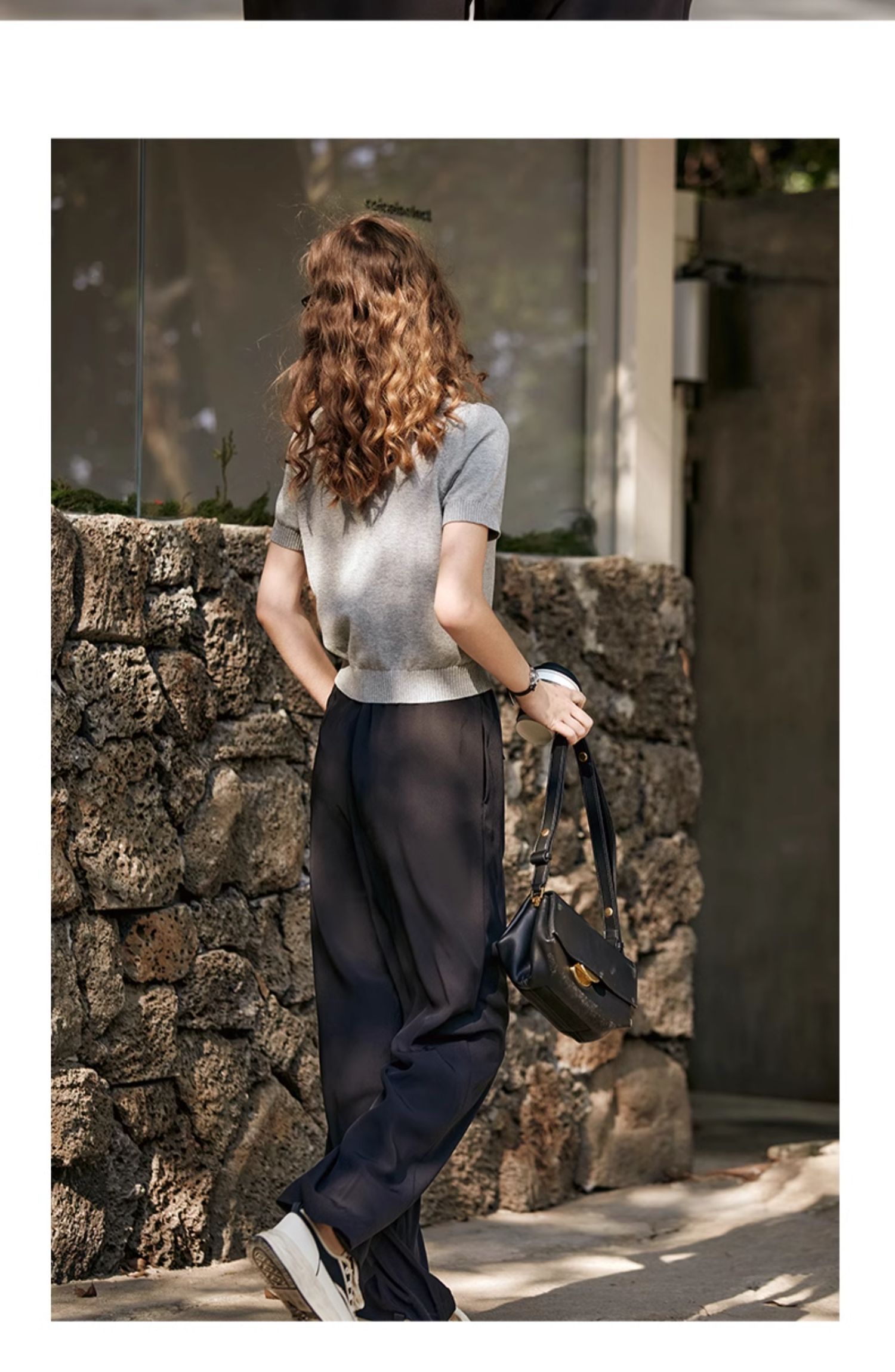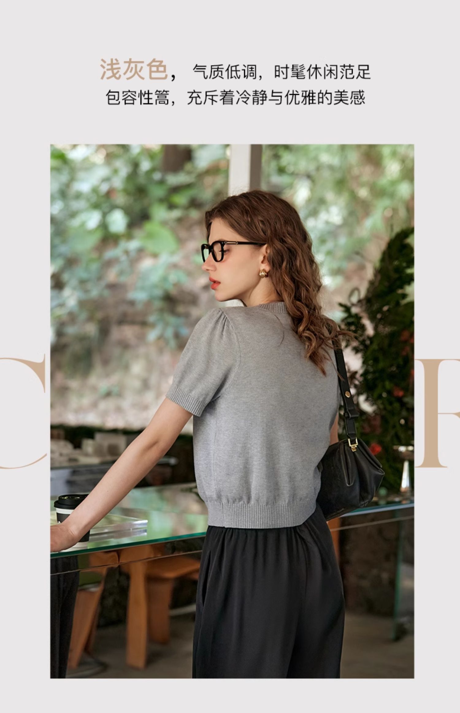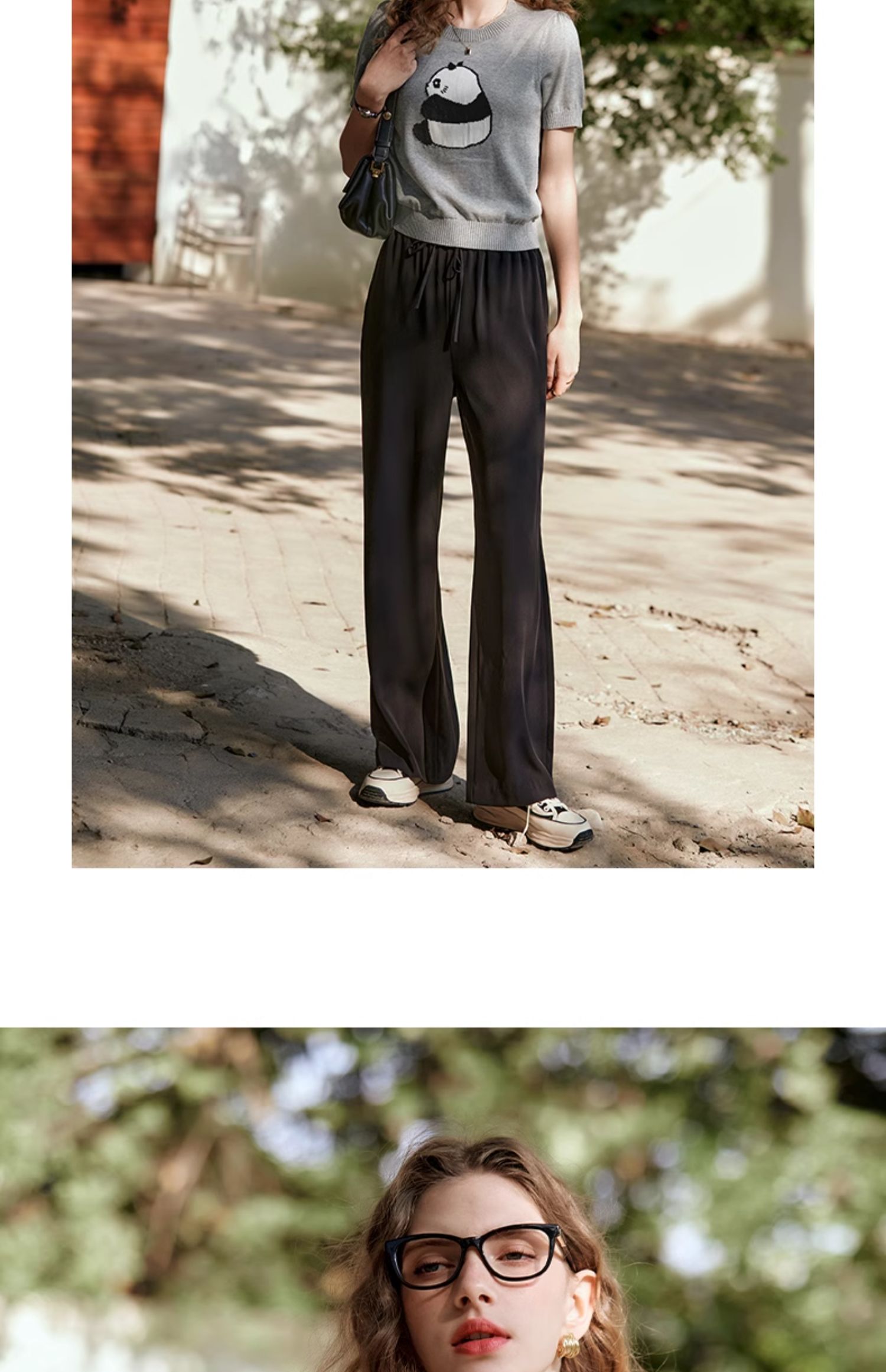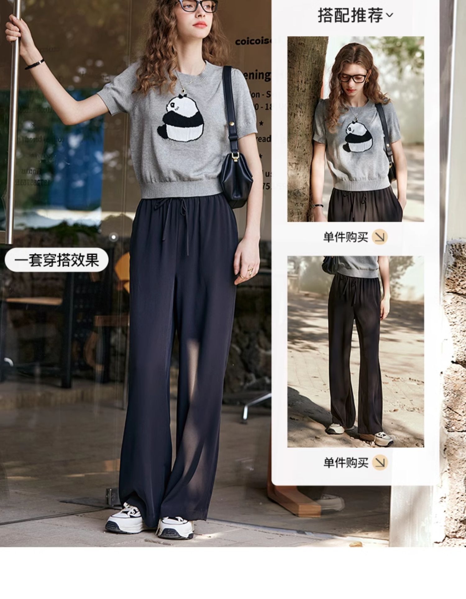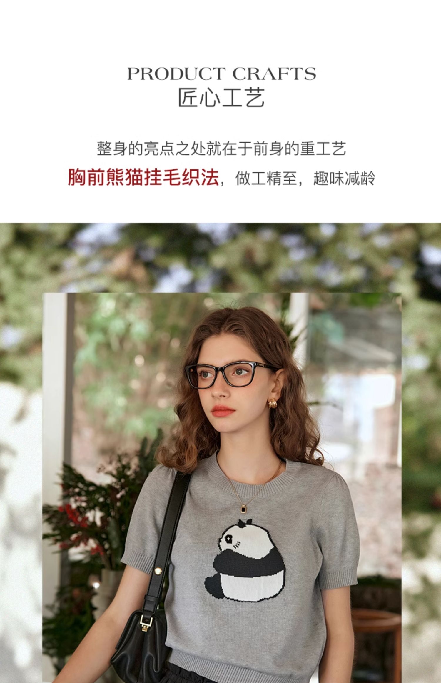 OLrain欧芮儿浅灰色针织衫女春夏2024年新款趣味熊猫短袖套头衫