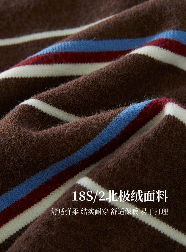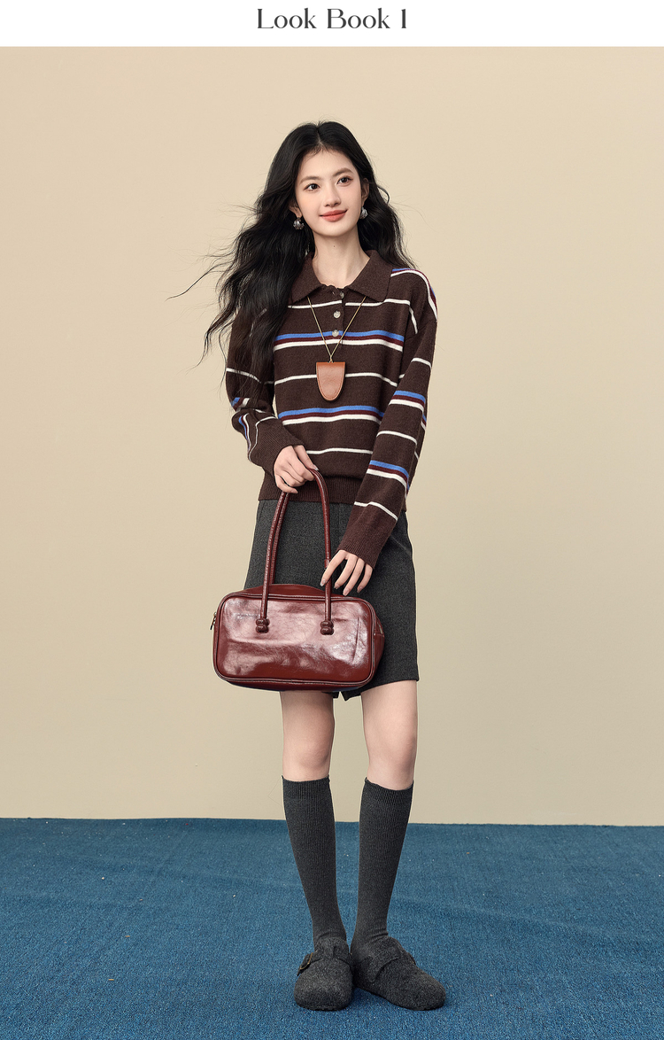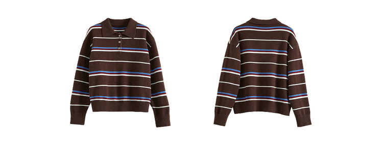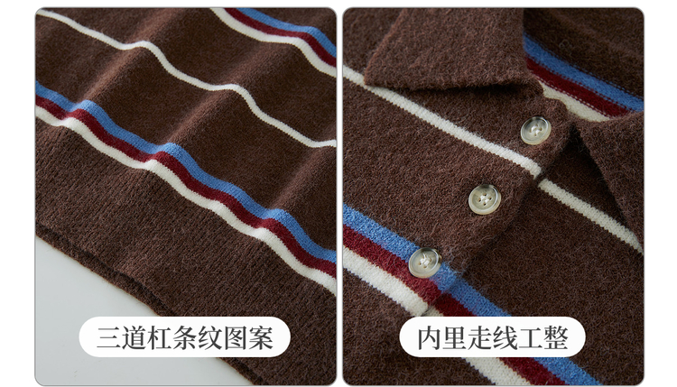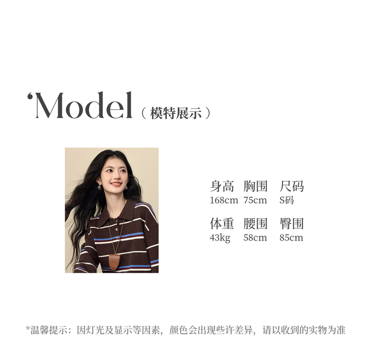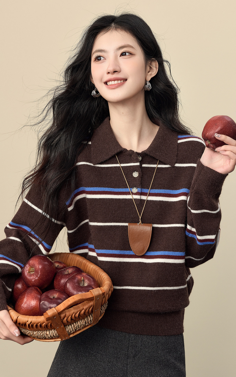 【12/17新品】熙世界老钱风条纹POLO领毛衣女2025年秋冬新款宽松套头长袖针织衫