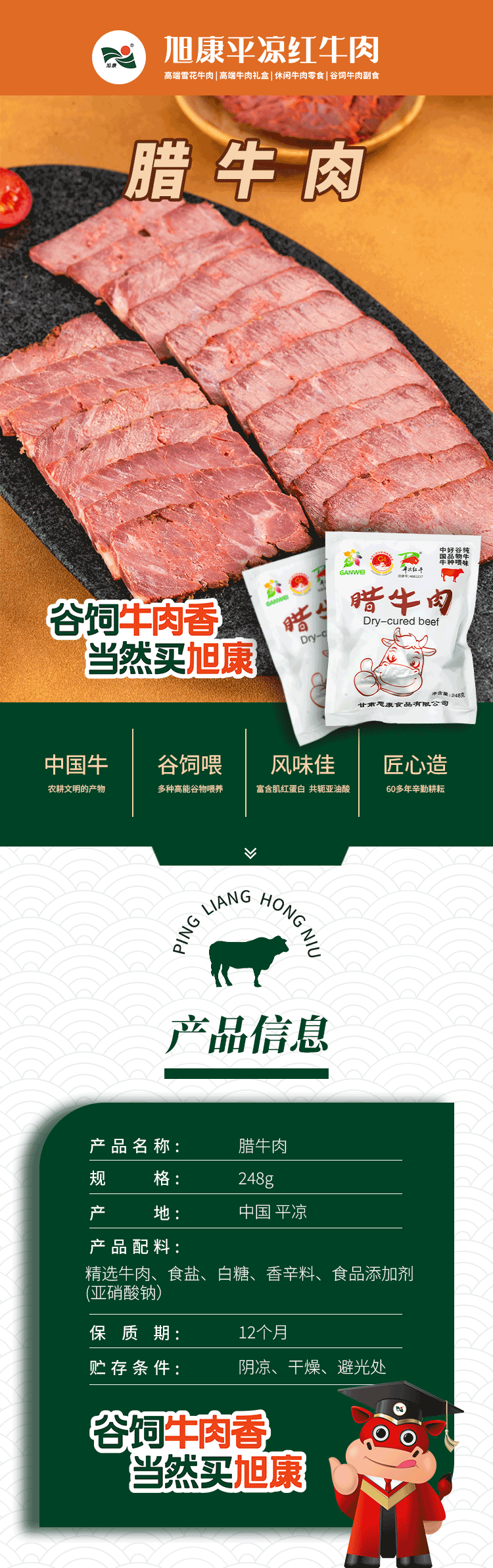 【平凉红牛泾川馆】旭康真空熟食酱卤腊牛肉248g包邮
